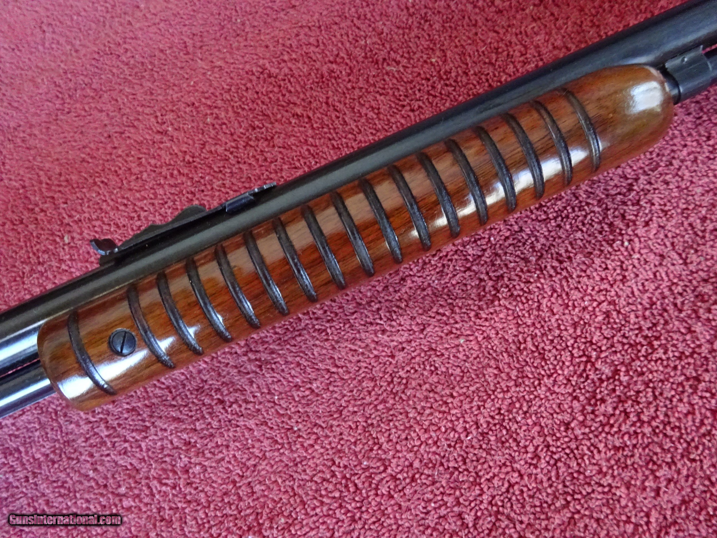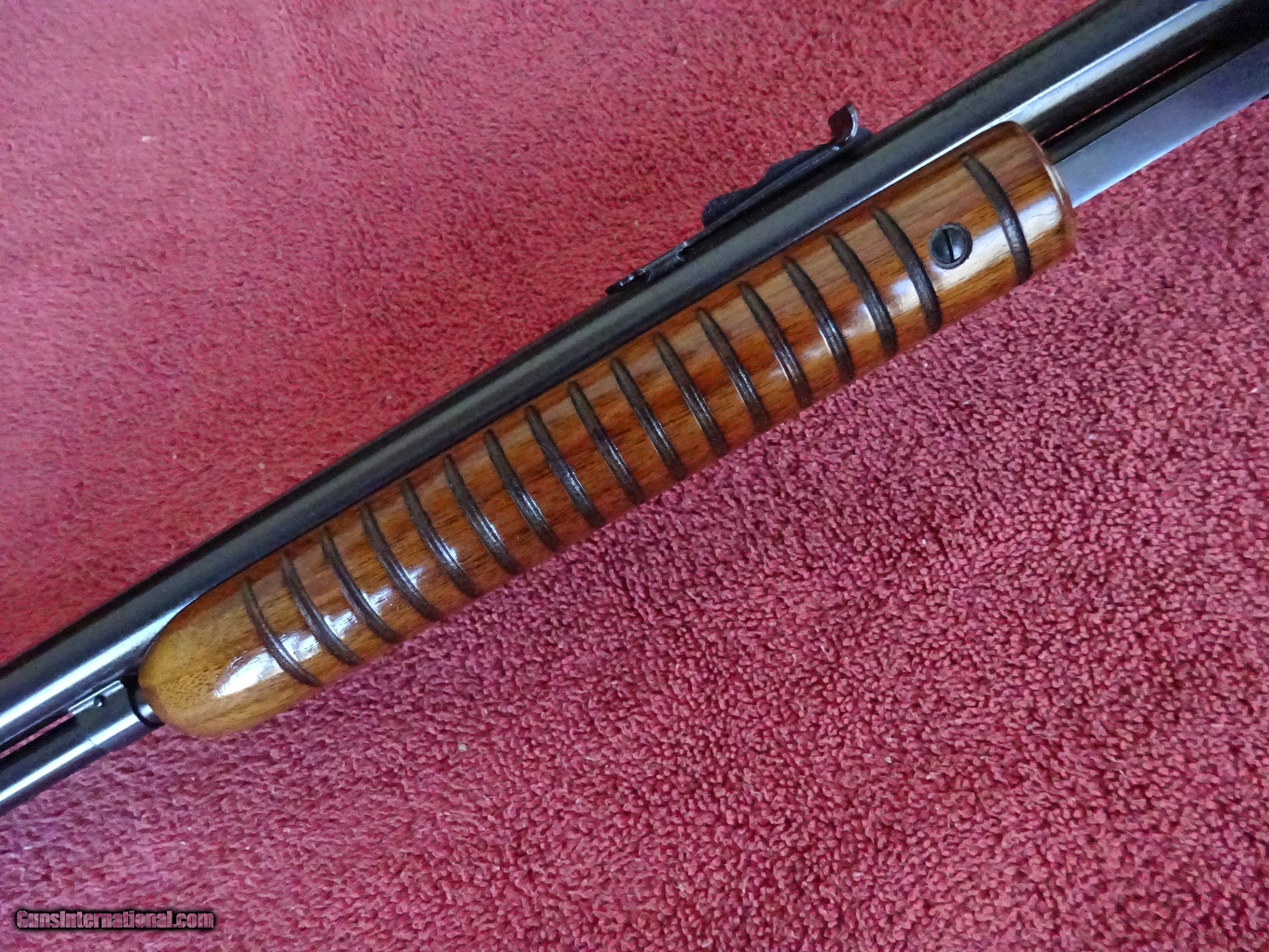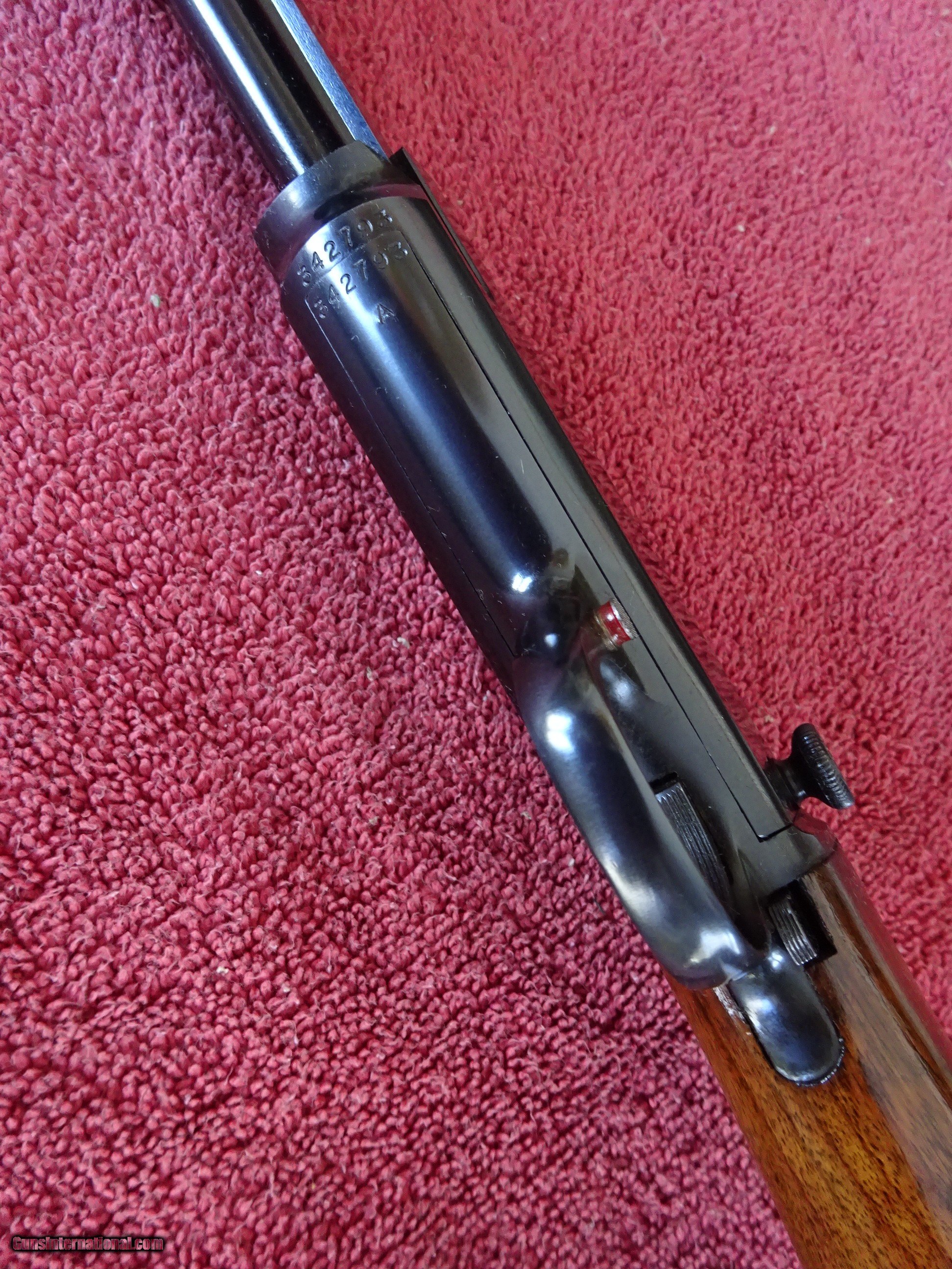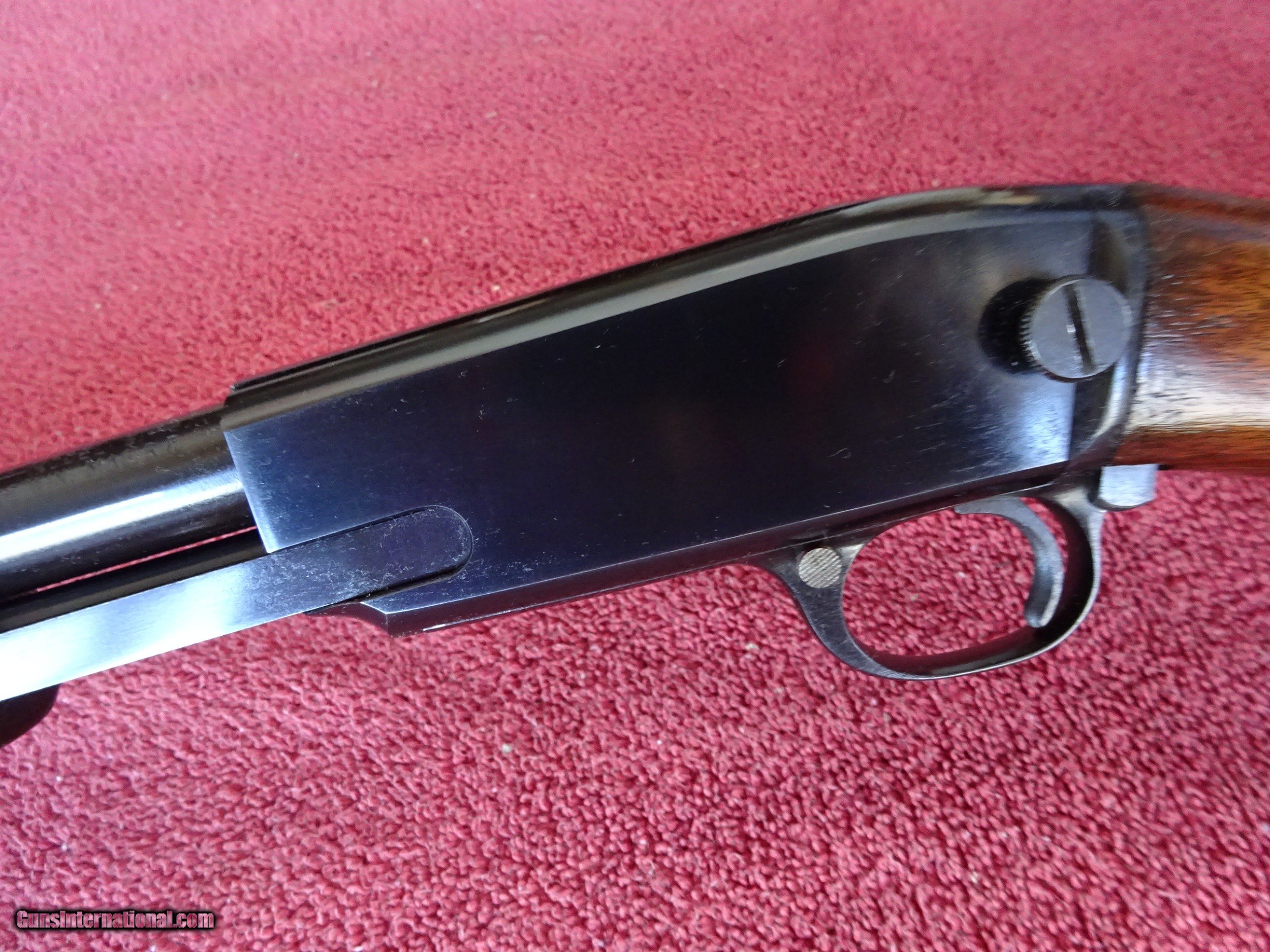 Description: WINCHESTER MODEL 61 MAGNUM. 98% BARREL BLUE, MIRROR PERFECT BORE, ONLY BLUE WEAR IS FROM THE MOVEMENT OF THE SLIDE. FRAME AND TRIGGERGUARD HAVE 100% HIGH LUSTER BRIGHT BLUE. EXCELLENT WOOD WITH ONLY VERY MINOR HANDLING MARKS IN THE VARNISH. PERFECT COMPOSITION BUTTPLATE. MADE IN 1962 100% ORIGINAL CONDITION. $1975.00 + $50.00 Insured shipping to an FFL address. See all Pats gun listings on this site! We also have hundreds of pieces of ORIGINAL gun company advertising & memorabilia available for sale on our site SPORTINGCOLLECTIBLES. We have no reprints or reproductions. Email for more information. SOLD Curio/Relic: Yes |