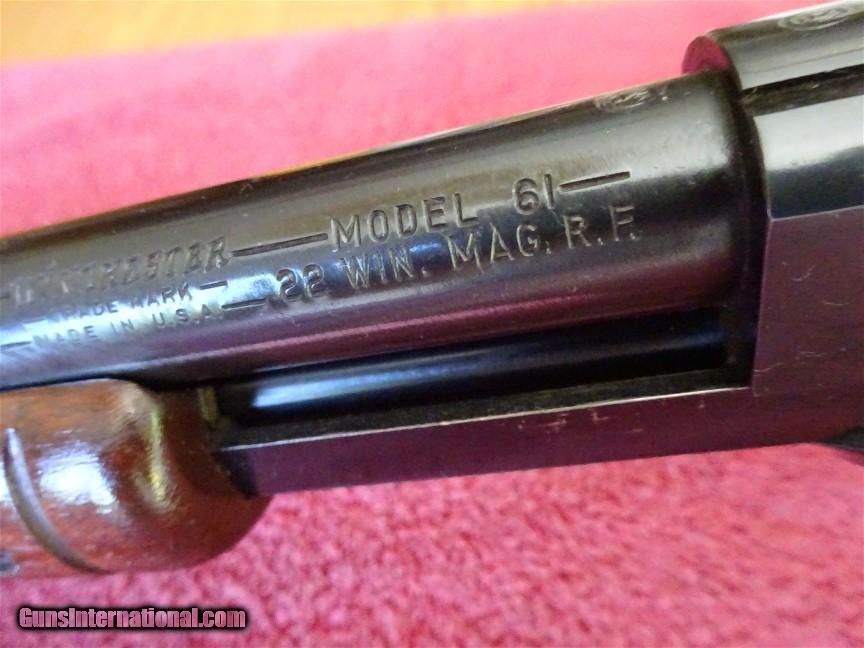 Description: WINCHESTER MODEL 61 MAGNUM, 98% ORIGINAL BRIGHT BLUE, MIRROR BRIGHT BORE. EXCELLENT WOOD, SLING SWIVELS ADDED. BEAUTIFUL, ORIGINAL GUN EXCEPT FOR THE SLING SWIVELS. MADE IN 1962. $1750.00 + $40.00 Insured shipping to an FFL address. See all Pats listings We also have hundreds of pieces of ORIGINAL gun company advertising & memorabilia available for sale. We have no reprints or reproductions. Email for more information. SOLD Curio/Relic: Yes Serial Number: 315,xxx |