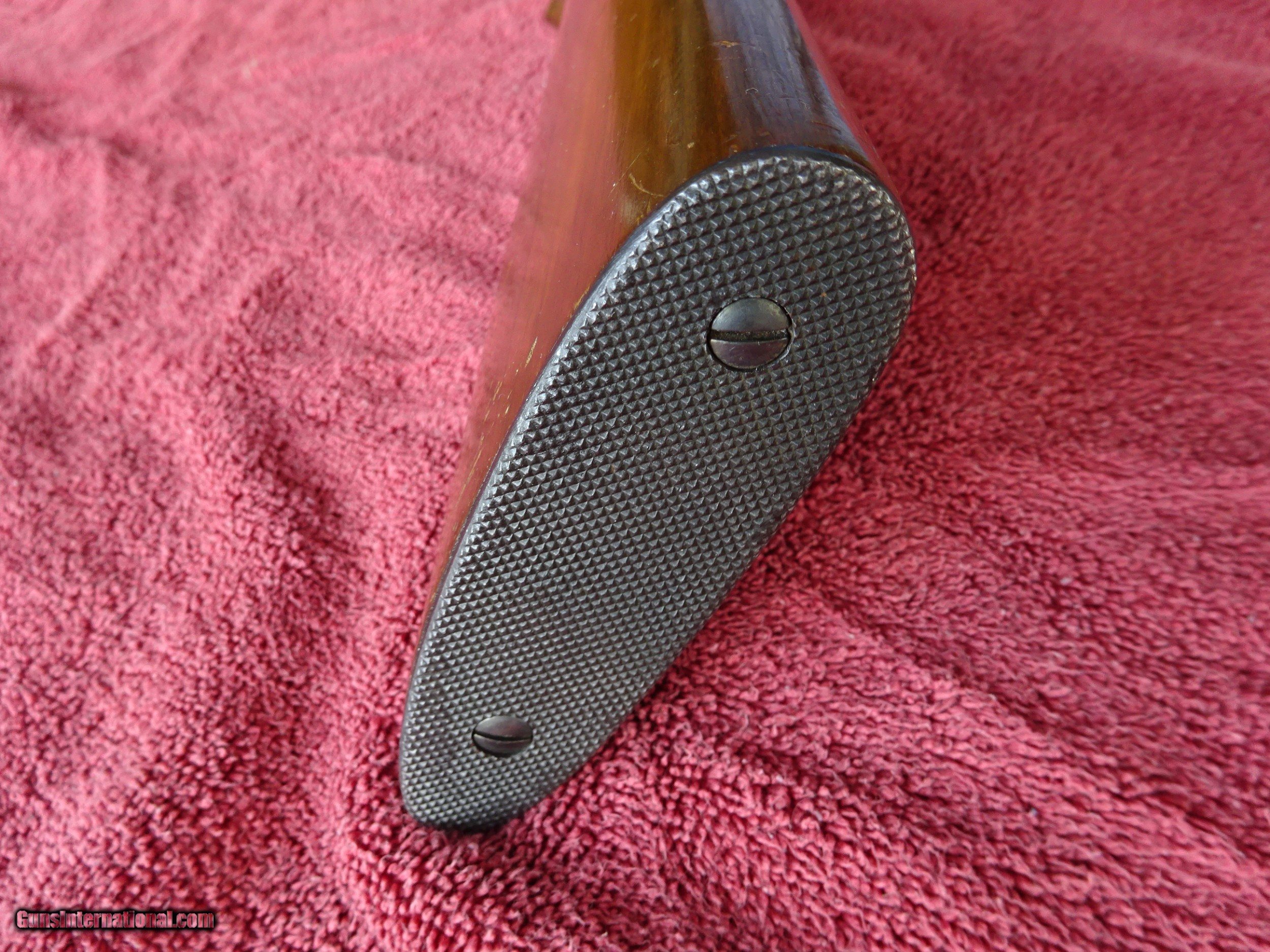 Description: WINCHESTER MODEL 61, PRE-WAR, 22 S. L. LR. EXCELLENT BRIGHT LUSTEROUS BLUE, MIRROR BRIGHT BORE. EXCELLENT WOOD WITH NORMAL HANDLING MARKS IN THE VARNISH. STEEL BUTTPLATE, 100% ORIGINAL CONDITION. $1375.00 + $45.00 Insured shipping to an FFL address. See all Pats listings We also have hundreds of pieces of ORIGINAL gun company advertising & memorabilia available for sale. We have no reprints or reproductions. Email for more information. SOLD Curio/Relic: Yes |