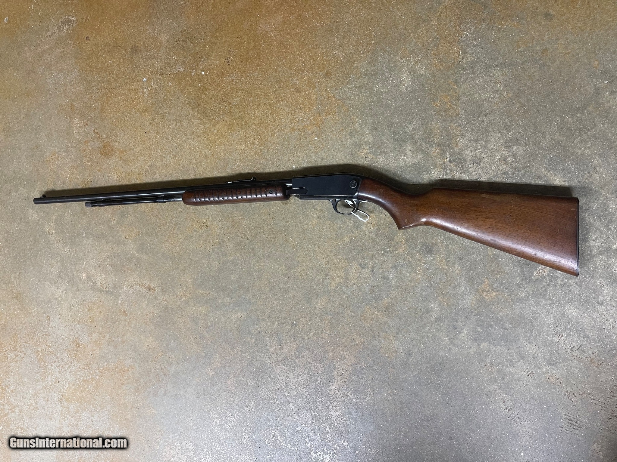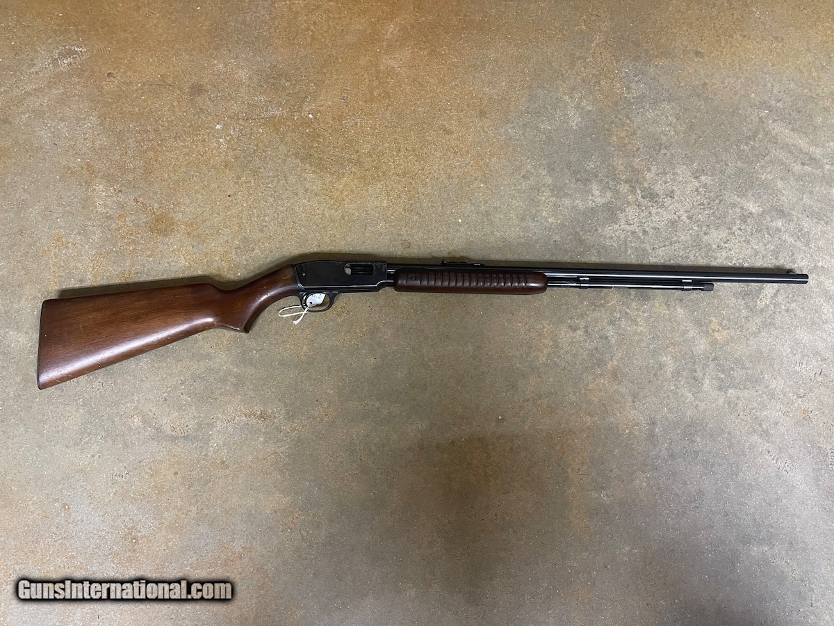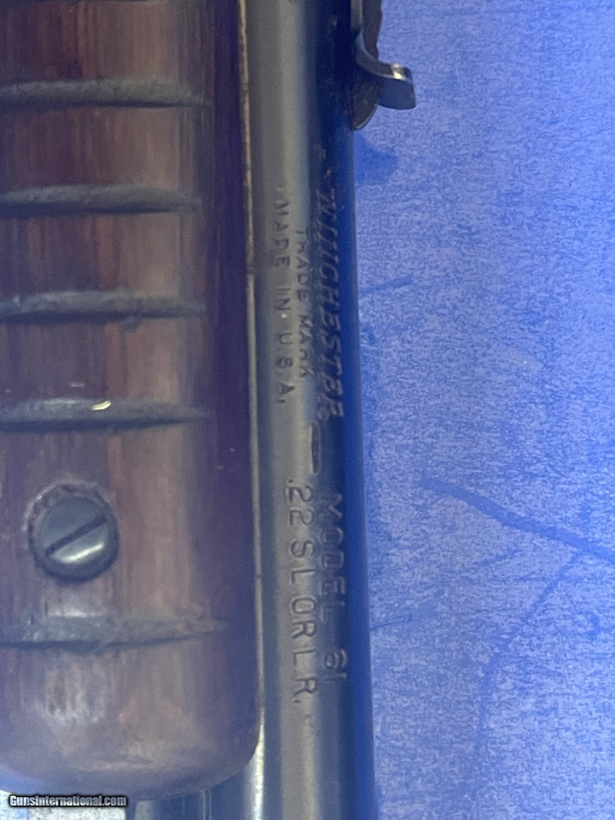 Description: Guns Listing ID: 490354 This firearms is a Winchester model 61, 22 short, L, LR, holds 14 long rifles, 17 longs, 20 shorts in magazine tube. A push button safety is located at the front of the trigger guard and the bolt release catch is at the rear, left side. This firearm condition is pretty good, with some bluing rubbed off, pitting on top or barrel, wood stock has some scratches, bore looks to be in great condition, please check the pictures out. I looked up serial number and manufacture date is 1954. G-I-43125 SOLD Manufacturer: WINCHESTER Model: Model 61 Pump 1954 Caliber Info: 22 S/L/LR Condition: Used - Non-Certified Barrels: 23 BARREL |
