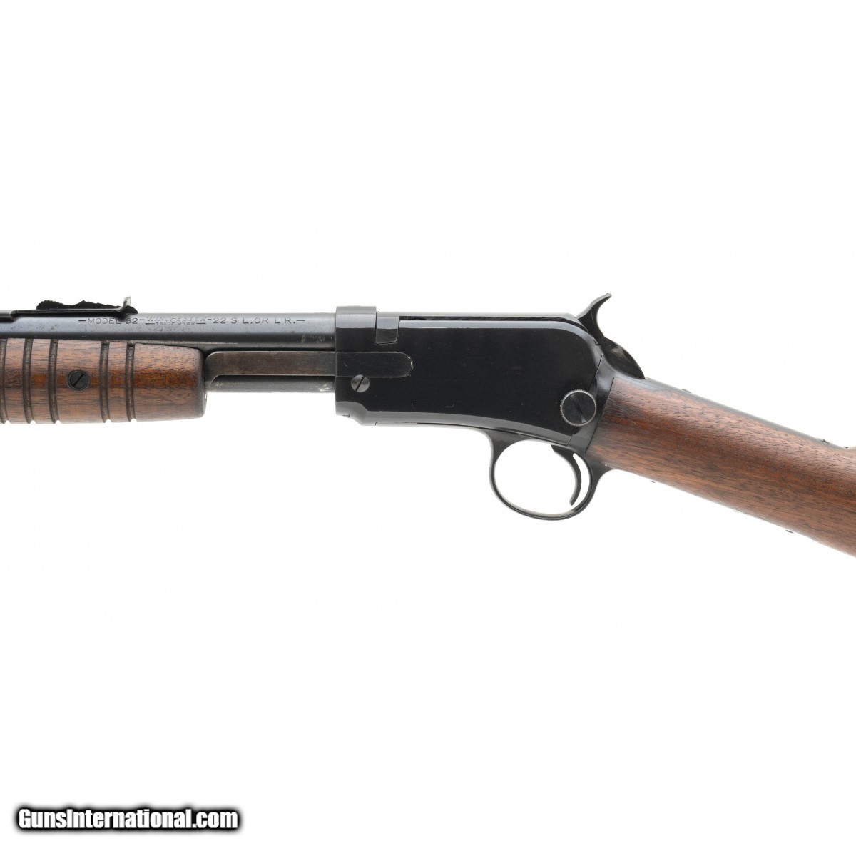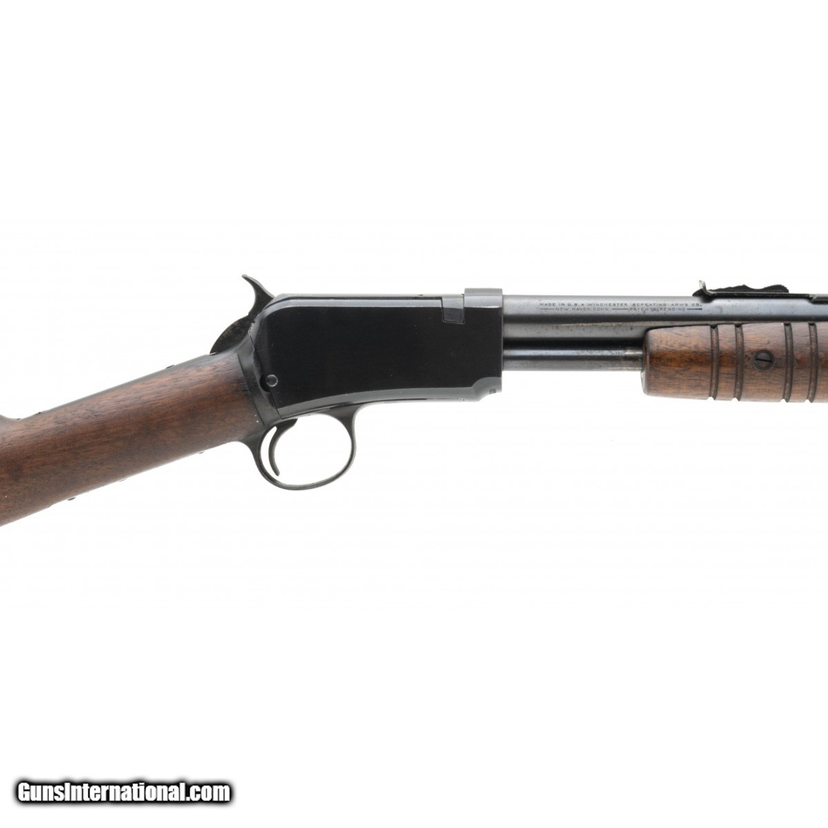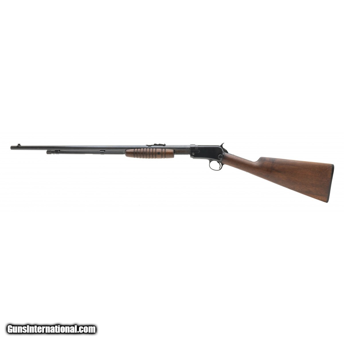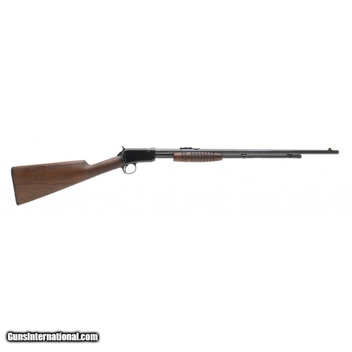 Description: " SN: 87603A. Pump action hammer rifle made in 1939. Has about 90% blue with some wear on the barrel. The bore is excellent. The wood is very good with light wear. A classic Winchester .22 pump rifle. SOLD Curio/Relic: Yes |