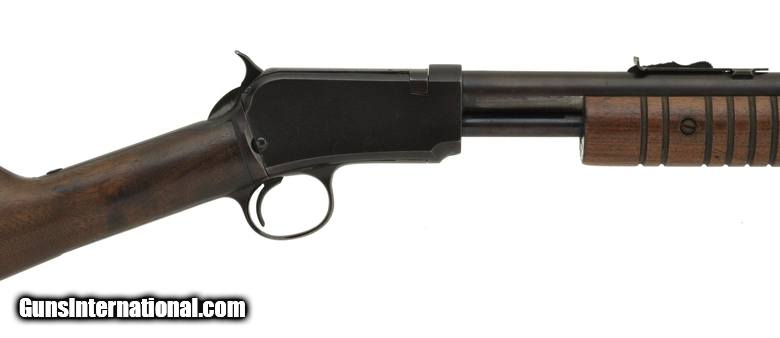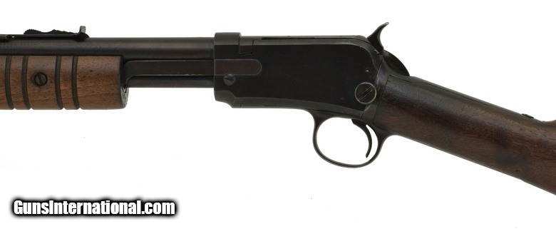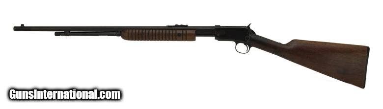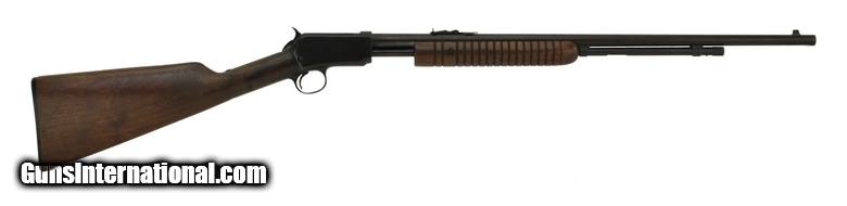 Description: Winchester 62 .22 S, L, LR caliber rifle. Slide action rifle made in 1947. Bore is excellent. Original blue is thinning to a patina. Wood is very good with minor nicks and dings. Good-Very good overall condition.