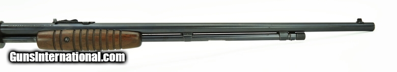 Winchester 62 .22S, L, LR caliber rifle. Hammer Pump Gun made in 1935. The bore is excellent, as is the barrel blue. The receiver has blue mixed with patina. The wood is very good with light wear. A nice example.