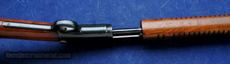 Description: Buiilt in 1958- this .22 pump is actually stunning. It does have a couple of obvious scratches that detract a mite, but overall the condition is exceptional. The blue is deep and dark overall. This has seen so little use, I'm sure the scratches are from storage. The bore is mint, the blue overall has got to be pert near 99%. I'll admit that I am not a Winchester .22 collector, but I've never seen one with blue this pretty. Nothing hidden, no surprises, no cracks in the stock or secret repairs. No box or papers. The right side of the receiver has a vertical scratch, the forearm has a few crosswise scratches or scrapes and there are some light scratches on the barrel. Again, storage I'm sure. See pics they show condition and color accurately. $35 shipping to the lower 48 and 3% surcharge for using a CC. SOLD |