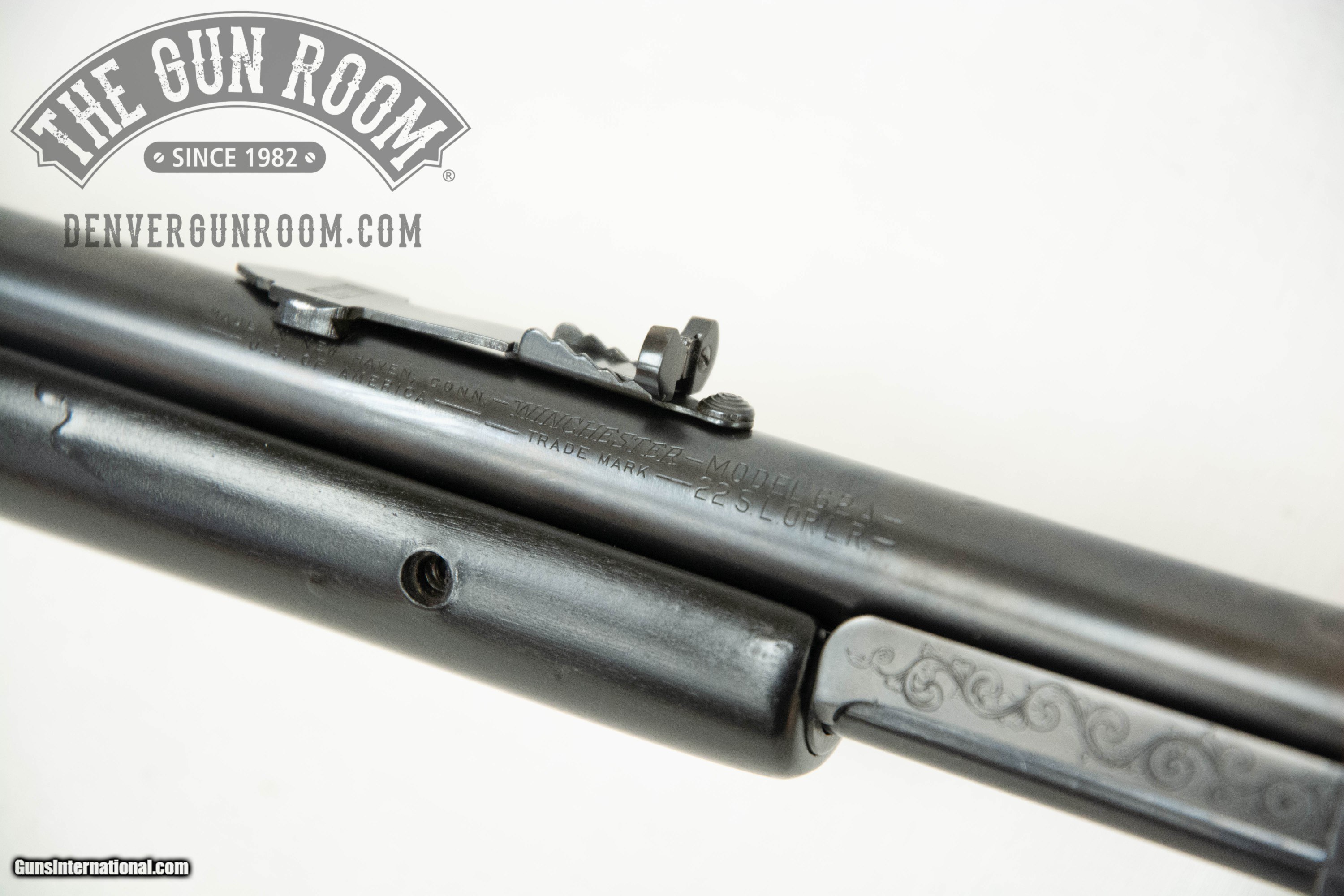 Description: Up for sale is an engraved Winchester 62A chambered in .22LR. This rifle has a 23" barrel, and a very good bore. SOLD Rifle Caliber: .22 Long Rifle Manufacturer: Winchester Model: 62A Barrel Length: 23 Bore Condition: Very Good Item Location: Lakewood, CO |