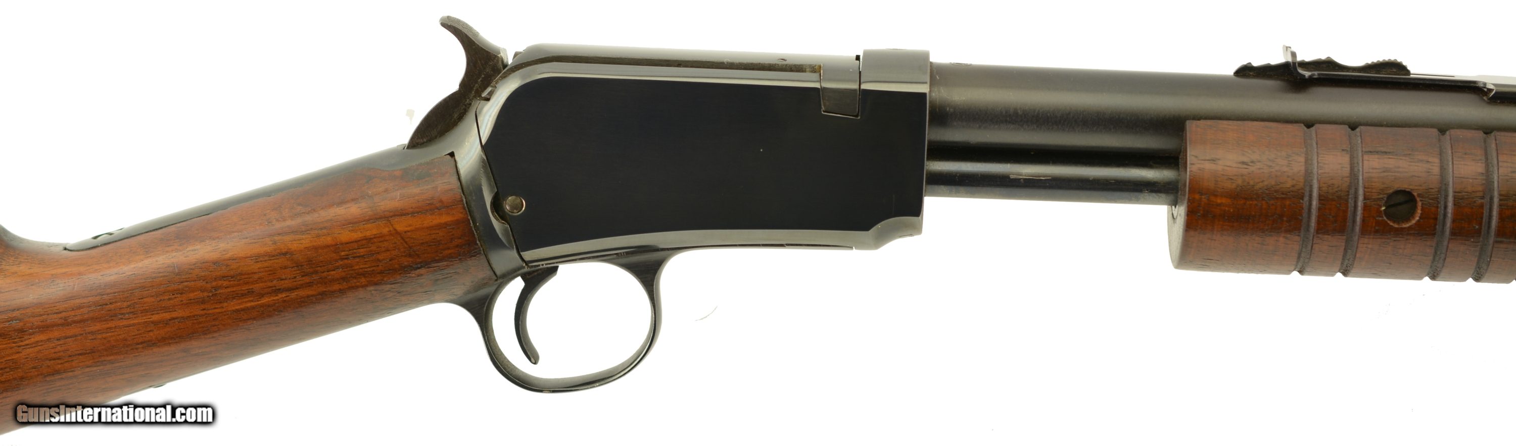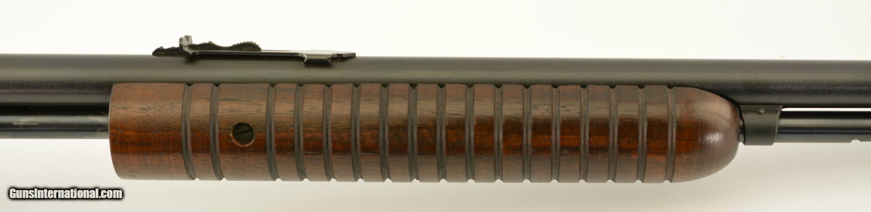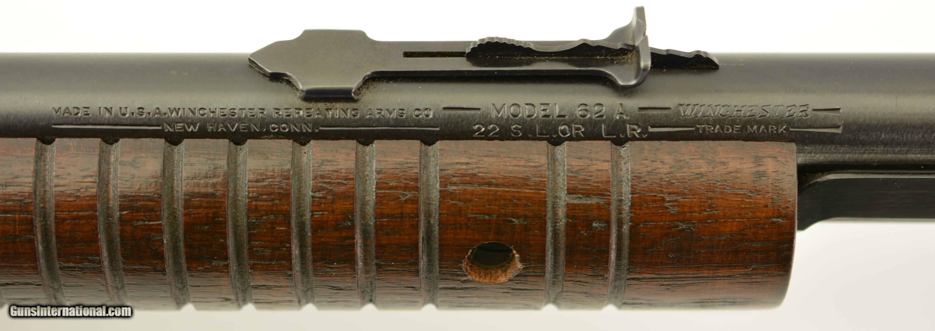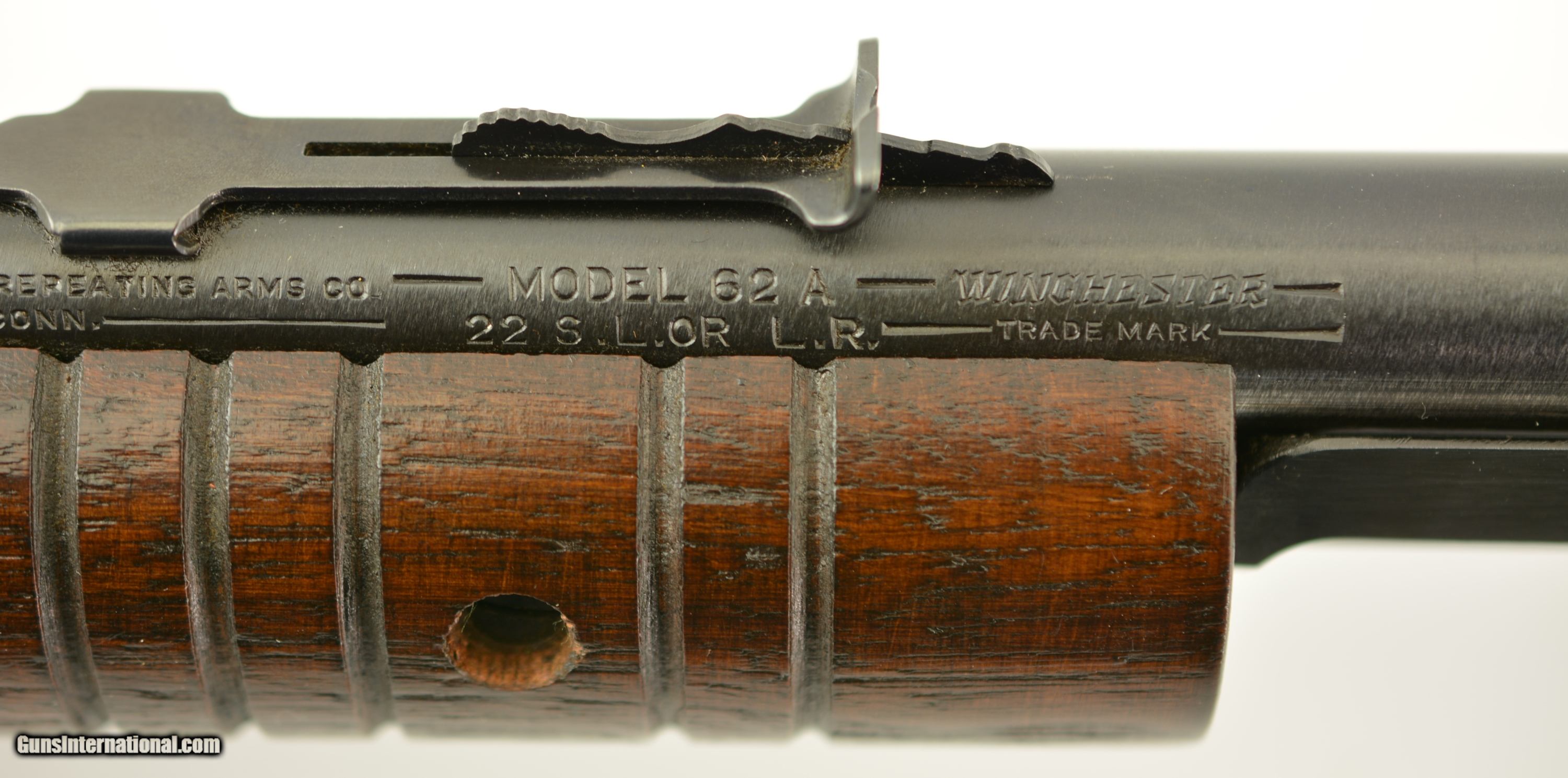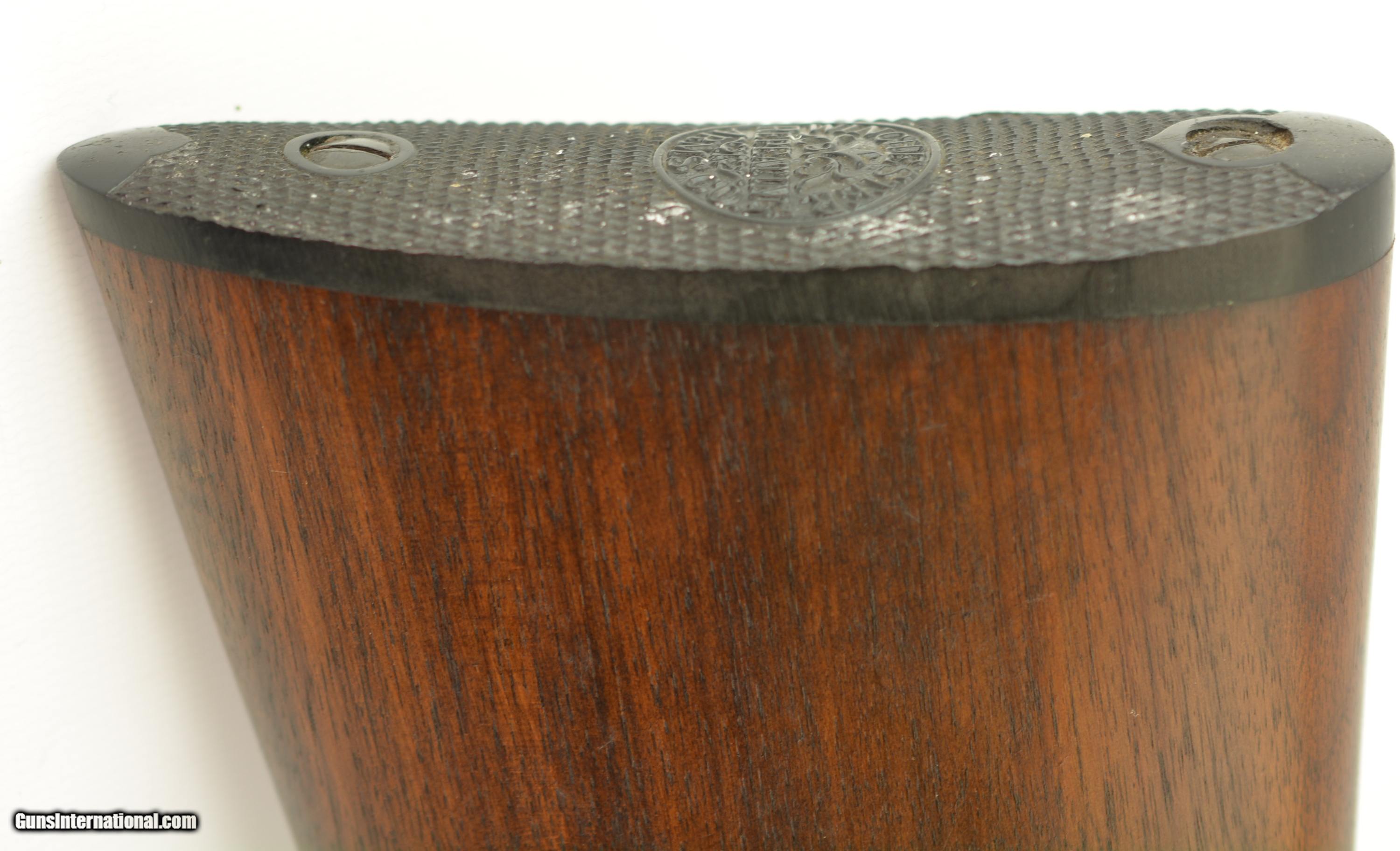 Description: Serial #173679, .22 LR, 23" barrel with an excellent, bright bore. This is a 1946-made rifle that retains 98-99% of the original blue finish with only some mild fading along the bearing surfaces of the barrel, magazine tube, and bolt. The grooved walnut forend and buttstock are likewise in excellent original condition with only trace handling marks and a few very minor surface blemishes present. The original hard rubber buttplate is still present, and is in excellent, almost unused condition. This is a superb example of an original Model 62A rifle, and would be very difficult to upgrade from. FFL or C&R SOLD Curio/Relic: Yes Manufacturer: Winchester Model: 62 Serial Number: 173679 Caliber Info: .22 Gauge Info: .22 |