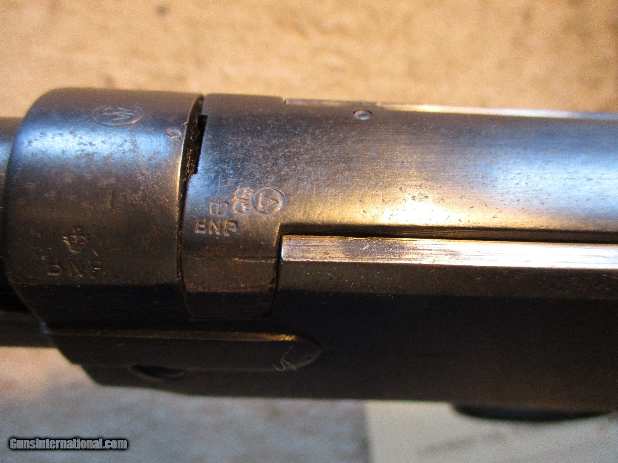 Description: Winchester Model 62, Made in 1938. SN is 673xx, both numbers do match. The gun at some time in its life has been to England, has the English proof marks to show for it! Very cool! Near perfect bore!. We will trade for silver and gold. We accept personal check, any certified funds, Venmo or Zelle. We can also take your credit card, +3%. Email me if you would like these pictures sent to you, they will come through bigger and better than on the listing page here. We do offer Layaway. Our standard terms are 25% down, 90 days. Initial deposit is not refundable. Email me with any questions. Please check your local laws to confirm it is legal to own in your state! Buyer pays $60 shipping and insurance in a brand new PLANO hard case to your FFL in the lower 48. AK, HI or PR is extra. I will ship to California, as long as it is legal, NO PROBLEM! All my guns come with a non-firing, 3 day unconditional return privilege, from the day UPS delivers to your dealer. Buyer pays shipping both ways if the gun comes back. Please make sure to make it to your FFL to inspect within the 3 days. I am a licensed FFL, and will include a copy of my FFL with the gun for your dealer’s records. I will ship to a C&R if the gun is eligible. I will ship to California, but you need to confirm the gun is legal where you are, California or other. WE BUY AND CONSIGN GUNS AND GUN COLLECTIONS! We will travel to pick up collections! I am always looking for good clean, old original Winchesters to buy, consign, or trade, especially Pre '64's model 70's and model 54's. WE ALSO TRADE FOR CLASSIC CARS AND TRUCKS! We also trade for gold and silver. SOLD Rifle Caliber: .22 Long Rifle Manufacturer: Winchester Model: 62 Barrel Length: 23 Condition: Used |