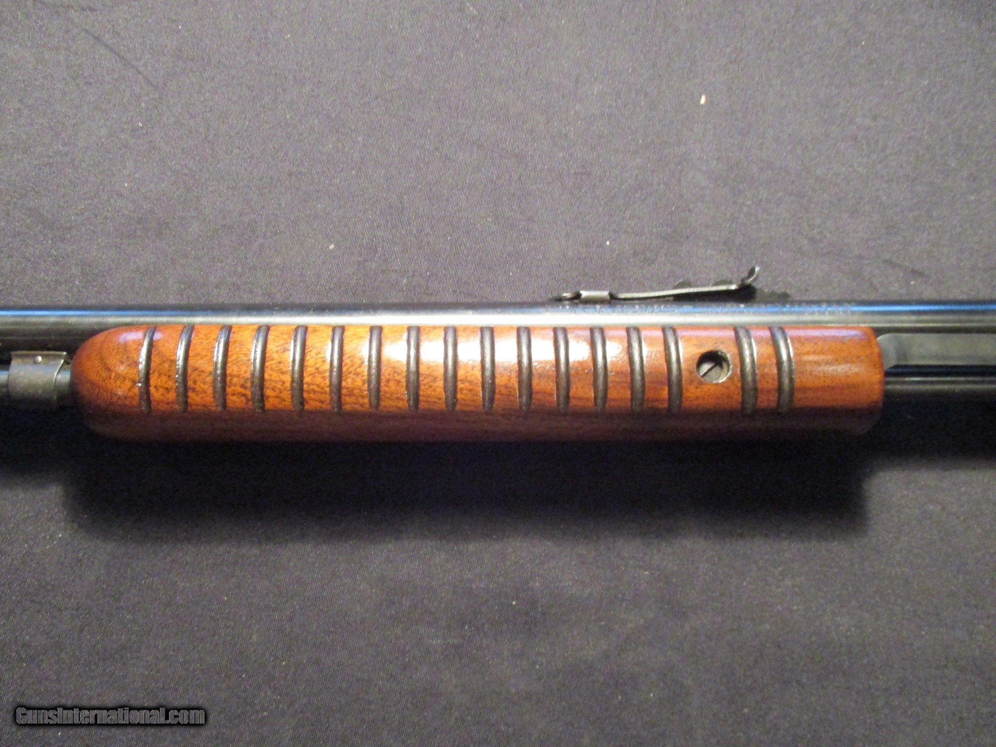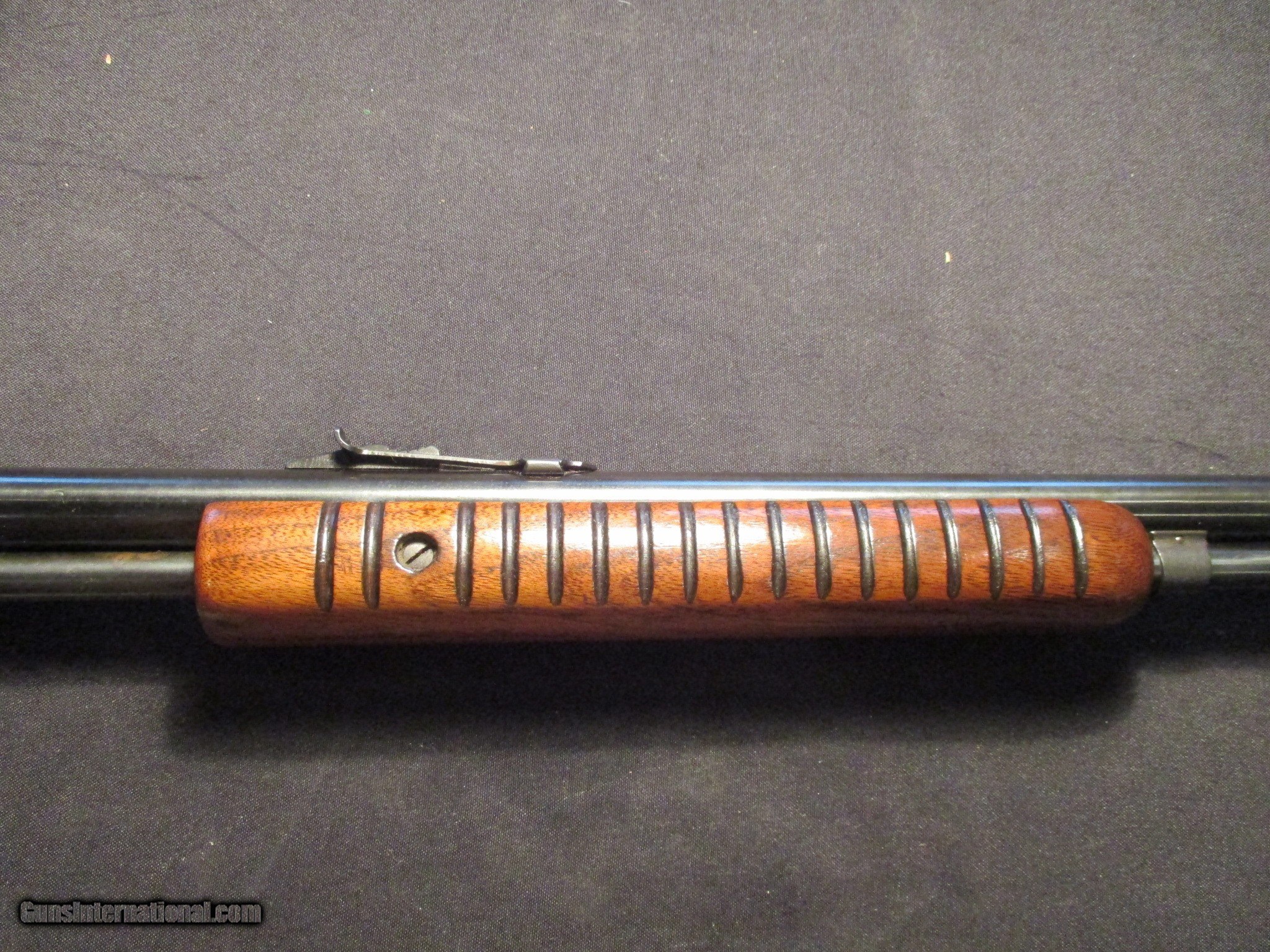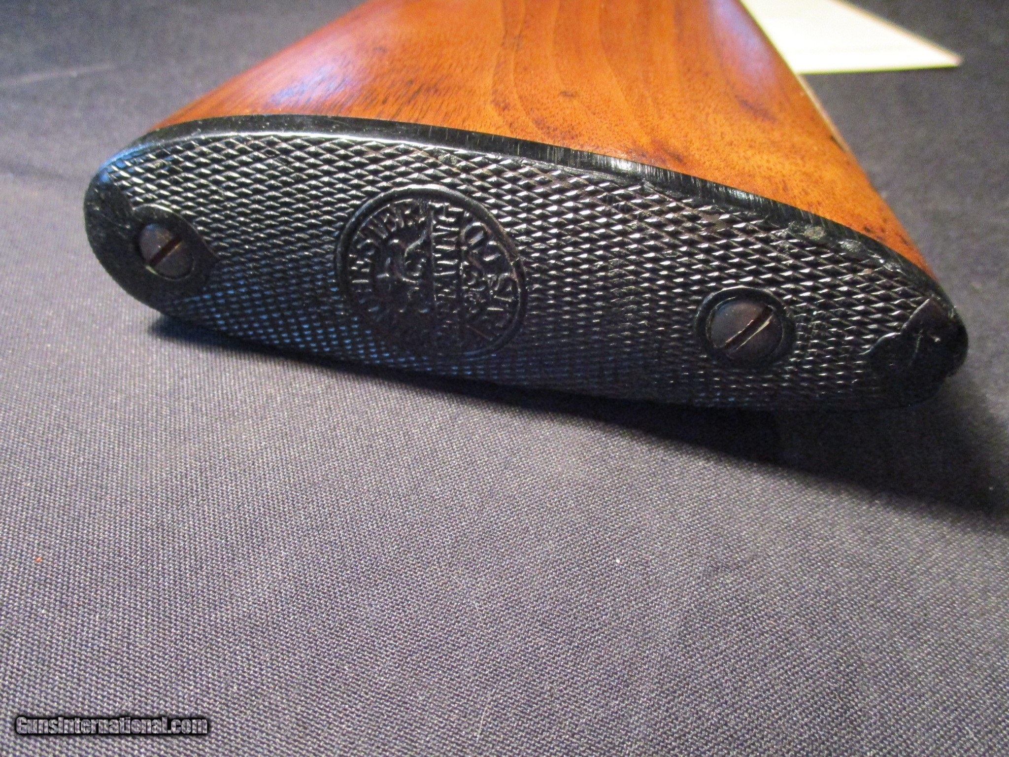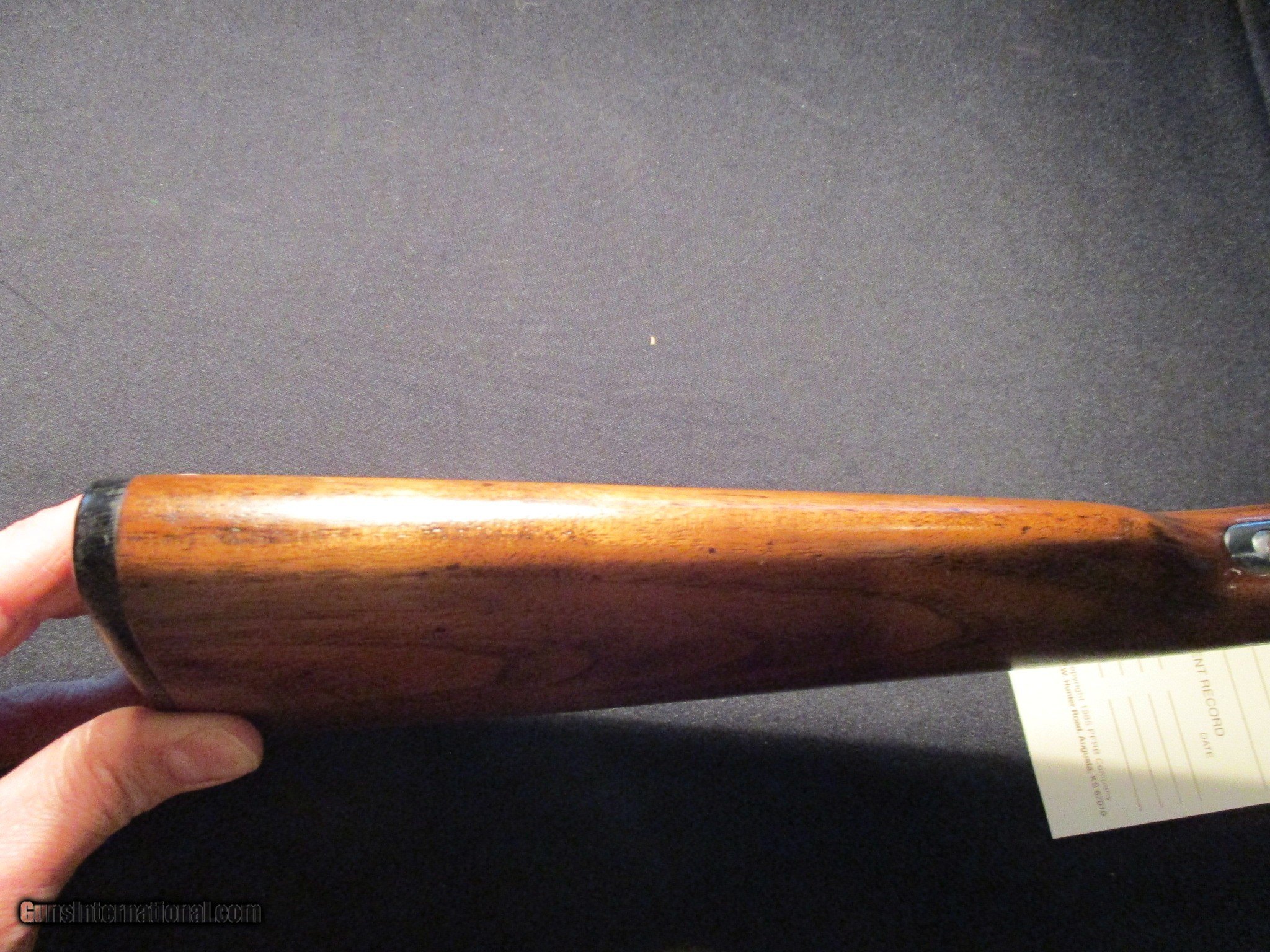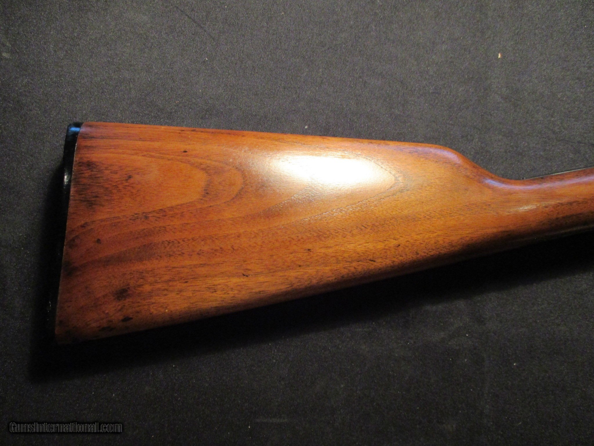 Description: Winchester 62A, 22 Short. 23" barrel, factory open sights. SN is 3358xx. I do believe the gun has been restored, looks too nice! Good bore, good working order! Email me if you would like these pics sent to you, they will come through bigger and better than on the listing page here. Email me with any questions. I am a store front dealer, and I will close s if the gun sells locally. Once ahas reached my reserve, I will pull it from my shelves. Please check your local laws to confirm it is legal to own in your state! Buyer pays $25 shipping and insurance to your FFL, in the lower 48. AK, HI or PR is extra. I will ship to California, NO PROBLEM! All my guns come with a non firing, 3 day unconditional return privilege, from the day UPS delivers to your dealer. Buyer pays shipping both ways if the gun comes back. I can add a new hard case by PLANO for secure shipping for $25 if the buyer wishes (highly recommended, cheap insurance, really helps keep the UPS monster from eating my guns!). No sales tax on guns ship out of Kansas, guns sold in Kansas are subject to Kansas sales tax. I am a licensed FFL, and will include a copy of my FFL with the gun for your dealers records. I will ship to a C&R if the gun is eligible (you look it up!). I will ship to California, but you need to confirm the gun is legal where you are, California or other. I am always looking for good clean, old original Winchesters to buy, consign, or trade, especially pre '64's model 70's and model 54's. WE ALSO TRADE FOR CLASSIC CARS AND TRUCKS! I will leave feedback as soon as the buyer leaves feedback on me. Email me with any questions, and good luck! SOLD |