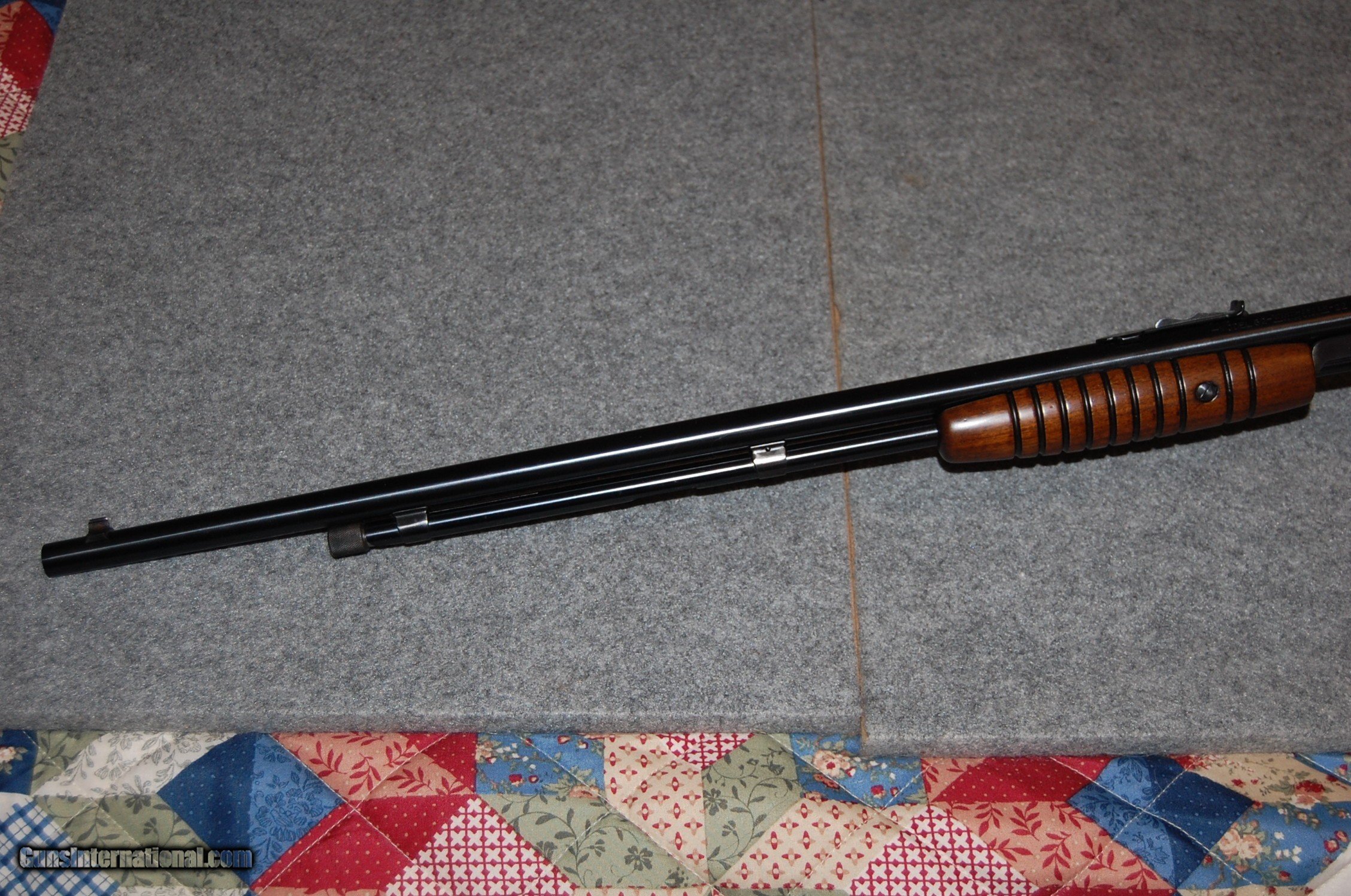 Description: Winchester 62 prewar .22 S-L-LR S# 75625 Bright excellent bore Rifle is 100% as refinished All markings are crisp Very nice mechanically From my collection SOLD Curio/Relic: Yes |