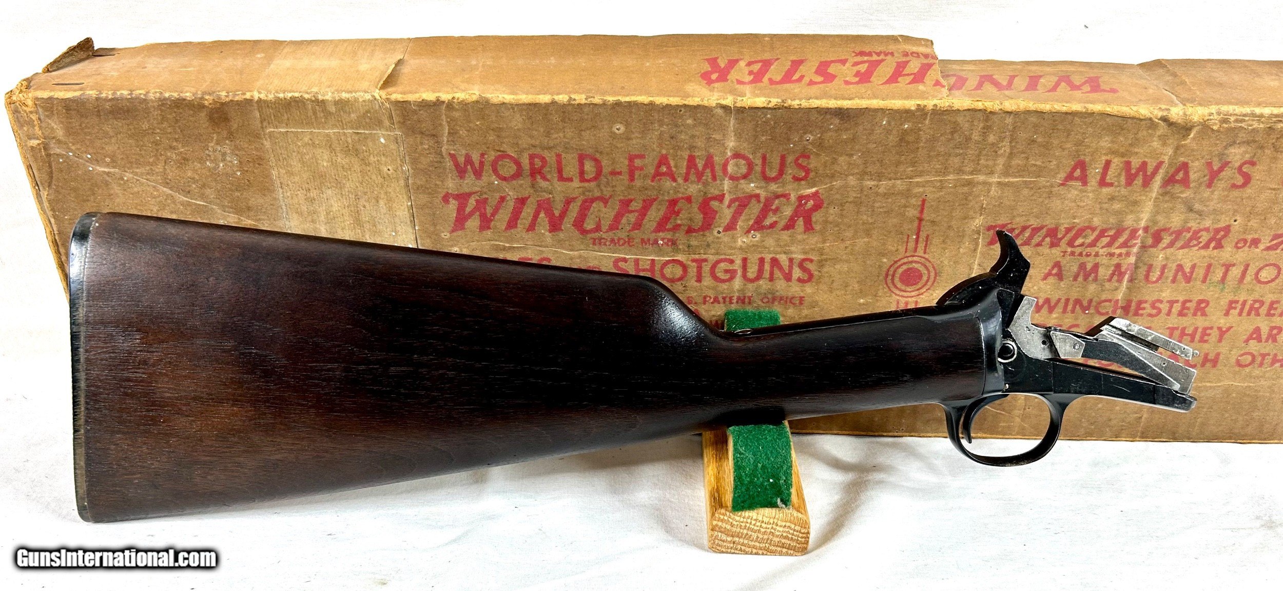 Description: ****ON HOLD****Up for sale I have a Winchester model 62 gallery gun chambered in 22 Short Only. This one has the triangular loading port and appears to have never been assembled. This is a VERY RARE find to be unused and still in its original box. Included is the manual and two ther pieces of paperwork. The gun is absolutely MINT and NIB. Shipping will be $65 and to FFL or C and R license holder only. Please don't hesitate to ask any questions or to request more photos. SOLD |