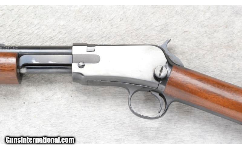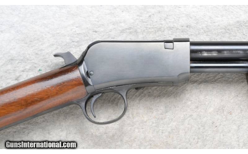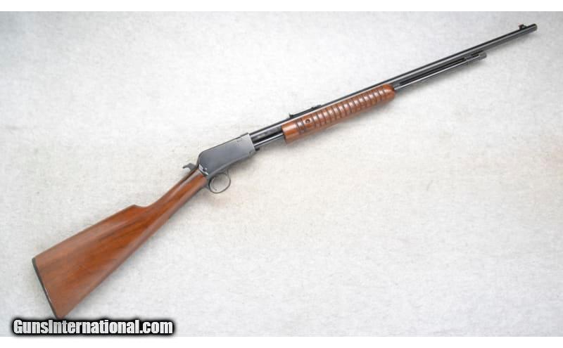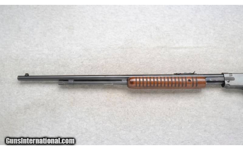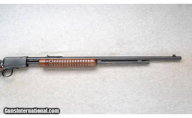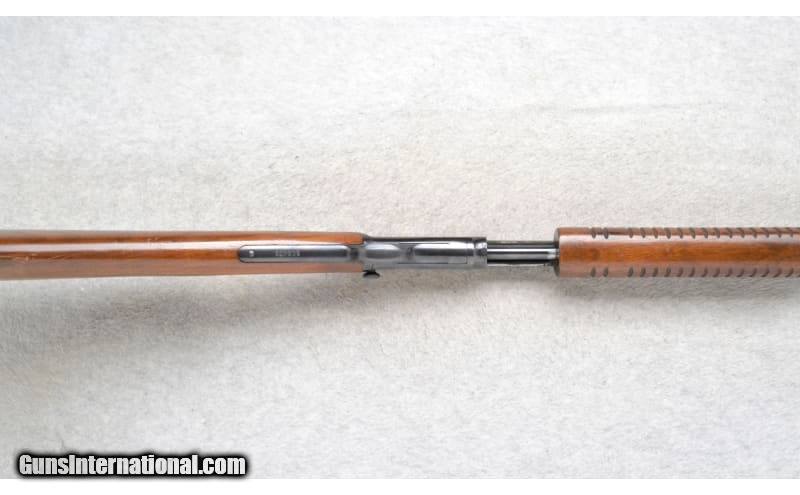 Description: This Winchester Model 62A is a pump action target rifle in .22 Short, Long or Long Rifle Cal. It has a 23 inch barrel. A blade front sight and an adjustable notch middle sight. The butt stock is a smooth grip walnut straight grip. The forearm is a grooved grip walnut. Serial Number 309479 (1953). .22 Short/Long/Long Rifle SOLD Chambers: Tube Magazine. Metal Condition: Very Good. A rust area on the loading tube. Appears to have been reblued. Wood Condition: Good. Has light handling marks. Bore Condition: Very Good. Barrels: 23 inch. Stock Dimensions: LOP 13 1/4 inches. Fore End: Ribbed grip walnut. Butt Pad: Winchester checkered black plate. Weight: 5 Lb. 8 Oz. Sights: Blade front. Adjustable notch middle. Item Location: Richfield, WI |