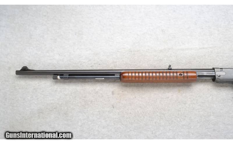 Description: This Winchester Model 62A is a right hand pump action rifle in .22 Short, Long or Long Rifle Cal. It has a 23 inch barrel. A raised blade front sight and a folding adjustable notch middle sight. The butt stock is a smooth grip walnut straight grip. The forearm is a grooved grip walnut. Serial Number 368661. .22 Short/Long/Long Rifle SOLD Chambers: Tube Magazine. Metal Condition: Good. Minor blue wear and freckling on the receiver. Wood Condition: Good. Some minor handling/use marks. Bore Condition: Very Good. Barrels: 23 inch. Stock Dimensions: LOP 11 1/2 inches. Fore End: Grooved grip walnut. Butt Pad: White-Line grooved no slip black plate. Weight: 5 lb. 6 oz. Sights: Raised blade front. Folding adjustable notch middle. Item Location: Richfield, WI |