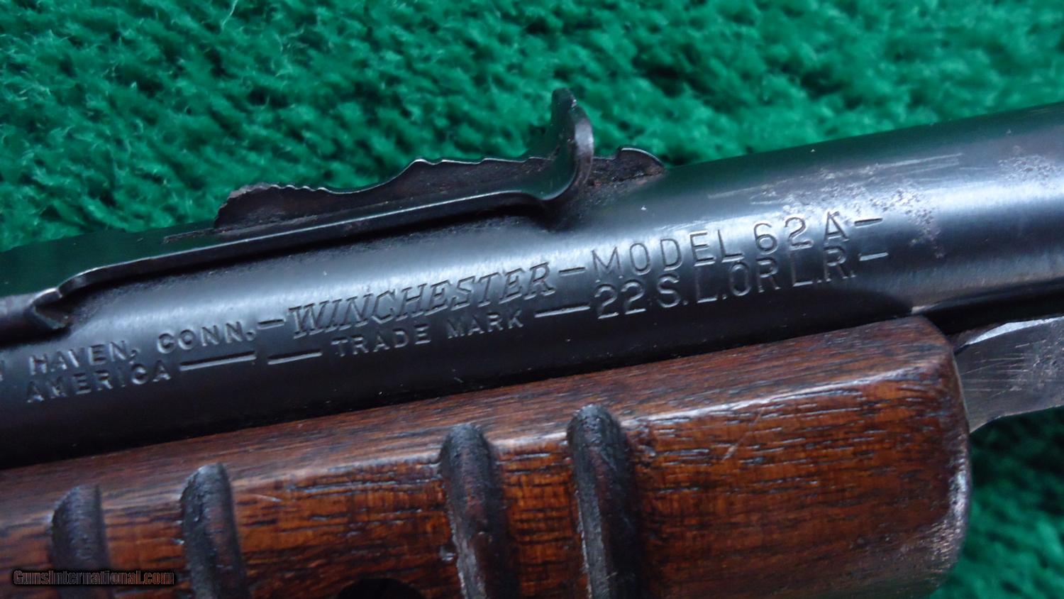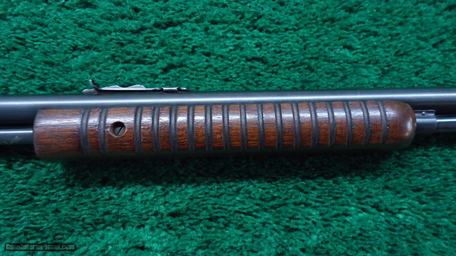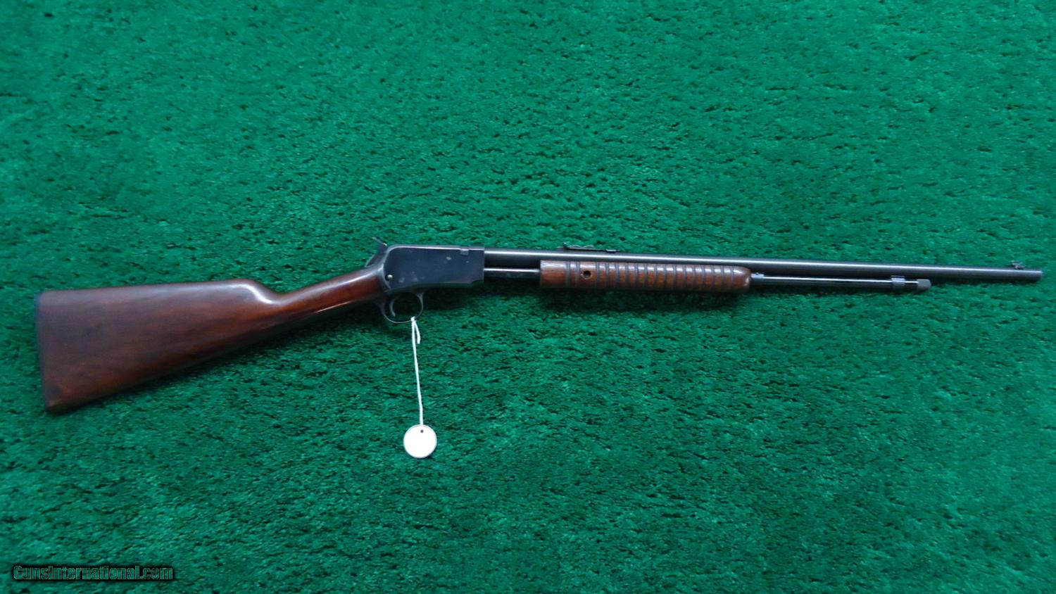 Description: Cal 22 S, L or LR. This gun does not look like it has been used much as there is most blue remaining. It does suffer slightly from what appears to be poor storage with some spots along the frame and bbl of light pitting that has been poorly cleaned with a few scratches on the finish. Bright shiny near perfect bore. Wood is near excellent cond. 62's are very popular and this would be a good collectable or shooter. Leroy Merz Antique Firearms specializes in antique and vintage Winchesters and other fine American firearms. Since 1965 Mr. Merz has taken part in the world of firearms and has been a contributor to many well known reference books. Just recently we mailed the 126th edition of our privately-published catalog. We have hundreds of additional guns in every price range at our home online. Search for Merz Antiques in google. SOLD Curio/Relic: Yes |