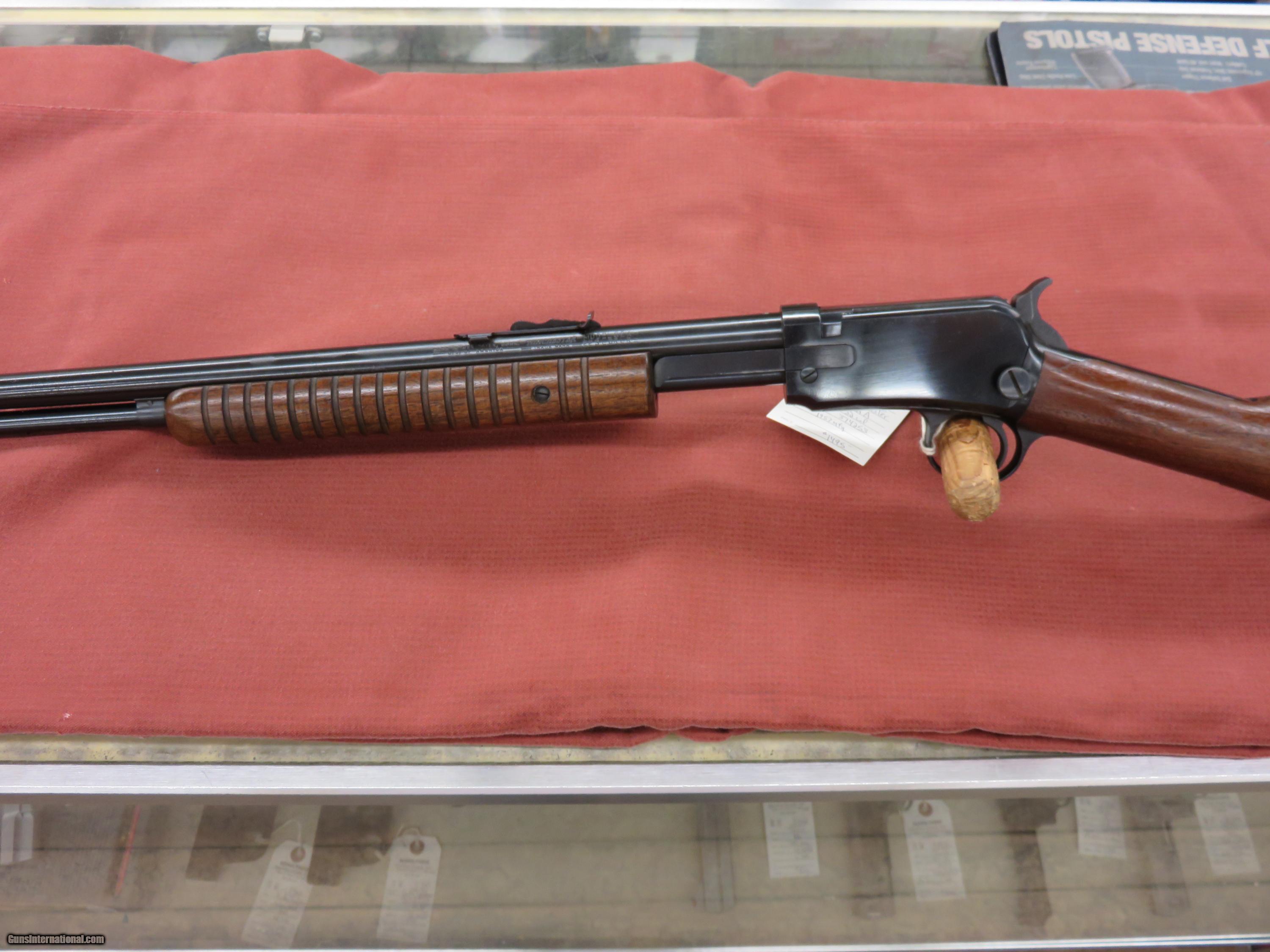 Description: Winchester 62A, 22 cal. #374XXX. 1957 mfg., 99% blue & wood varnish, alloriginal, near mint. SOLD Curio/Relic: Yes |