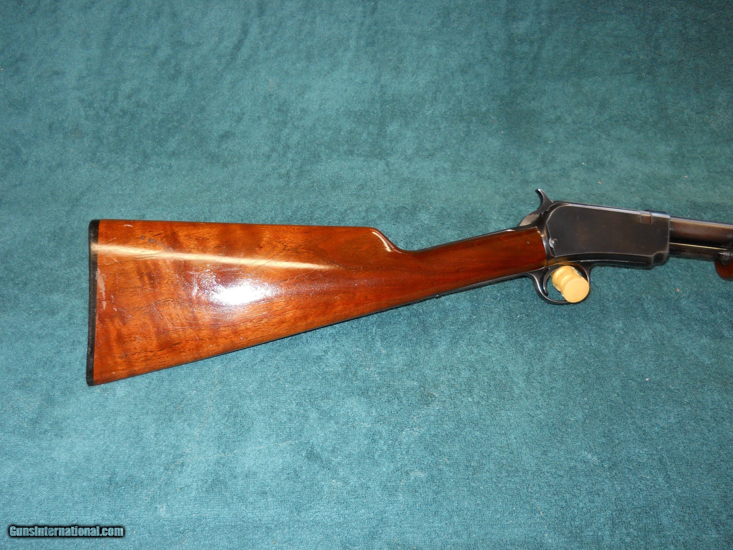 Description: Beautiful wood on buttstock. Pronably not original but still nice. Blueing looks original. 95% overall finish. Mfg. 1939. Add this nice one to your collection. Buyer pays shipping and insurance. SOLD Rifle Caliber: .22 Long Rifle Manufacturer: Winchester Model: 62A |