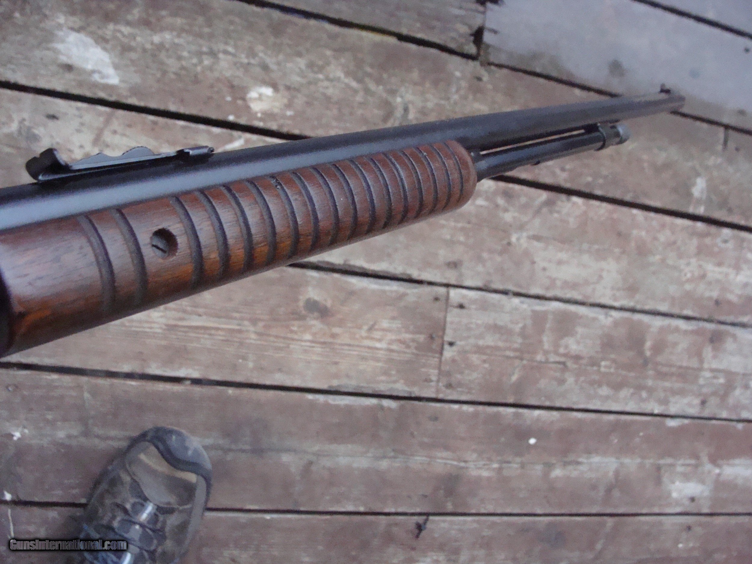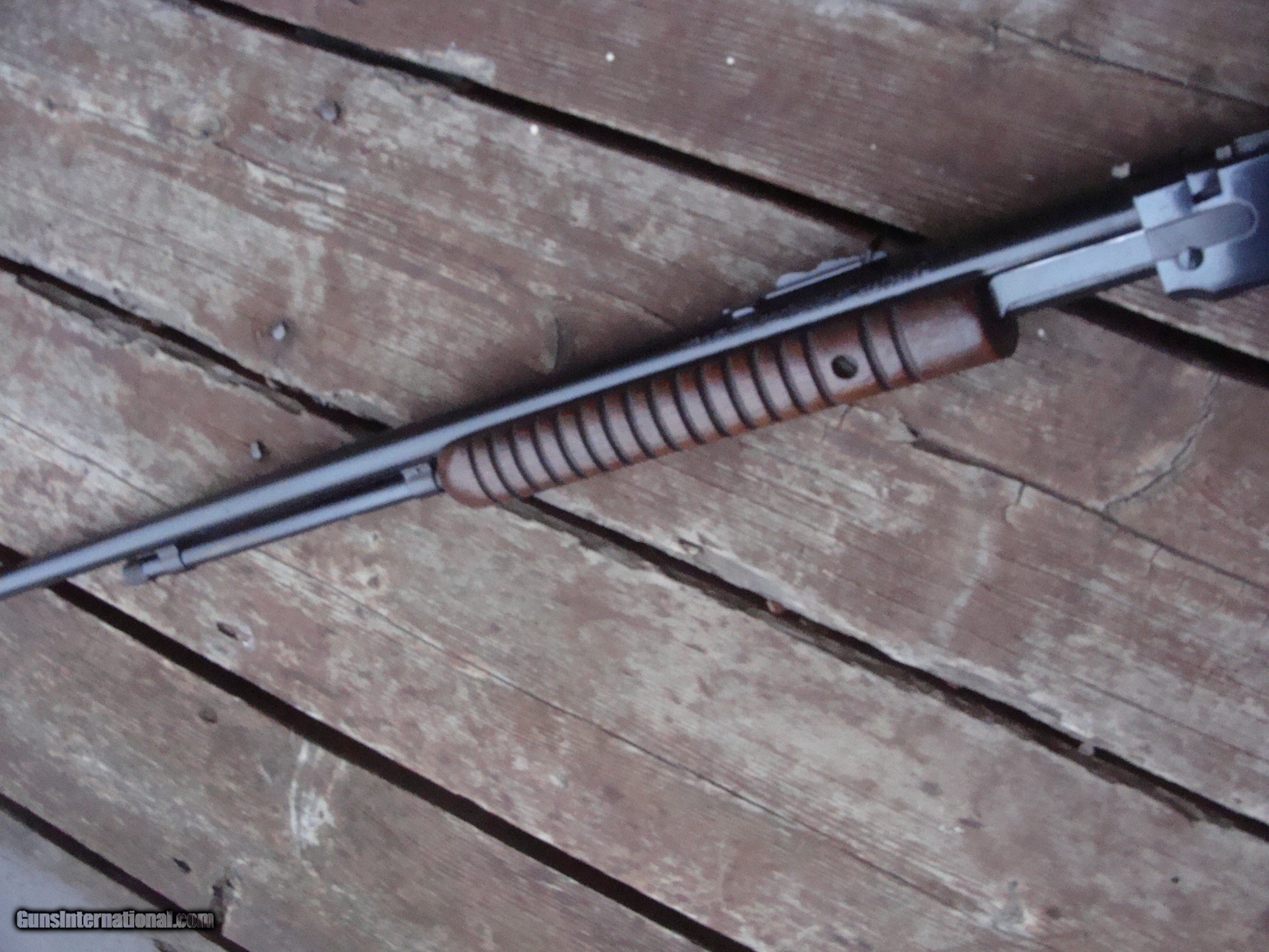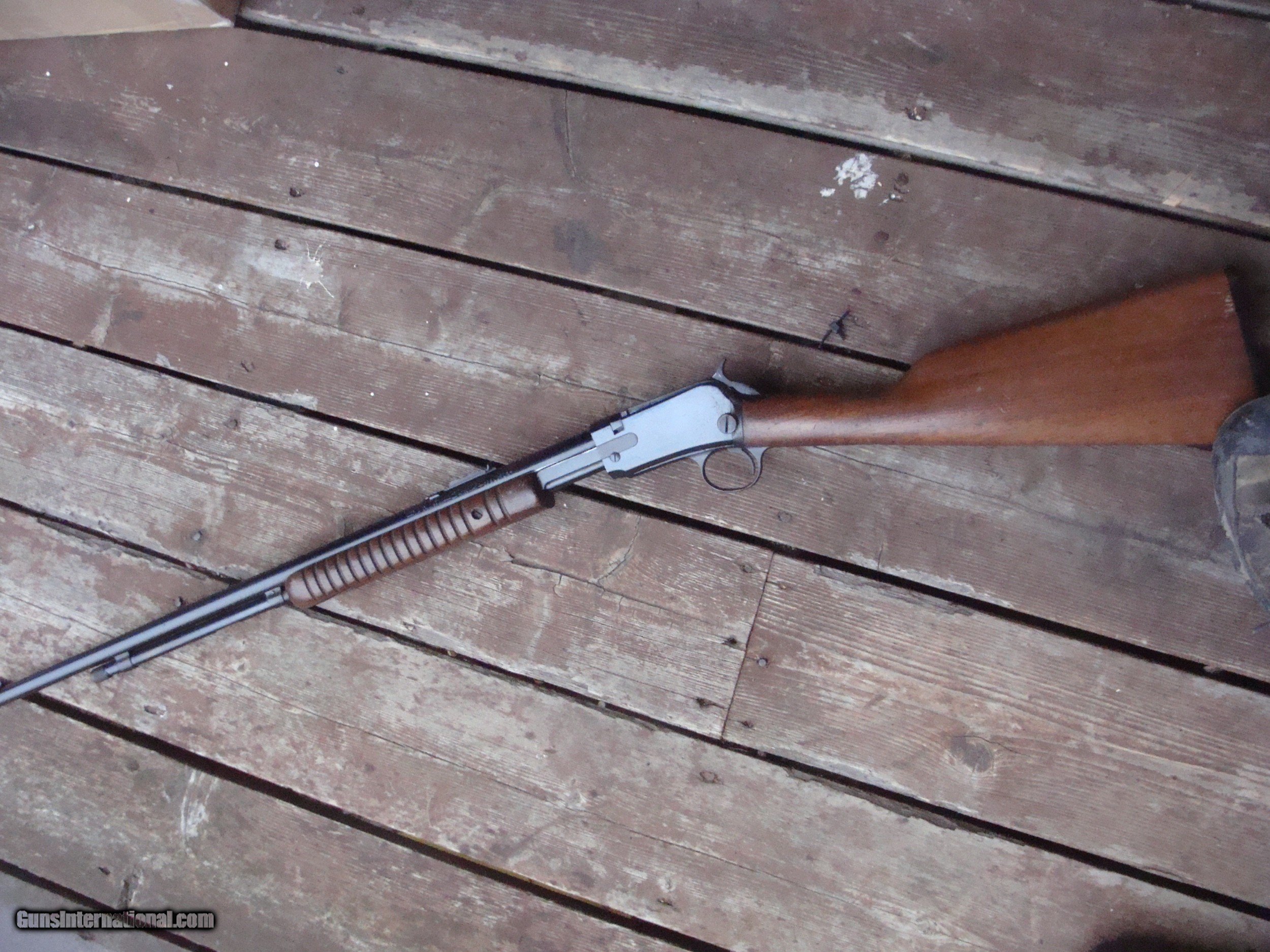 Description: SALE PENDING JOE G. Nice looking 22 pump action tube fed repeater. Retains most blue and all of the original stock fisnish. No cracks , no splits and not reapirs. There is some light frosting on the receiver and a little loss of blue at 1:00 position near muzzle. No alterations and no non factory holes or otehr Nice little pump gun at a bargain price. This gun does not seem to have been used much at all Made in 1957 at a time when there were real workers and craftsmen at the old Wimcheter Plant in New Haven Ct Shipping $ 50.00 (more to ak and hi) PLEASE READ EVERYTHING BELOW IN BOLD: IF IT DOES NOT SAY NEXT TO THE PRICE..."SALE PENDING OR UNDER DEPOSIT"...IT IS AVAILABLE. WE DO NOT REPLY TO INQUIRIES THAT SAY "INTERESTED IN THIS GUN" OR "IS IT AVAILABLE" IF YOU WOULD LIKE TO BUY THIS OR ANY OF OUR GUNS WE SUGGEST YOU PHONE US; WE ARE OFTEN AVAIALABLE LONG HOURS. IF YOU ARE INTERSTED IN A GUN THAT IS UNDER DEPOSIT AND WOULD LIKE TO BE NOTIFIED IF A SIMILAR GUN COMES IN DROP US A LINE AND WE WILL MAKE EFFORTS TO CONTACT YOU WHEN ONE DOES COME IN. WE HAVE OVER 2000 SALES ON ALL SITES WITH AN A+ RATING ON ALL WE ALSO KEEP AN INVENTORY OF OLDER PERIOD CORRECT SCOPES; CALL WITH NEEDS WE MOSTLY PICK VERY CLEAN AND LIGHLTY USED GUNS. WE ARE HAPPY TO TAKE CONSIGNMENT GUNS AND COLLECTIONS OR WILL BUY YOURS OUTRIGHT. WE SOMETIMES ARE EMPLOYED FOR ESTATE PURPOSES AND VALUATIONS. CT RESIDENTS MUST CONTACT US TO UNDERSTAND OUR IN STATE TRANSFER POLICIES. PAYMENT USPS MONEY ORDER ONLY AT THIS TIME. ( WE CAN TAKE A DEPOSIT WITH A CARD BUT THE GUN MUST BE PAID WITH A USPS MONEY ORDER) IT IS THE BUYERS RESPONSIBILITY TO GET US A COPY OF YOUR RECEIVING FFL'S LIC AND A COPY OF YOUR PHOTO ID BEFORE THE GUN SHIPS YOU MUST CALL YOUR FFL.WE DO NOT CALL FOR YOU. LAYAWAY PURCHASES NOT COMPLETED OR ANY RETURNED ITEM UNLESS NOT AS DESCRIBED OR DAMAGED ARE SUBJECT TO A 10% RELISTING/RESTOCKING FEE AND MUST BE RETURNED WITH NO NEW MARKS OR SCRATCHES, SENT BACK INSURED, PRIORITY SIGNATURE REQUIRED. ALL INFORMATION CONTAINED HEREIN IS BELIEVED TO BE ACCURATE BUT IS NOT GUARANTEED. WITH ANY OLDER OR USED GUN IT SHOULD BE EXAMINED BY A GUNSMITH OR COMPETENT EXPERT PRIOR TO USE) SOLD |