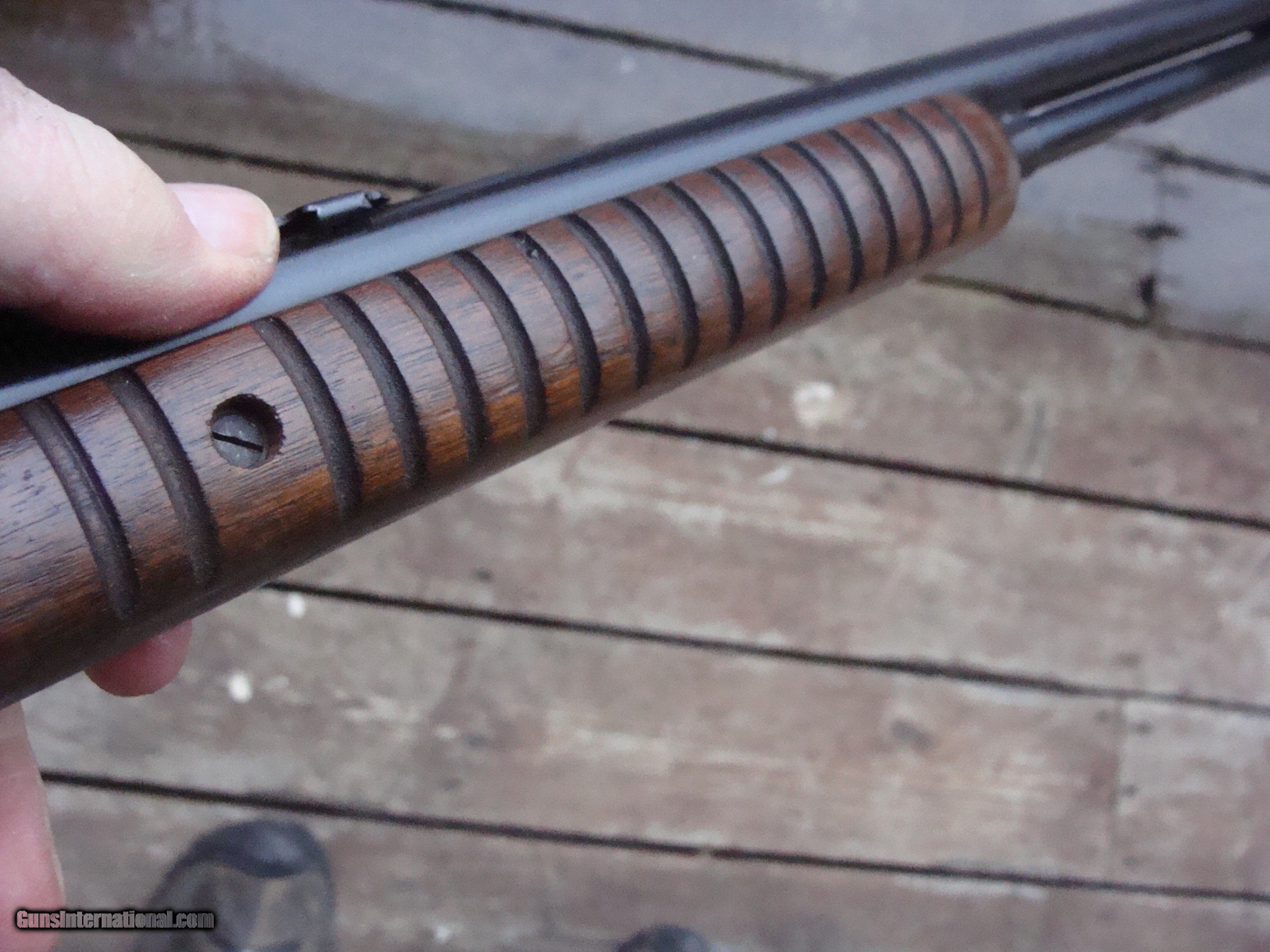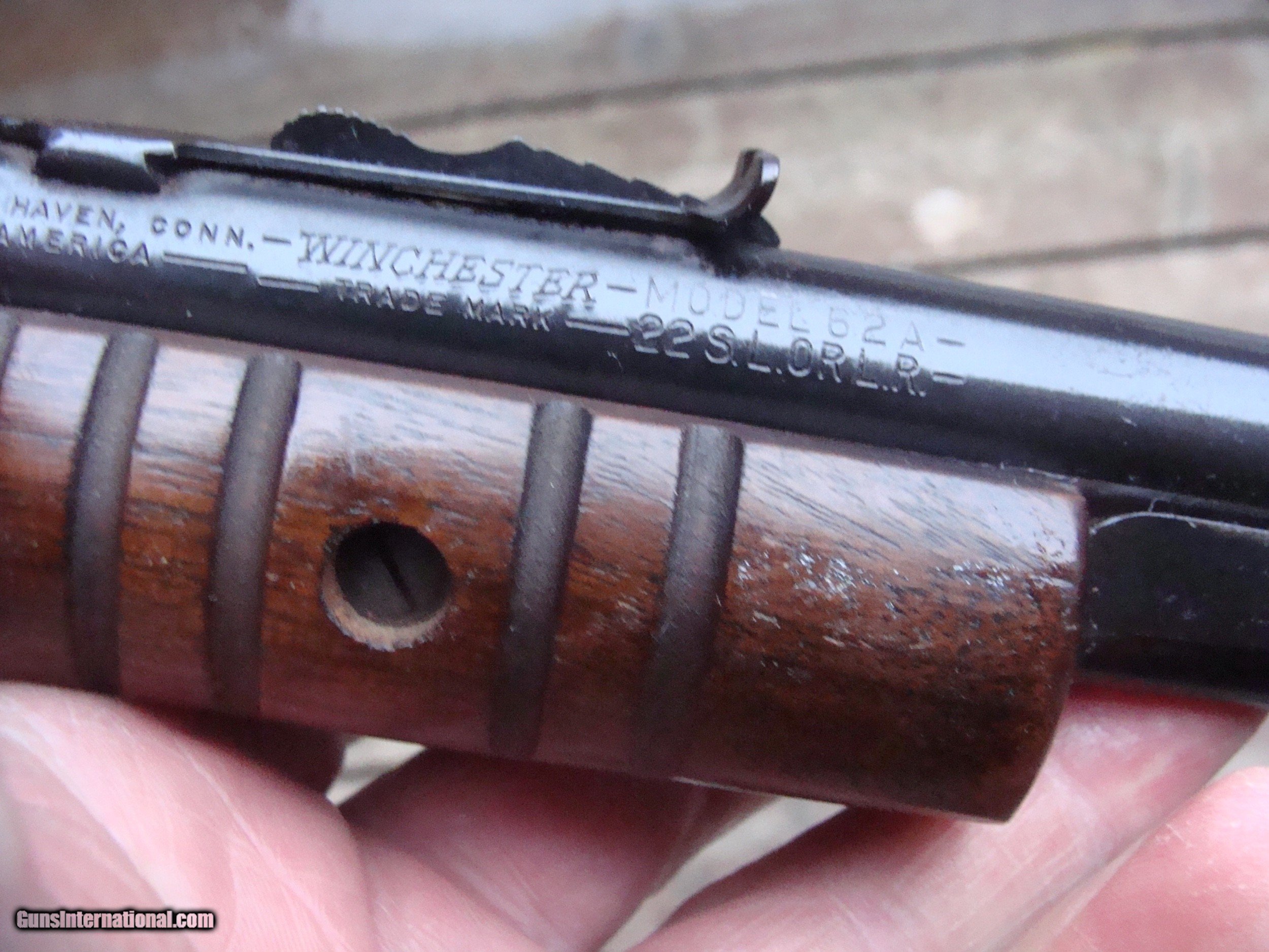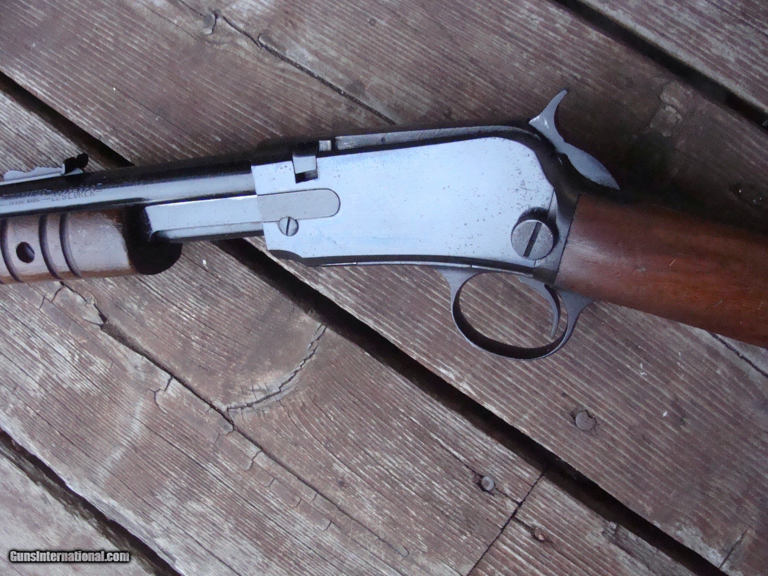Description: SALE PENDING JOE G. Nice looking 22 pump action tube fed repeater. Retains most blue and all of the original stock fisnish. No cracks , no splits and not reapirs. There is some light frosting on the receiver and a little loss of blue at 1:00 position near muzzle. No alterations and no non factory holes or otehr Nice little pump gun at a bargain price. This gun does not seem to have been used much at all Made in 1957 at a time when there were real workers and craftsmen at the old Wimcheter Plant in New Haven Ct Shipping $ 50.00 (more to ak and hi) PLEASE READ EVERYTHING BELOW IN BOLD: IF IT DOES NOT SAY NEXT TO THE PRICE..."SALE PENDING OR UNDER DEPOSIT"...IT IS AVAILABLE. WE DO NOT REPLY TO INQUIRIES THAT SAY "INTERESTED IN THIS GUN" OR "IS IT AVAILABLE" IF YOU WOULD LIKE TO BUY THIS OR ANY OF OUR GUNS WE SUGGEST YOU PHONE US; WE ARE OFTEN AVAIALABLE LONG HOURS. IF YOU ARE INTERSTED IN A GUN THAT IS UNDER DEPOSIT AND WOULD LIKE TO BE NOTIFIED IF A SIMILAR GUN COMES IN DROP US A LINE AND WE WILL MAKE EFFORTS TO CONTACT YOU WHEN ONE DOES COME IN. WE HAVE OVER 2000 SALES ON ALL SITES WITH AN A+ RATING ON ALL WE ALSO KEEP AN INVENTORY OF OLDER PERIOD CORRECT SCOPES; CALL WITH NEEDS WE MOSTLY PICK VERY CLEAN AND LIGHLTY USED GUNS. WE ARE HAPPY TO TAKE CONSIGNMENT GUNS AND COLLECTIONS OR WILL BUY YOURS OUTRIGHT. WE SOMETIMES ARE EMPLOYED FOR ESTATE PURPOSES AND VALUATIONS. CT RESIDENTS MUST CONTACT US TO UNDERSTAND OUR IN STATE TRANSFER POLICIES. PAYMENT USPS MONEY ORDER ONLY AT THIS TIME. ( WE CAN TAKE A DEPOSIT WITH A CARD BUT THE GUN MUST BE PAID WITH A USPS MONEY ORDER) IT IS THE BUYERS RESPONSIBILITY TO GET US A COPY OF YOUR RECEIVING FFL'S LIC AND A COPY OF YOUR PHOTO ID BEFORE THE GUN SHIPS YOU MUST CALL YOUR FFL.WE DO NOT CALL FOR YOU. LAYAWAY PURCHASES NOT COMPLETED OR ANY RETURNED ITEM UNLESS NOT AS DESCRIBED OR DAMAGED ARE SUBJECT TO A 10% RELISTING/RESTOCKING FEE AND MUST BE RETURNED WITH NO NEW MARKS OR SCRATCHES, SENT BACK INSURED, PRIORITY SIGNATURE REQUIRED. ALL INFORMATION CONTAINED HEREIN IS BELIEVED TO BE ACCURATE BUT IS NOT GUARANTEED. WITH ANY OLDER OR USED GUN IT SHOULD BE EXAMINED BY A GUNSMITH OR COMPETENT EXPERT PRIOR TO USE) SOLD |