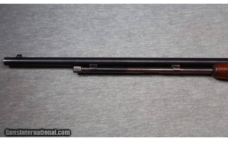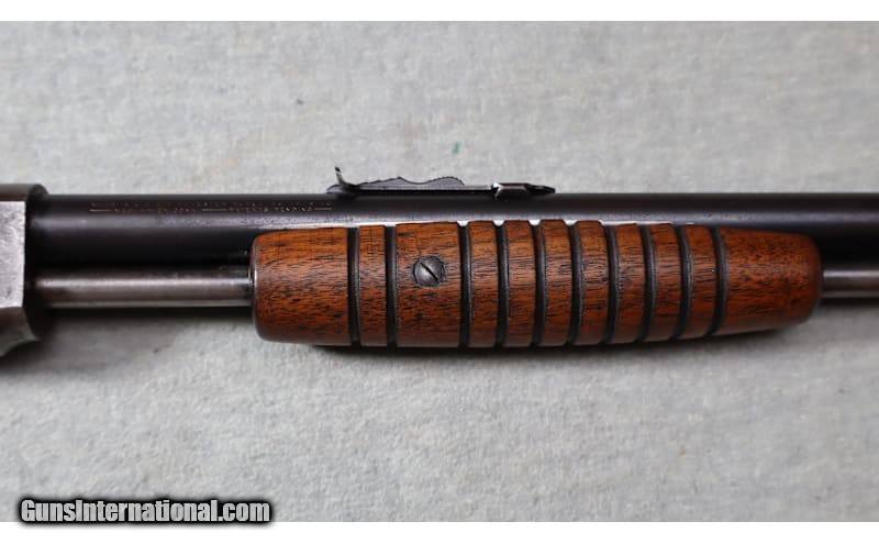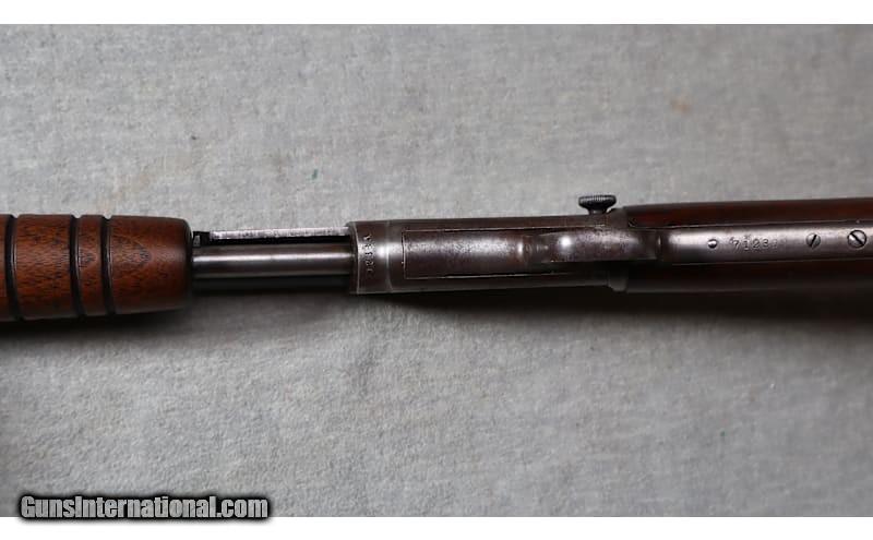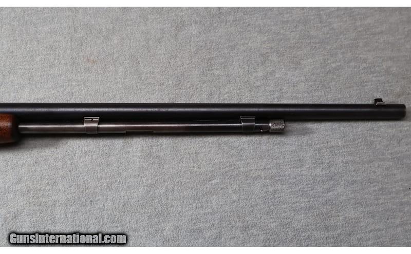 Description: The Winchester Model 62 is a slide-action repeating rifle produced by the Winchester Repeating Arms Company in the early 20th century. They remained in production until 1958. This example dates to 1937. Accepts the .22 loads (short, long, and long rifle). Tube feed. Finish is good with rifle showing normal wear for it's age. .22 Short/Long/Long Rifle SOLD Metal Condition: good Wood Condition: good Bore Condition: bright Barrels: 23" barrel Stock Dimensions: 13.5 Fore End: wood Butt Pad: plastic Weight: 5 lb - 6 oz Sights: factory sights Item Location: La Vista, NE |