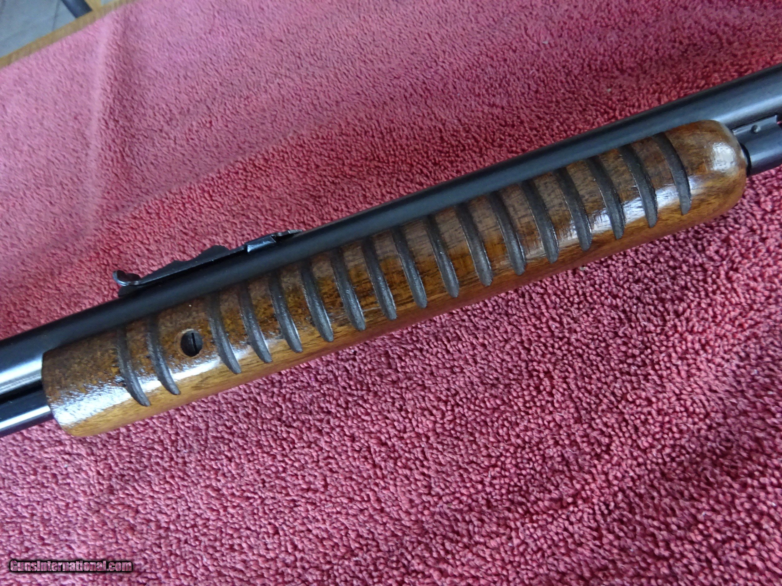 Description: WINCHESTER MODEL 62-A, 22 S, L OR LR, 23" BARREL, 99% BRIGHT BLUE, MIRROR PERFECT BORE. FRAME AND TRIGGERGUARD EXCELLENT BRIGHT BLUE, ONLY WEAR IS FROM THE MOVEMENT OF THE SLIDE. EXCELLENT WOOD AND VARNISH, PERFECT BUTTPLATE. NICE 100% ORIGINAL GUN MADE IN 1958. $1275.00 + $45.00 Insured shipping to an FFL address. See all Pats listings We also have hundreds of pieces of ORIGINAL gun company advertising & memorabilia available for sale. We have no reprints or reproductions. Email for more information. SOLD Curio/Relic: Yes |