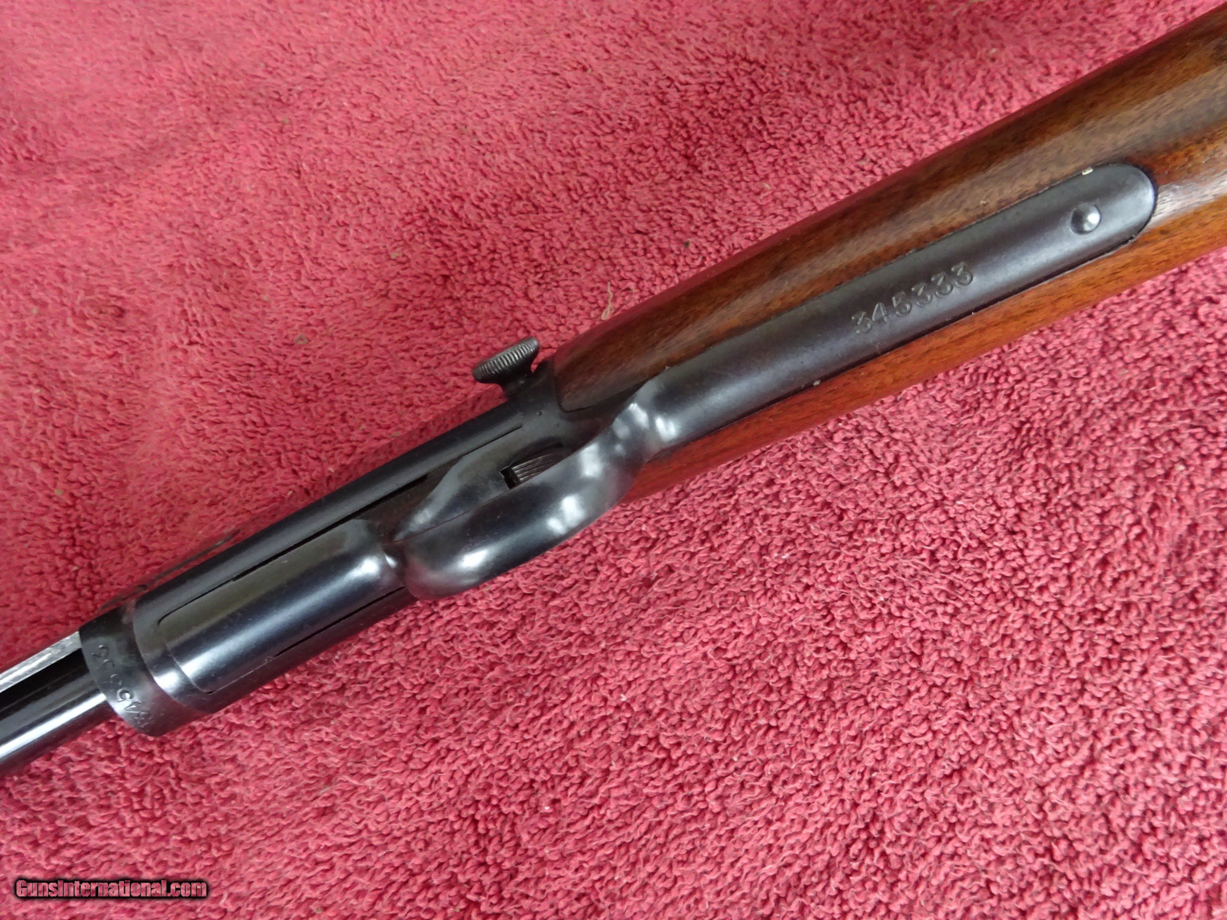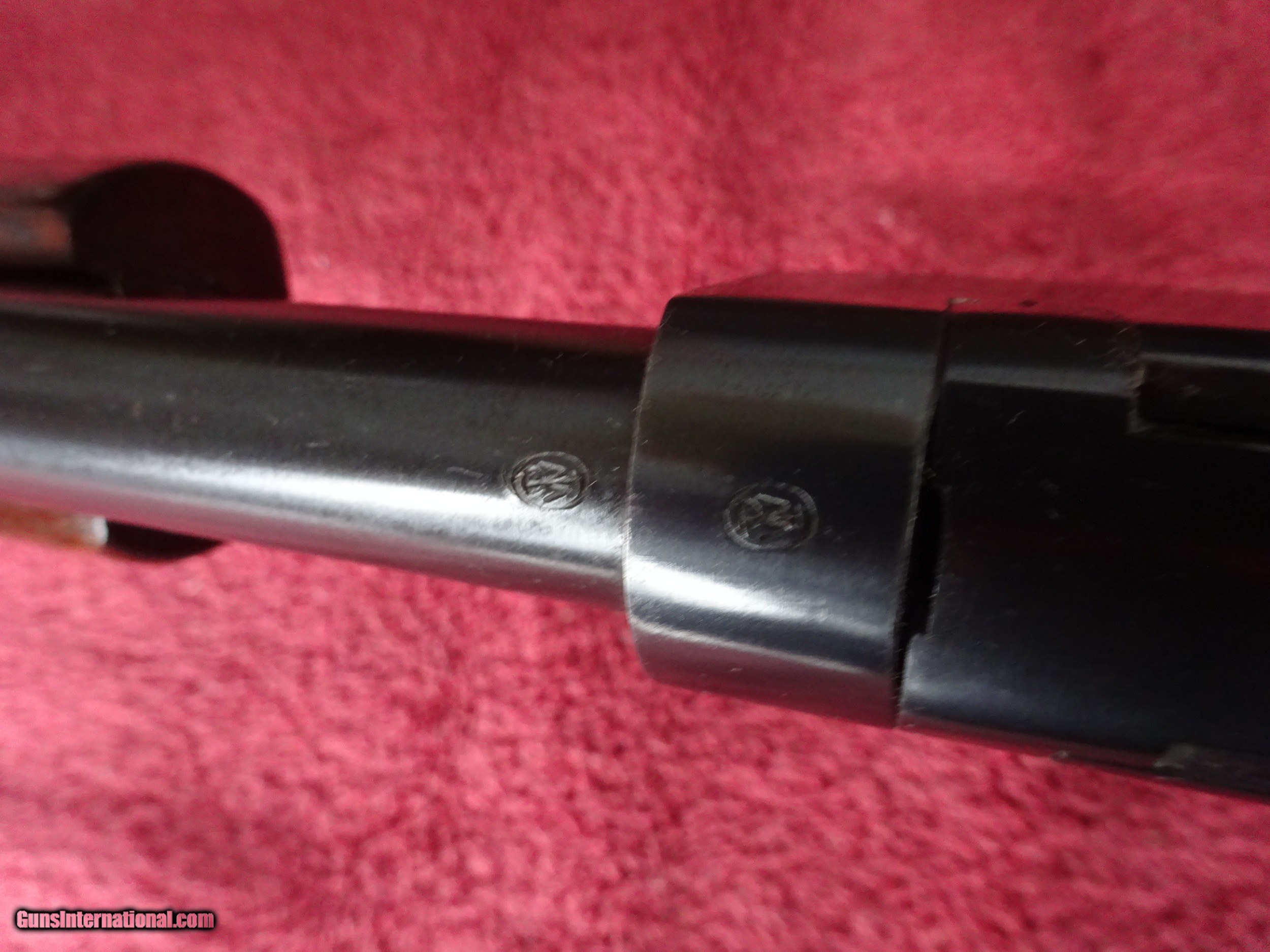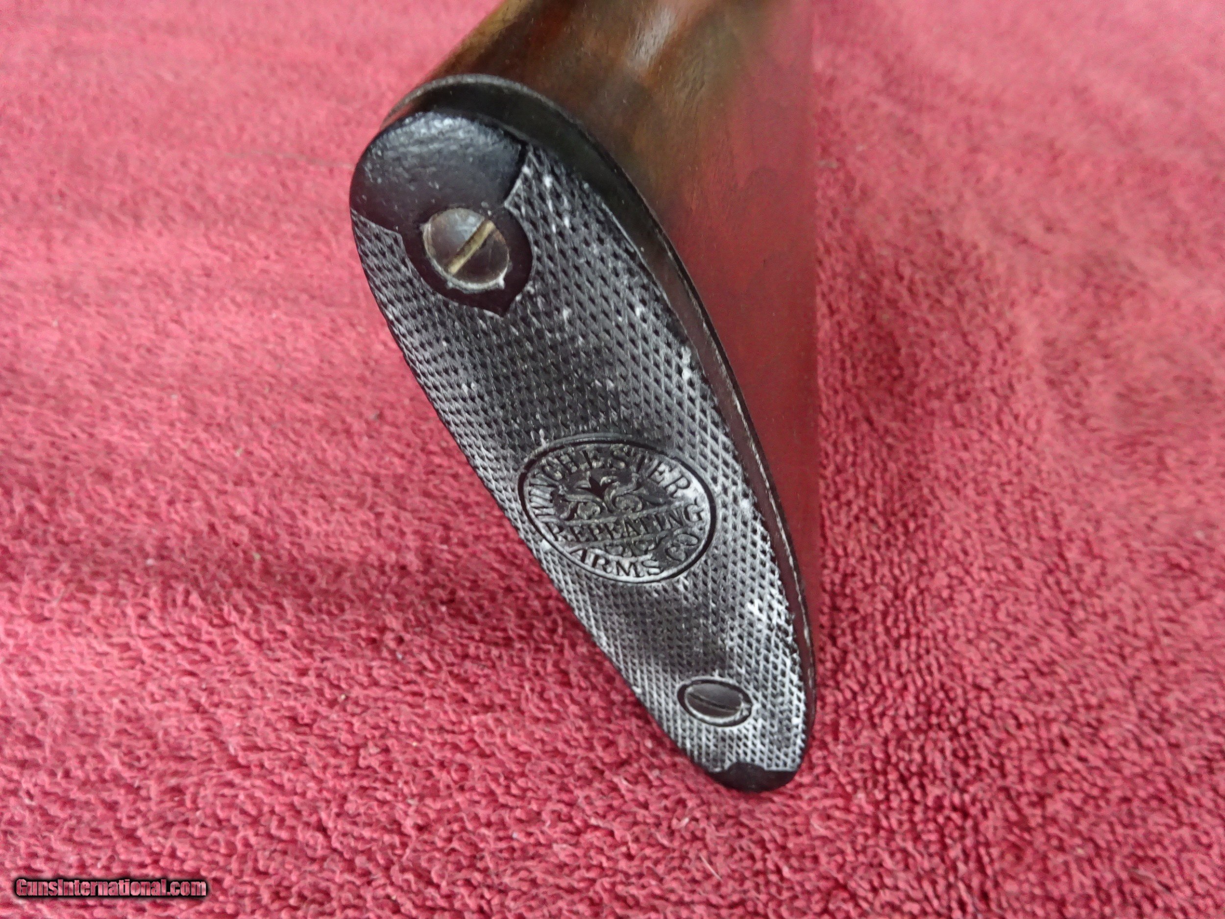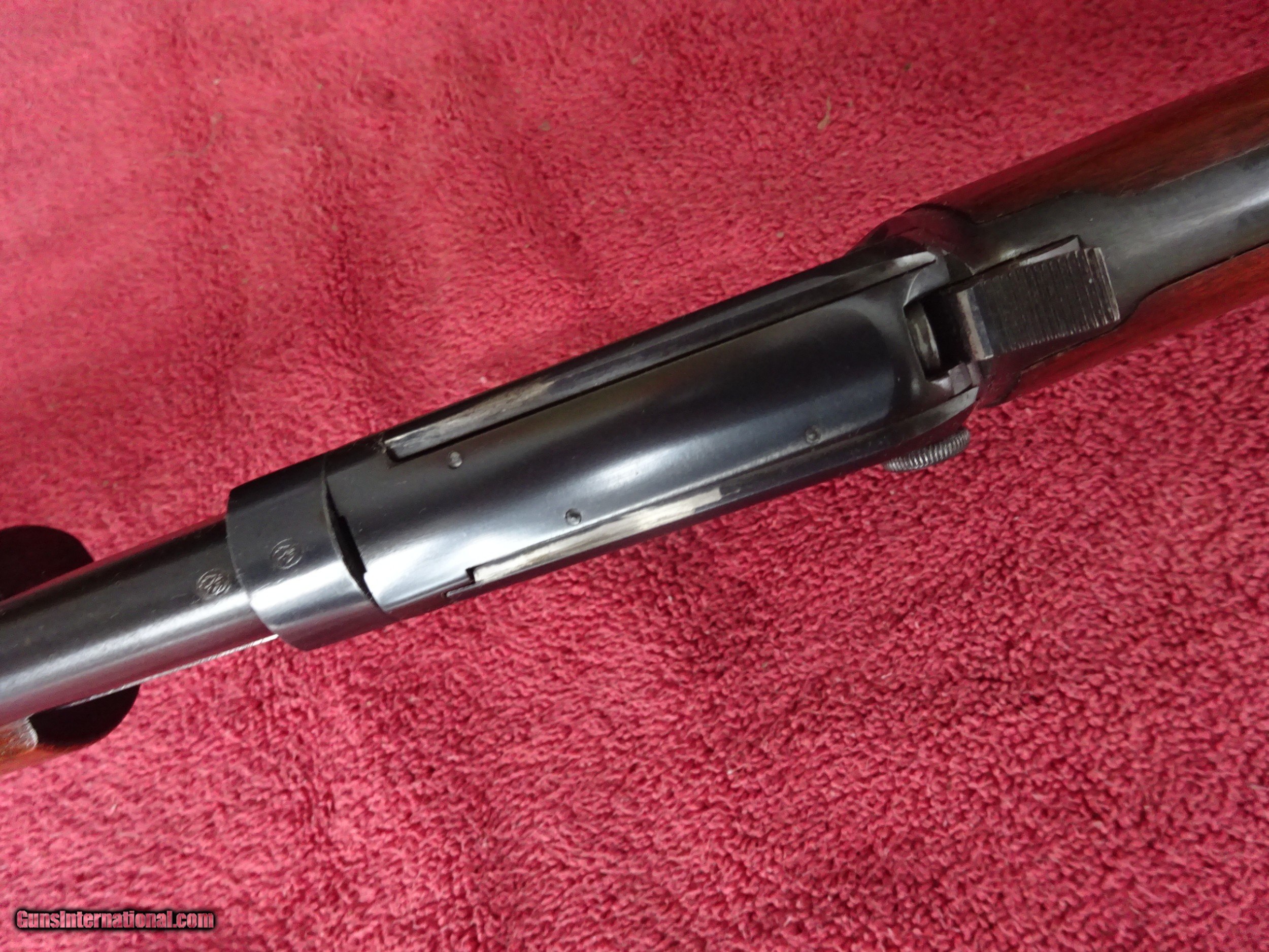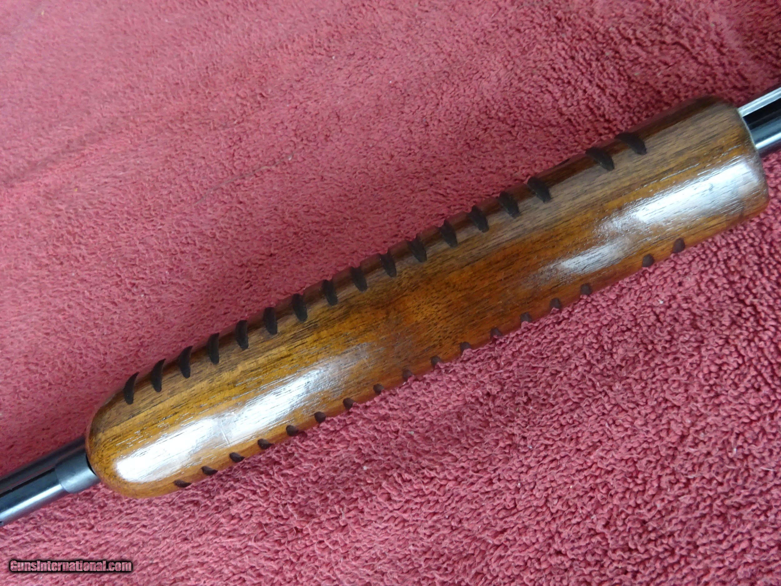 Description: WINCHESTER MODEL 62-A, 22 S.L. OR LR., 23" ROUND BARREL, EXCELLENT BLUE, MIRROR PERFECT BORE, FIXED FRONT SIGHT, STEP ADJUSTABLE REAR SIGHT. FRAME AND TRIGGERGUARD HAVE MOST ALL THE ORIGINAL BRIGHT BLUE, ONLY WEAR IS FROM THE MOVEMENT OF THE SLIDE. THERE IS NO WEAR ON THE SIDES OF THE GUN. WHAT YOU SEE IS GLARE FROM THE WINDOW. STRAIGHT GRIP WALNUT, RIBBED FOREARM, EXCELLENT WOOD WITH ONLY VERY MINOR RUBS IN THE FINISH. PERFECT WINCHESTER MARKED COMPOSITION BUTTPLATE. MADE IN 1956. 100% ORIGINAL CONDITION. $1175.00 + $60.00 Insured shipping to an FFL address. Layaway is available. See all Pats gun listings on this site! We also have hundreds of pieces of ORIGINAL gun company advertising & memorabilia available for sale on our site SPORTINGCOLLECTIBLES. We have no reprints or reproductions. Email for more information. SOLD Curio/Relic: Yes |