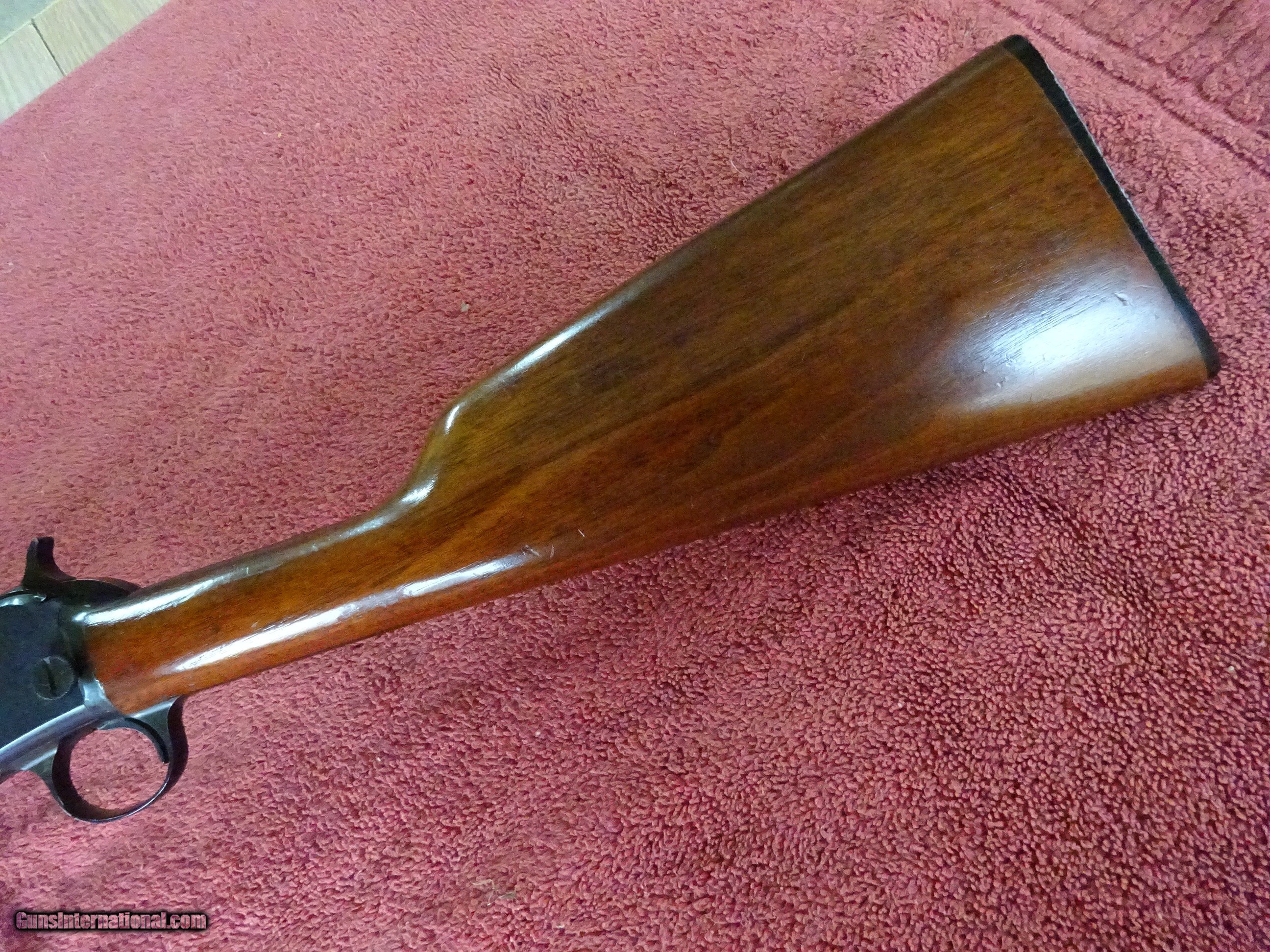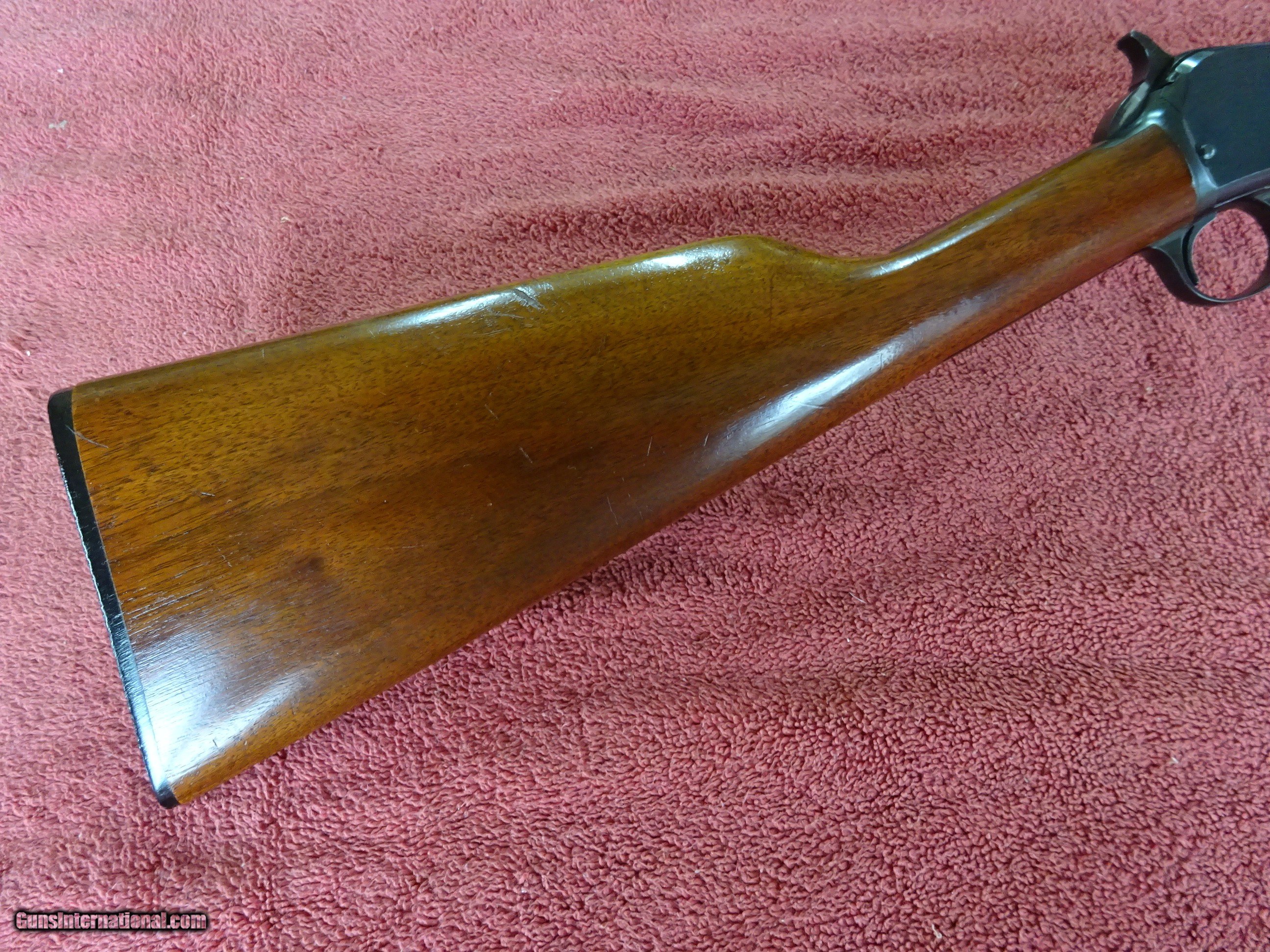 Description: WINCHESTER MODEL 62-A, 22 S. L. OR L.R., 23" BARREL. 99% BRIGHT BLUE, MIRROR PERFECT BORE, FIXED FRONT SIGHT, STEP ADJUSTABLE REAR SIGHT. FRAME AND TRIGGERGUARD HAVE NO EDGE WEAR. STRAIGHT GRIP STOCK, RIBBED FOREARM, EXCELLENT WOOD WITH MINOR HANDLING MARKS IN THE VARNISH. PERFECT WINCHESTER MARKED COMPOSITION BUTTPLATE. MADE IN 1957, 100% ORIGINAL CONDITION. NICE GUN. $1275.00 + $70.00 Insured shipping to an FFL address. Layaway is available. See all Pats gun listings on this site! We also have hundreds of ORIGINAL gun company advertising & memorabilia pieces available for sale on our site SPORTINGCOLLECTIBLES. We have no reprints or reproductions. Email for more information. If you need to call, morning or evening is best, and please note the Seller's Inventory number. SOLD Curio/Relic: Yes |