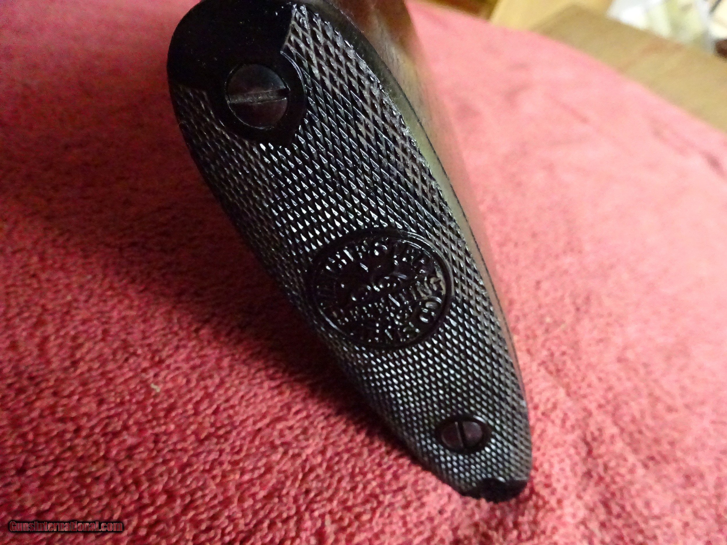 Description: WINCHESTER MODEL 62-A, 22 S.L.OR LR. 23" ROUND BARREL, MIRROR PERFECT BORE, 99% OVERALL BLUE, NO EDGE WEAR. STRAIGHT GRIP STOCK, RIBBED FOREARM, NEAR PERFECT WOOD FINISH WITH ONLY VERY MINOR HANDLING MARKS. PERFECT COMPOSITION WINCHESTER MARKED BUTTPLATE. MADE IN 1949, 100% ORIGINAL CONDITION. HARD TO FIND A NICER EXAMPLE. $1275.00 + $60.00 Insured shipping to an FFL address. Layaway is available. See all Pats gun listings on this site! We also have hundreds of pieces of ORIGINAL gun company advertising & memorabilia available for sale on our site SPORTINGCOLLECTIBLES. We have no reprints or reproductions. Email for more information. SOLD Curio/Relic: Yes |