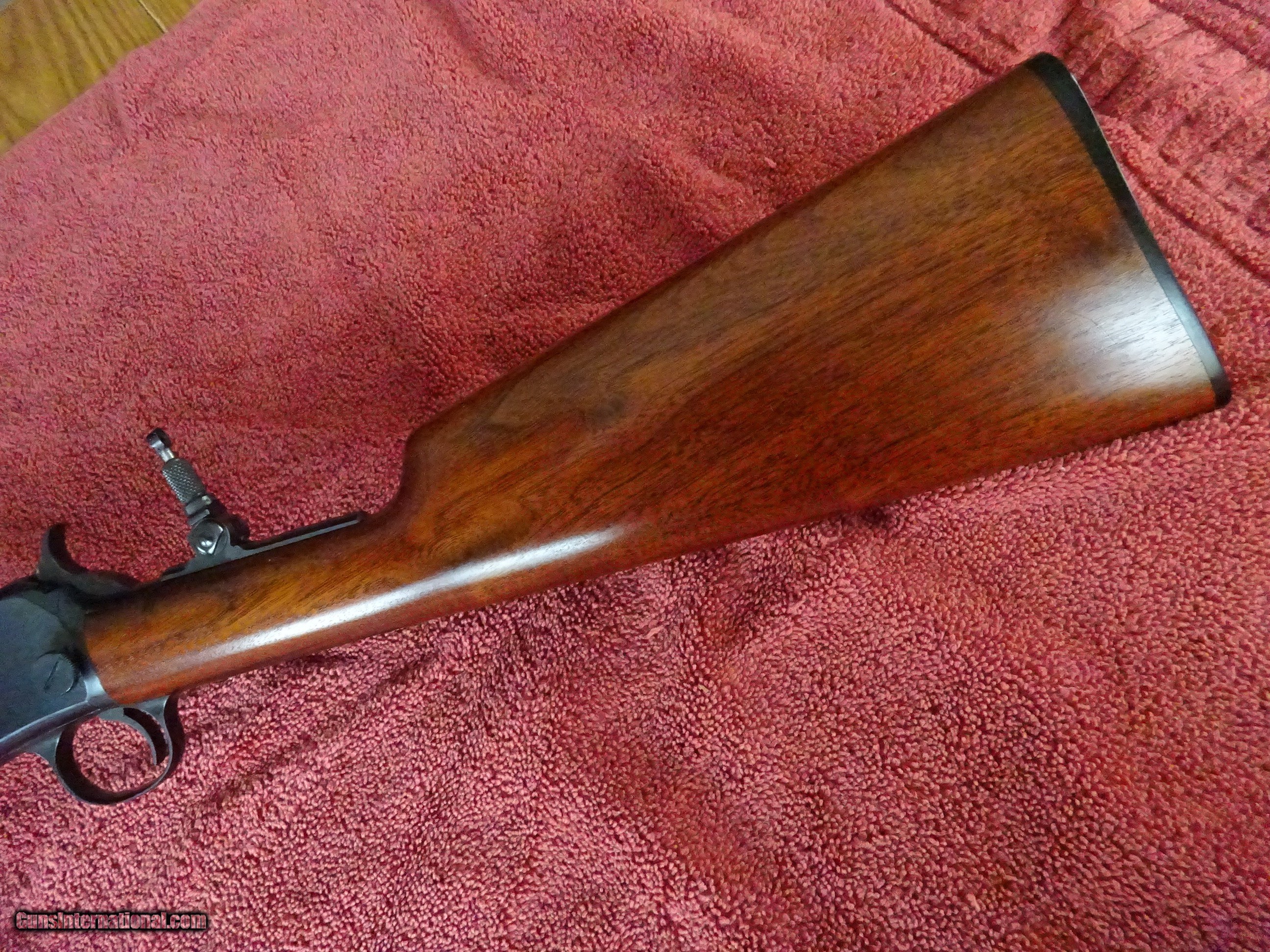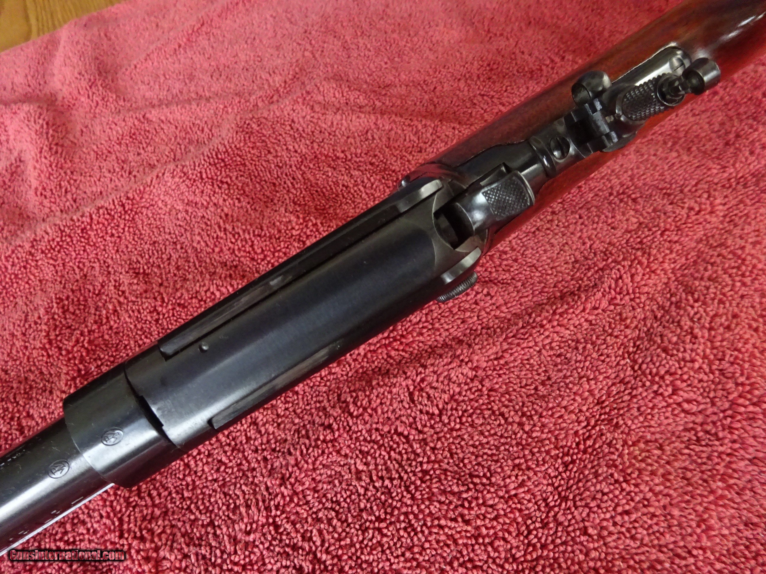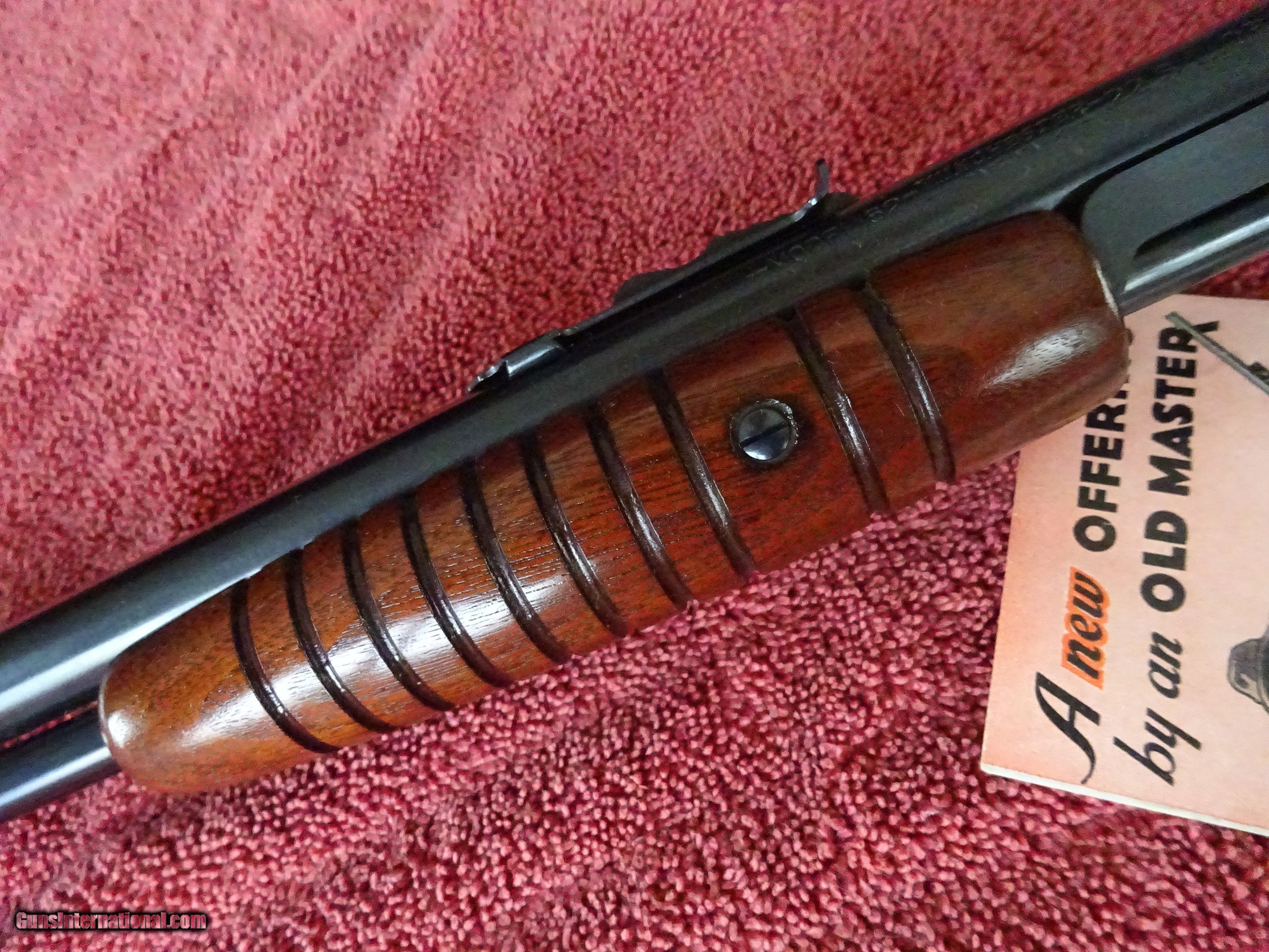 Description: WINCHESTER MODEL 62, 22 S. L. OR L.R., 23" BARREL. FIXED FRONT SIGHT, STEP ADJUSTABLE REAR SIGHT, LYMAN TANG SIGHT, MIRROR PERFECT BORE. STRAIGHT GRIP STOCK, SMALL RIBBED FOREARM, WINCHESTER MARKED COMPOSITION BUTTPLATE. MADE IN 1936. INCLUDES AN ORIGINAL 6-PAGE PHAMPLET INTRODUCING THE GUN. 100% ORIGINAL FINISH ON BOTH THE METAL AND WOOD SURFACES. THE FINEST ORIGINAL CONDITION, PRE-WAR WINCHESTER MODEL 62 I'VE EVER SEEN. $2250.00 + $70.00 Insured shipping to an FFL address. Layaway is available. See all Pats gun listings on this site! We also have hundreds of ORIGINAL gun company advertising & memorabilia pieces available for sale on our site SPORTINGCOLLECTIBLES. We have no reprints or reproductions. Email for more information. If you need to call, morning or evening is best, and please note the Seller's Inventory number. SOLD Curio/Relic: Yes |