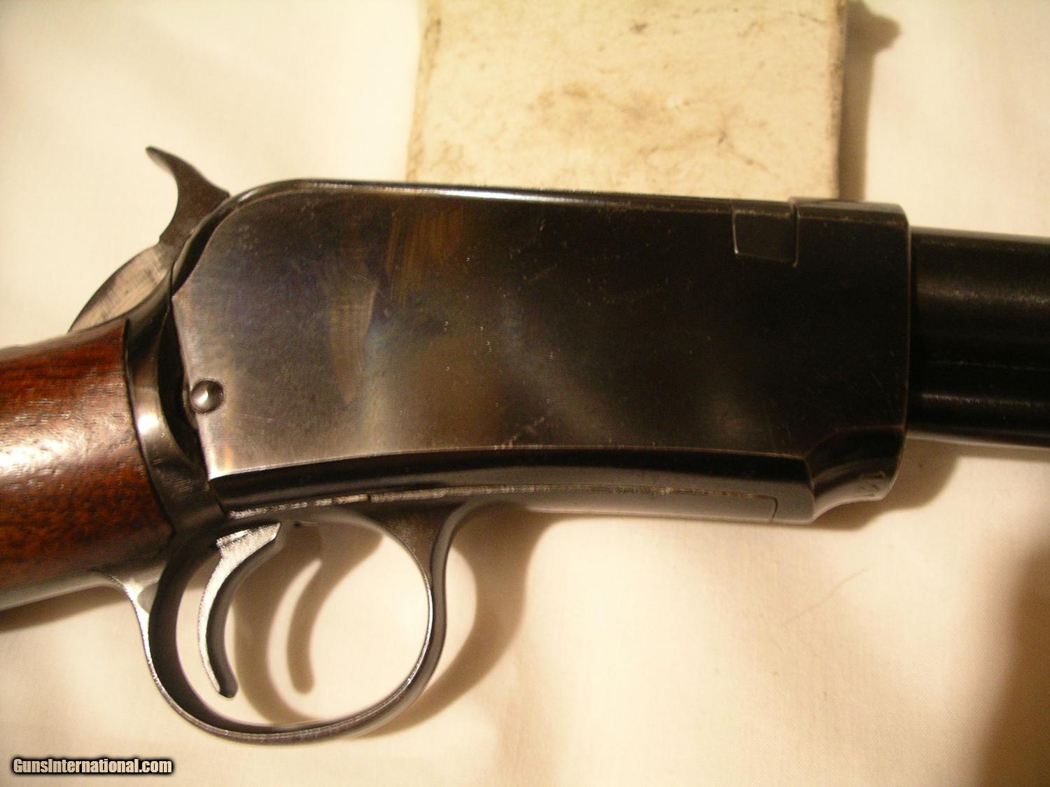 Description: 62A take down,99% bright blue,mirror bore,near perfect wood and varnish.Right side of stock has a very small amount of what looks like paint over spray.$25.00 shipping. SOLD |