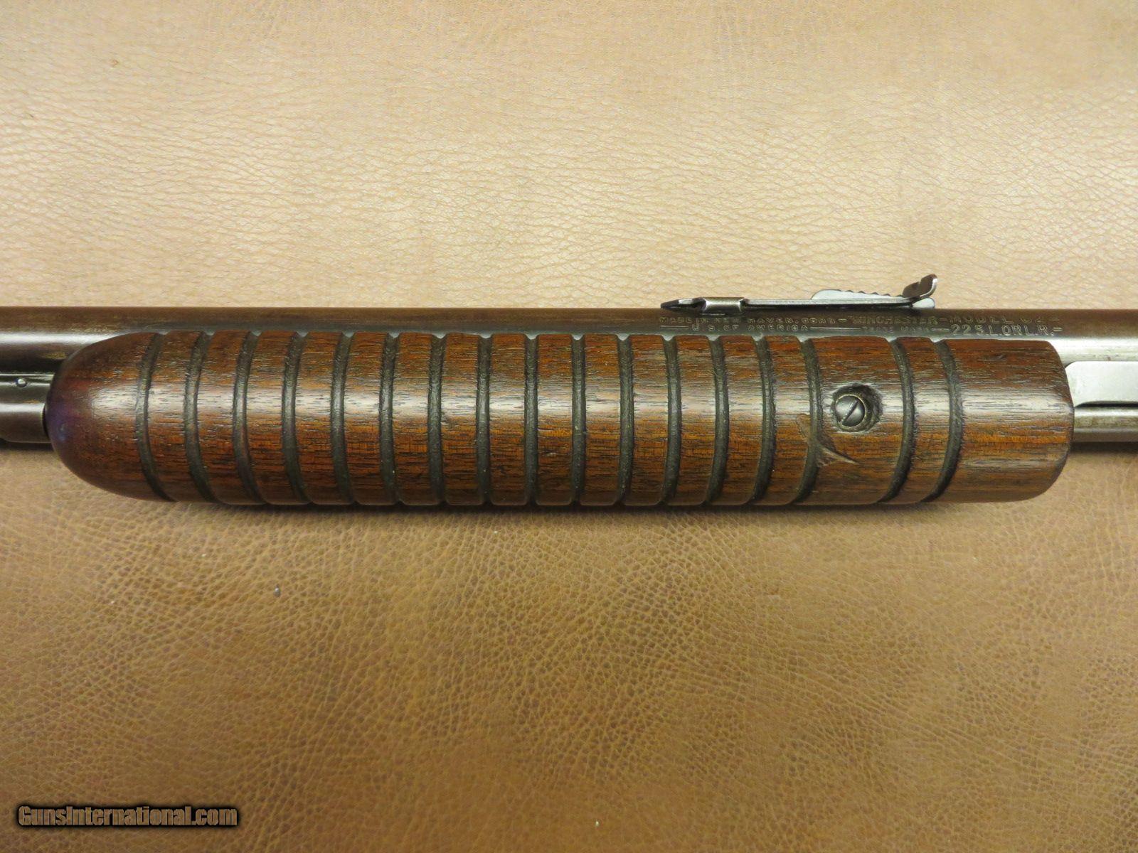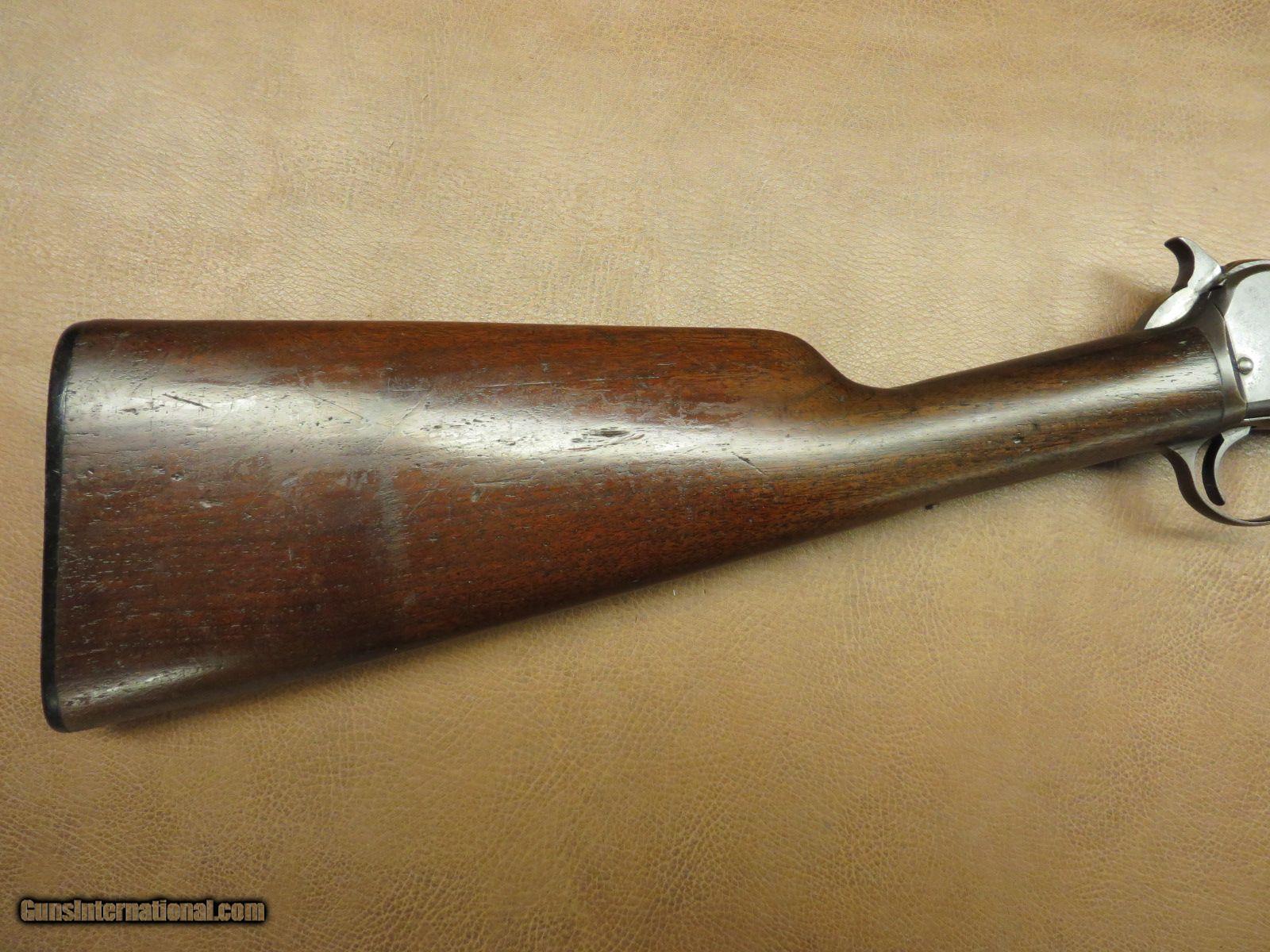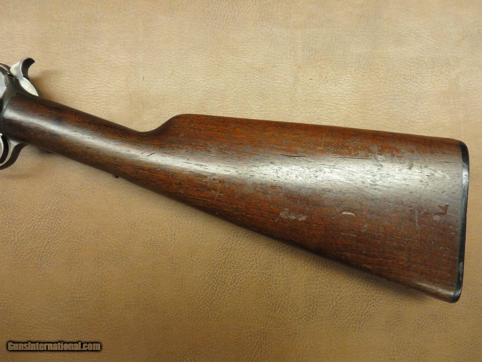 Description: .22 S.L.L.R. has 23 inch barrel with original sights. Matching serial numbers 185xxx. Non checkered walnut with original butt plate. Blue turning brown but not pitted. Forend finish is 90% and the stock is 75%. SOLD |