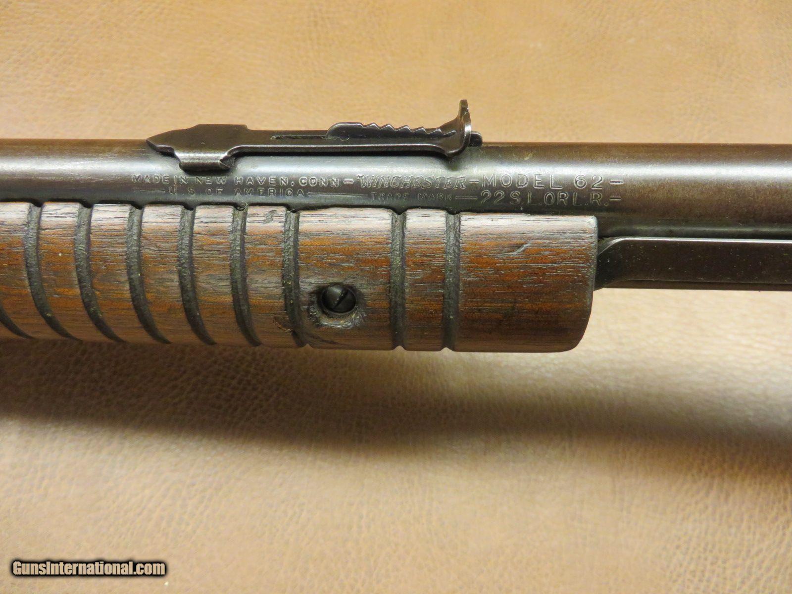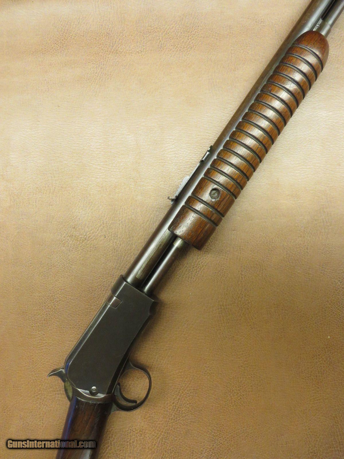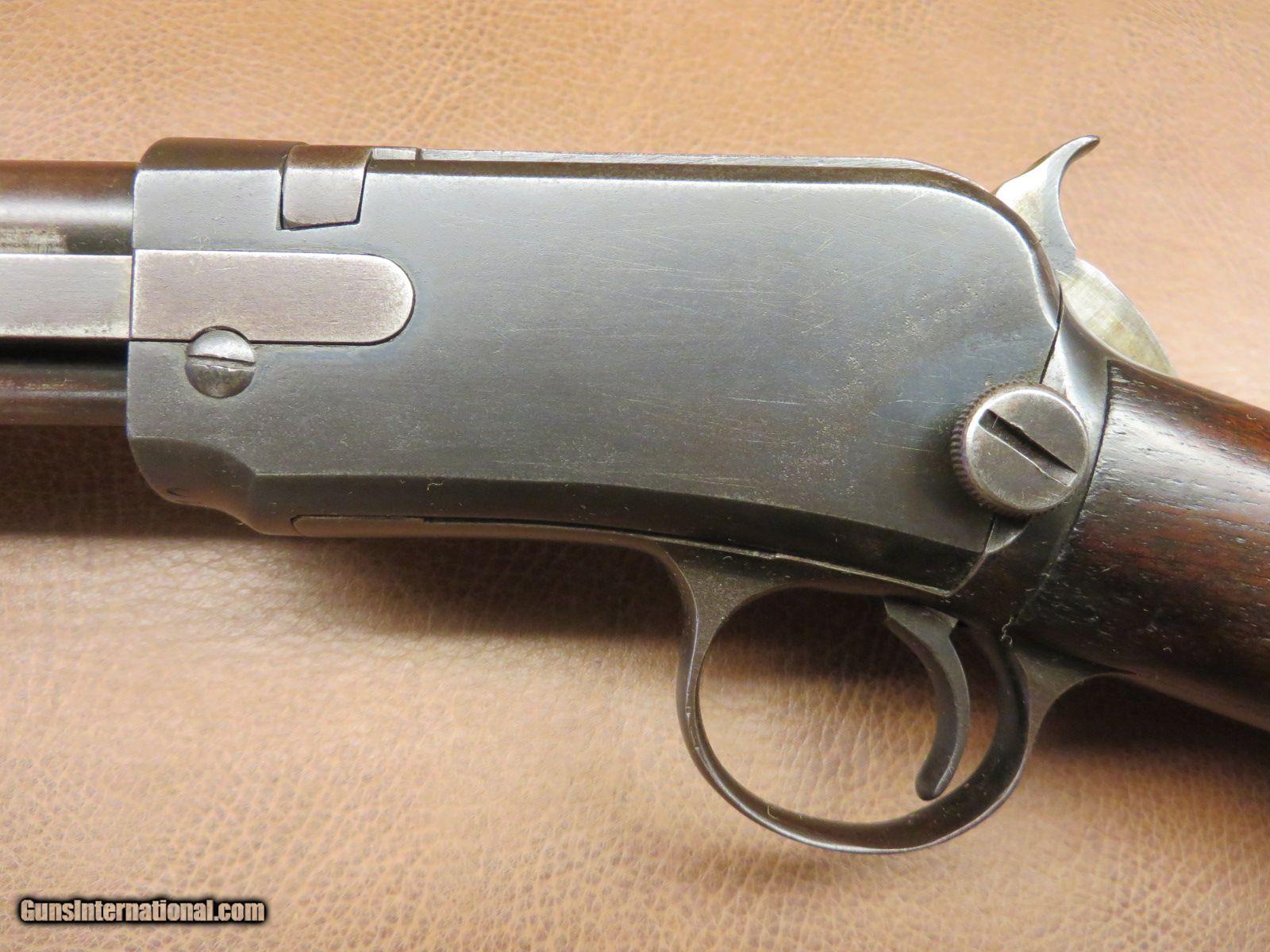 Description: .22 S.L.L.R. has 23 inch barrel with original sights. Matching serial numbers 185xxx. Non checkered walnut with original butt plate. Blue turning brown but not pitted. Forend finish is 90% and the stock is 75%. SOLD |