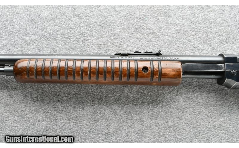 Description: Made in 1954 .22 Short/Long/Long Rifle SOLD Chambers: ".22 Short, Long or Long Rifle Metal Condition: Very good Wood Condition: "Very good, buttstock is a replacement Bore Condition: Very good Barrels: 23 Triggers: Factory Stock Dimensions: 13" LOP Fore End: Ribbed walnut slider Butt Pad: Serrated composite non-original Weight: 5 Lbs. 6 Oz. Item Location: Grand Junction, CO |
