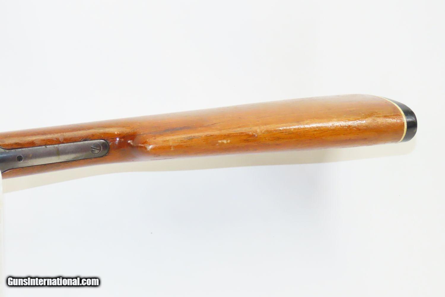 Description: WINCHESTER Model 62A Slide Action .22 Caliber Rimfire C&R TAKEDOWN RIFLE Next Generation of Pump Actions After the Model 1890! Here we present a World War II Era C&R Winchester Model 62A Slide Action Rifle manufactured in 1942 in New Haven, Connecticut and chambered .22 caliber rimfire. With its roots dating back to the 1890s, the Model 62 is considered the best in a long line of .22 caliber pump action rifles. These handy little guns taught many a young shooter how to use a rifle and proved to be the weapon of choice to plink tin cans or spin the pinwheels at carnival shooting galleries on a warm summer day. This little rifle was basically just an upgrade to the Model 1890 designed by John Moses Browning that came out 72 years earlier in which 1.6 million had been made by 1932. Unlike the 1890, this gun was made to shoot .22 short, long, and long rifle cartridges. The Model 62A was also designed as a “Takedown” rifle. An oversized screw on the rear of the receiver, when removed, allowed the gun to break apart into two pieces for cleaning, storage, and transport. The Model 62 evolved into the 62A in the late 1930s. These guns were durable and well liked. However, they didn’t have the commercial success that its predecessor did. This is largely in part because the new semi-auto rimfires rifles were similarly priced, and competitors like Colt had gathered a good bit of the market. Overall, just 409,000 Model 62s were made before Winchester pulled the plug of the handy little guns in 1959. The overall condition is good. Original blue. Strong, smooth action. The bore is bright and sharply rifled. Solid stock (contains a small repair to the wrist on the left side at the frame). Numbers match. This firearm is classified as a Curio and Relic. Barrel: 23 inches Caliber: .22 S, L, LR Rimfire Overall condition as seen in photos. Very Fast. Very Safe. FREE SHIPPING. Will need to be sent to your local FFL. This firearm is classified as a Curio and Relic. Guaranteed AUTHENTIC & Includes CERTIFICATE OF AUTHENTICITY. ancestryguns $1350 #215205 SOLD Curio/Relic: Yes |