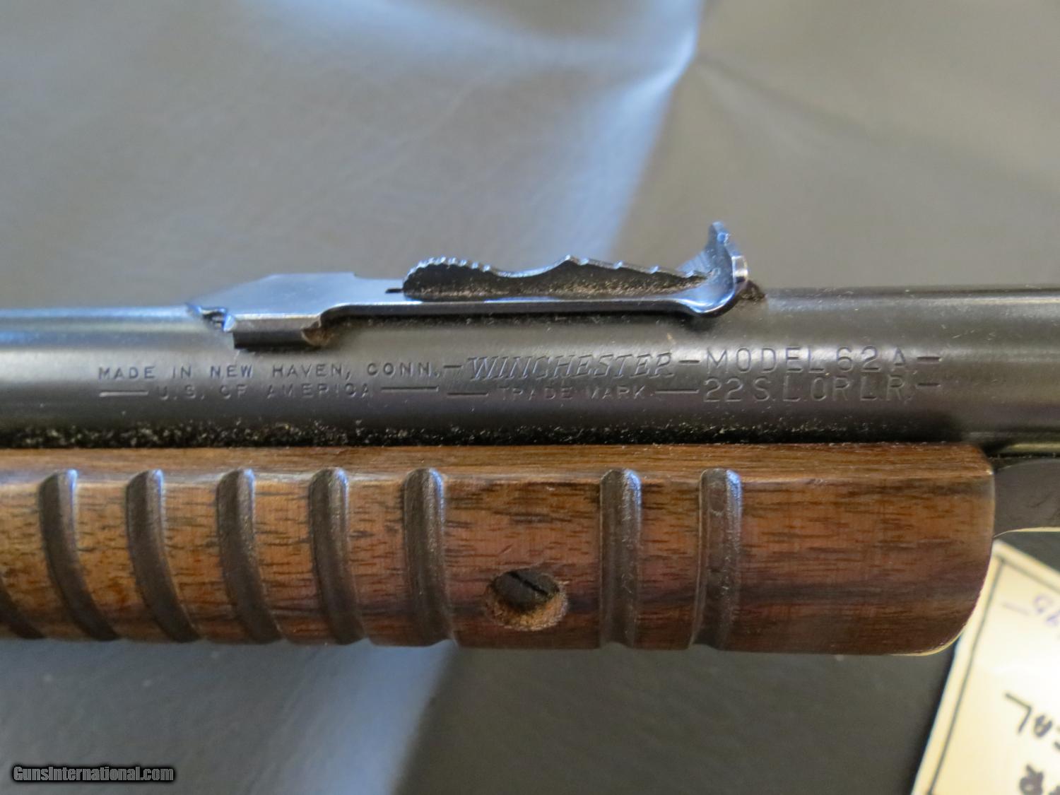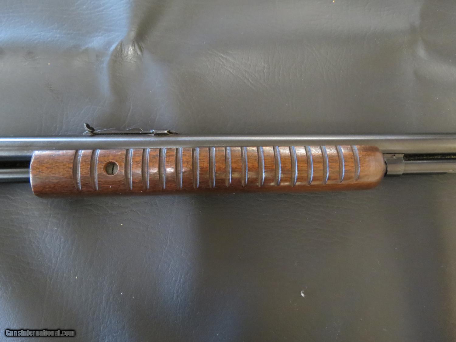 Description: This is a 1958 Winchester model 62A in what would be mint condition if not for a very small repair on the butt stock at the grip, VERY light handling marks on the wood and one very small scratch on the left side of the receiver. Everything else about this gun is immaculate. SOLD Manufacturer: Winchester Model: 62A Serial Number: 402537 Caliber Info: .22 lr Bore: Very good Condition: Very Good Metal Condition: Excellent Wood Condition: Good Bore Condition: Very Good Action: Slide Manufacture Date: 1958 Item Location: Phoenix, Az. |