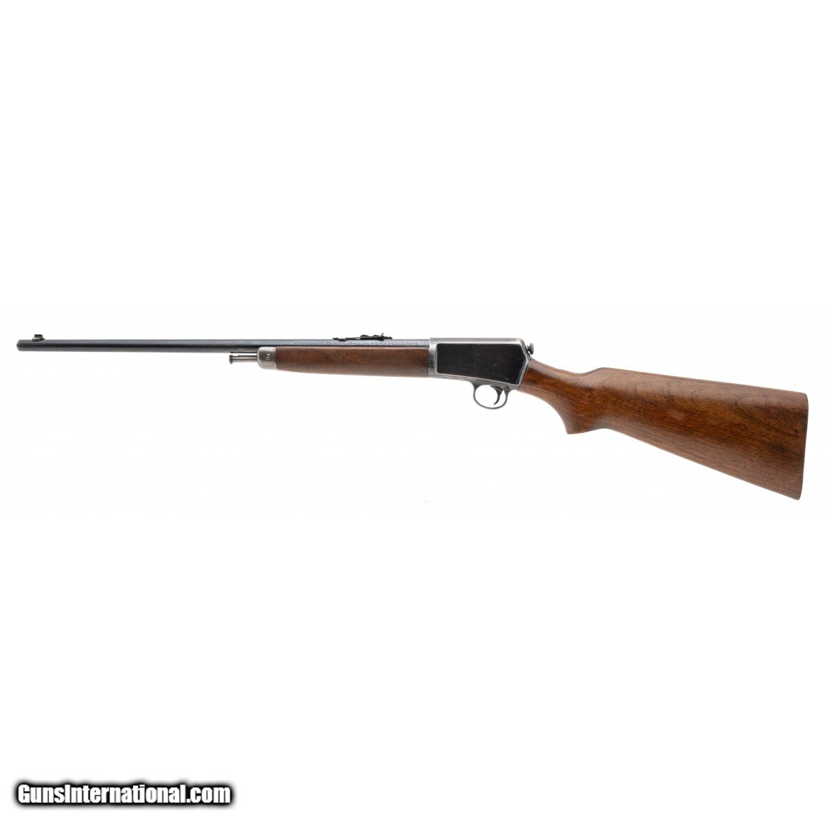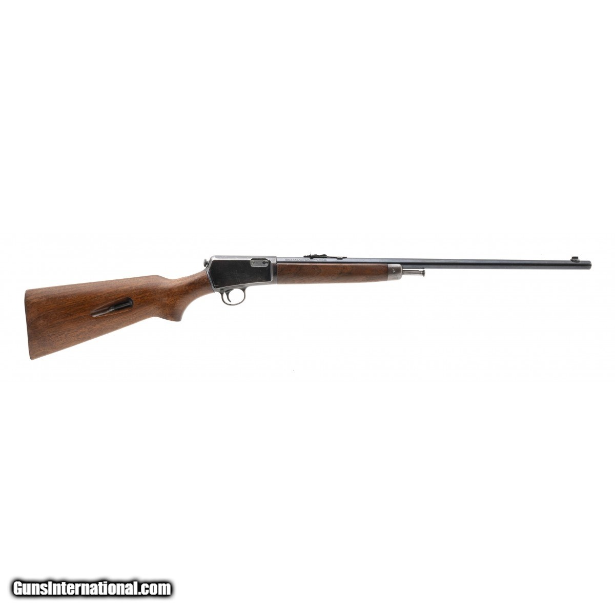 SN: 21019A. Made in 1937. .22LR with a 20"" barrel. Bore is shiny with strong rifling. Semi-auto .22 Winchester. Rifle retains approximately 85% of factory blue with the receiver beginning to transition to a brown patina. Stock is in excellent condition with minimal handling wear noted. Overall very good condition. Consignment