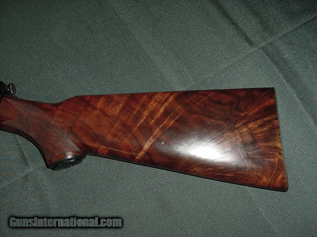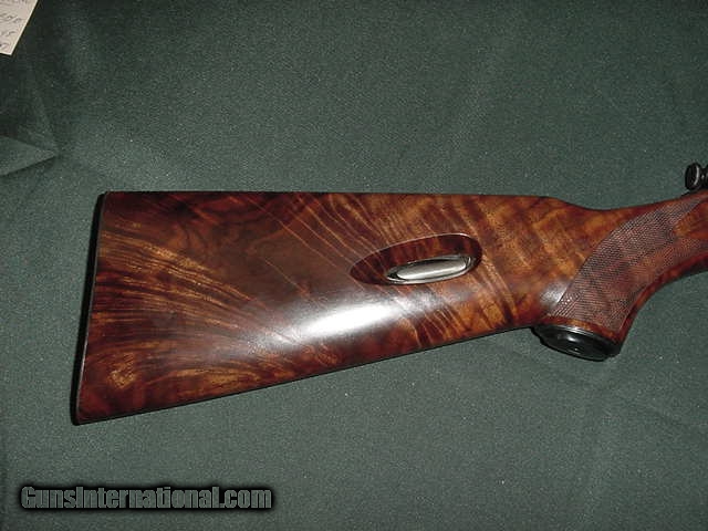 Description: 4816 Winchester Model 63 22 long rifle,"super speed and super X" on barrel, s/n 8334x, AAA++ EXHIBITION HIGH FIGURED WALNUT IN STOCKA AND FOREND. Mint condition,not a mark on it. checkered forend and wrist, none finer. don't miss this beauty HIGHLY FIGURED EXHIBITON WALNUT SOLD |