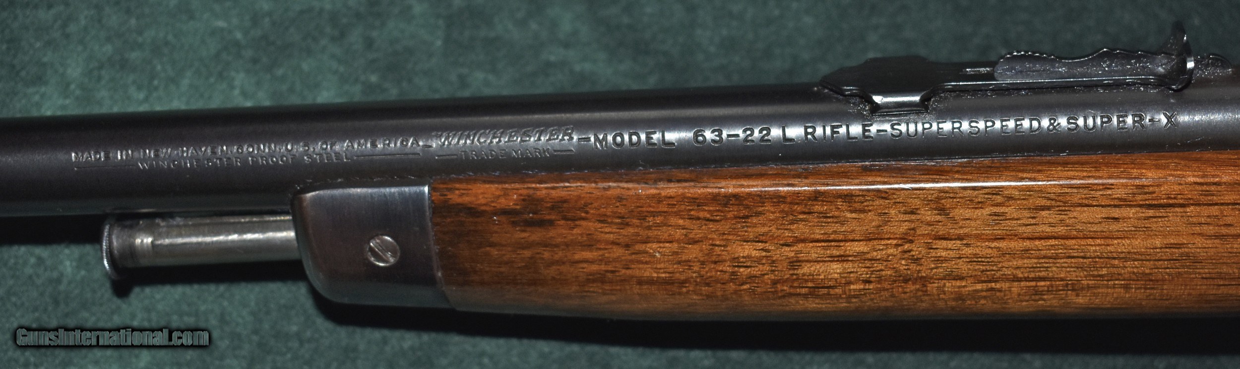 Description: Winchester model 63 22 long rifle semi auto in mint,like new condition.Built in 1951,this rifle retains 100% of the original blue and wood finish.It has a mint bore with sharp well defined rifling.All roll marks and inspectors stamps are sharp and crisp.The 23" barrel is marked "Super Speed Super-X".A classic Winchester 22 for the collector or shooter.C&R eligible. SOLD Curio/Relic: Yes Rifle Caliber: .22 Long Rifle Manufacturer: Winchester Model: 63 Serial Number: 97756 Barrel Length: 23 Condition: mint Metal Condition: mint Wood Condition: mint Bore Condition: mint Barrel Type: Winchester proof steel Action: semi auto Butt Pad: factory steel buttplate Sights: factory open sights Manufacture Date: 1951 |