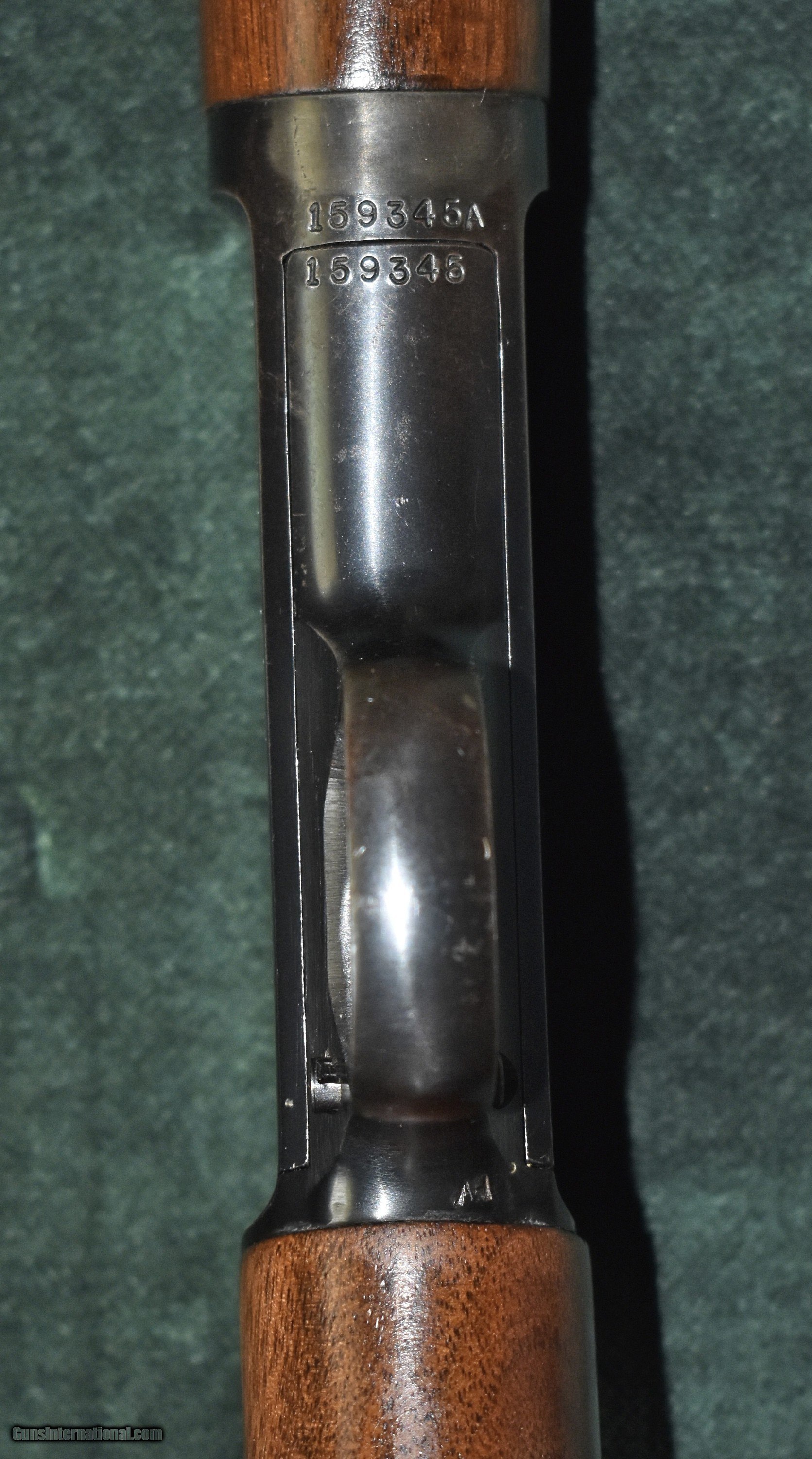 Description: Winchester model 63 built in 1957.This rifle is in mint all original condition.It retains 100% of the original blue and wood finish.All roll marks and inspectors stamps are sharp and crisp.The 23" barrel has a mint bore.The grooved top has never had a scope attached.This is a fine example of the model 63 in outstanding condition.C&R eligible. SOLD Curio/Relic: Yes Rifle Caliber: .22 Long Rifle Manufacturer: Winchester Model: 63 Serial Number: 159345 Barrel Length: 23 Condition: mint Metal Condition: mint Wood Condition: mint Bore Condition: mint Barrel Type: Winchester proof steel Action: semi auto Butt Pad: factory steel buttplate Manufacture Date: 1957 |