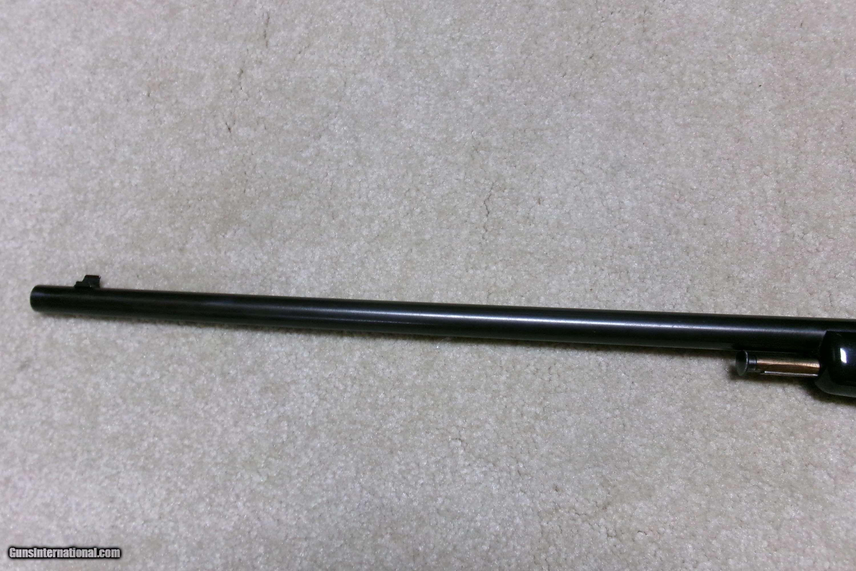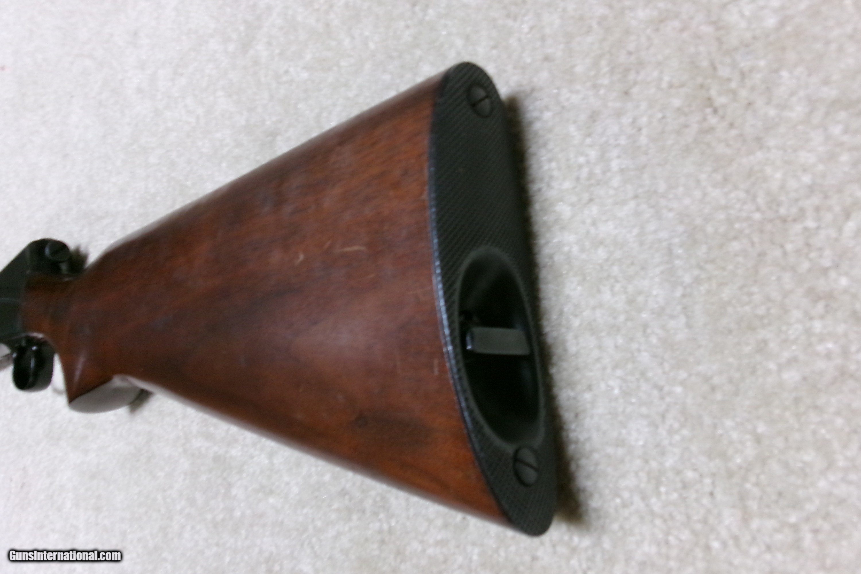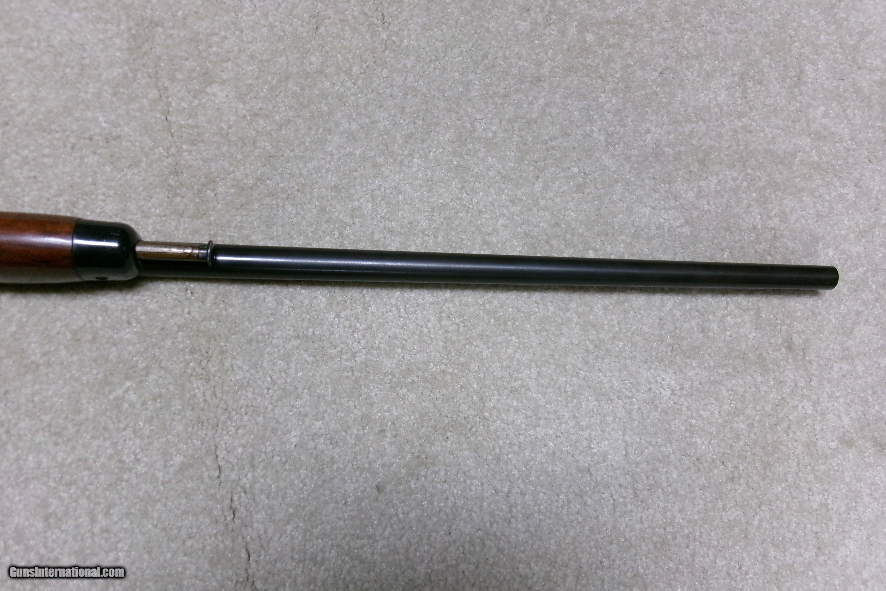 Description: MINTY CONDITION, RARE LATE MODEL 63 .22 LR WITH GROOVED RECEIVER TOP FOR SCOPE MOUNTING, #170XXX, MADE THE LAST YEAR OF PRODUCTION IN 1958. Only the last of these was made with the grooved receiver top and are very hard to find now. This one appears to have simply been in storage for decades. It still has some age-hardened packing grease on parts. When I got this one the operating rod was extremely stiff the first time I pushed it in as it was coated with this dried grease. It is still visible on the rod as well as on the bolt inside the side of the receiver. I didn't attempt to clean it. Overall retains about all the blue- even on the butt plate. Has the very late and scarce synthetic forend cap only used on the very last of production. Wood is excellent with only two horizontal small hairline cracks coming forward from the receiver on the right side- very minor and no doubt just stress cracks from being stored in a dry environment (if the forend was removed and the inch long hairline cracks glued from the inside they'd be about invisible). As is the cracks are hardly worth mentioning and barely visible. otiginal sights, matching numbers, crisp markings. One of the last of the classiest auto .22 Winchester ever made. $1595. SOLD Curio/Relic: Yes Rifle Caliber: .22 Long Rifle Manufacturer: WINCHESTER Model: M-63 GROOVED REC. Serial Number: 170XXX Barrel Length: 23 Condition: LIKE NEW |