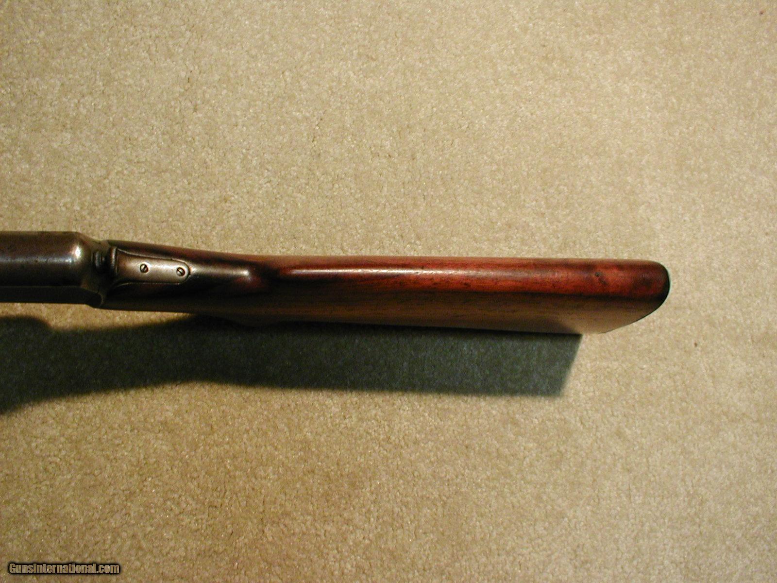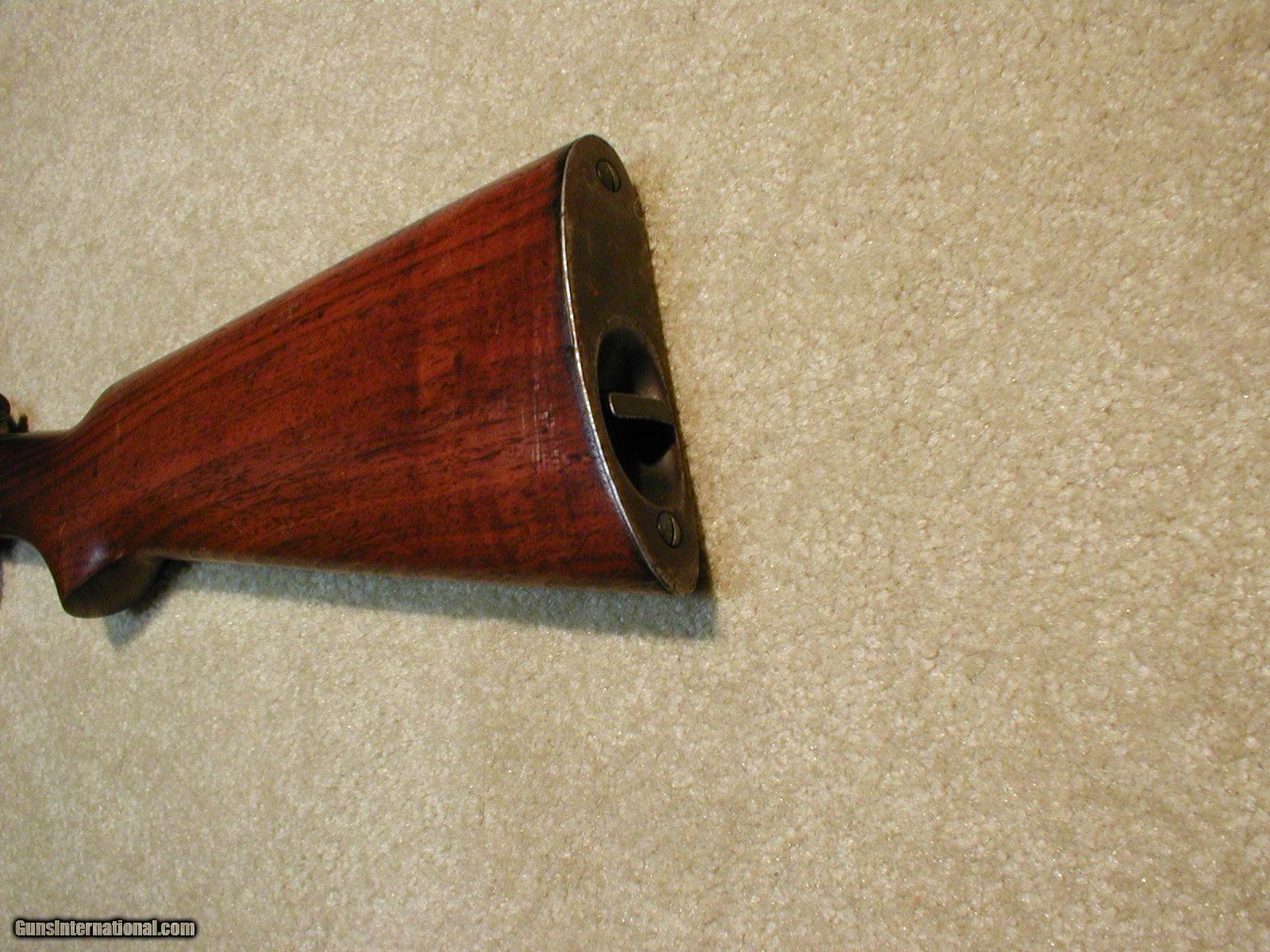 Description: PRE-WAR, GREAT DEPRESSION ERA MODEL 63 .22 LR AUTO RIFLE, MADE 1937, fine barrel blue, receiver turning an uncleaned gray/brown, early tang factory drilled and tapped for tang sight (only the early ones have this) with factory filler screws, solid wood shows light handling and has a small chip in the toe of the butt stock that was put back (original wood) and a very tiny crack beginning from the upper tang back for an inch or less that goes nowhere and is hard to see, bright exc. bore, tight mech. and takedown, matching numbers, still lots of life left in this classy nearly 80 year old Winchester! SOLD Curio/Relic: Yes Manufacturer: Winchester Model: Model 63 Serial Number: 23XXX Caliber Info: .22 LR Condition: VG-Fine |