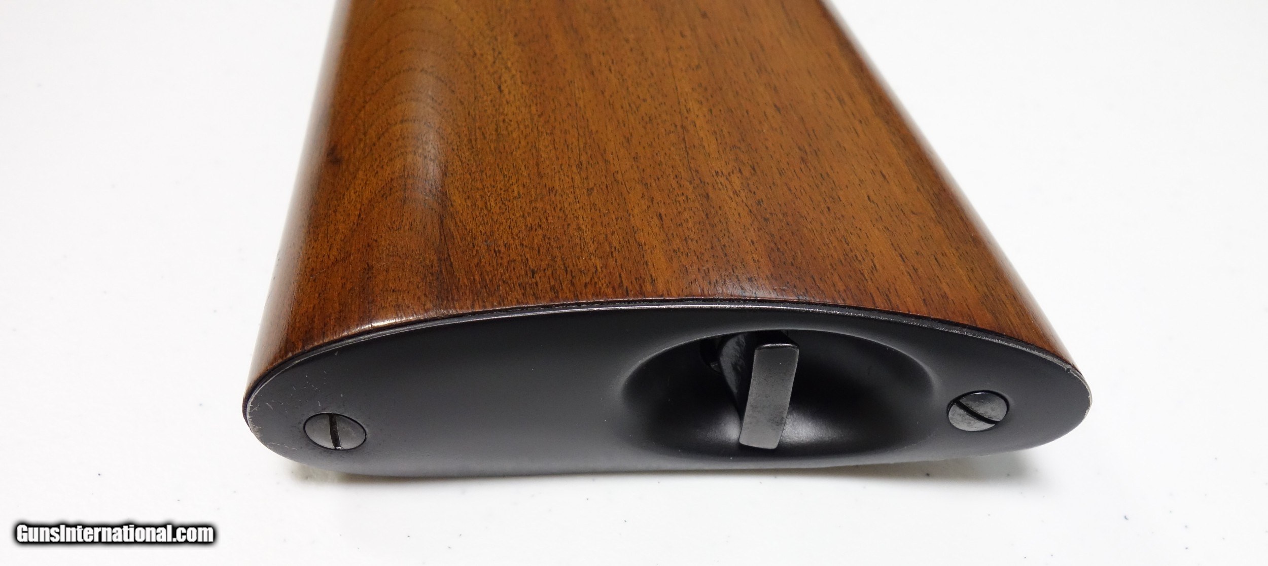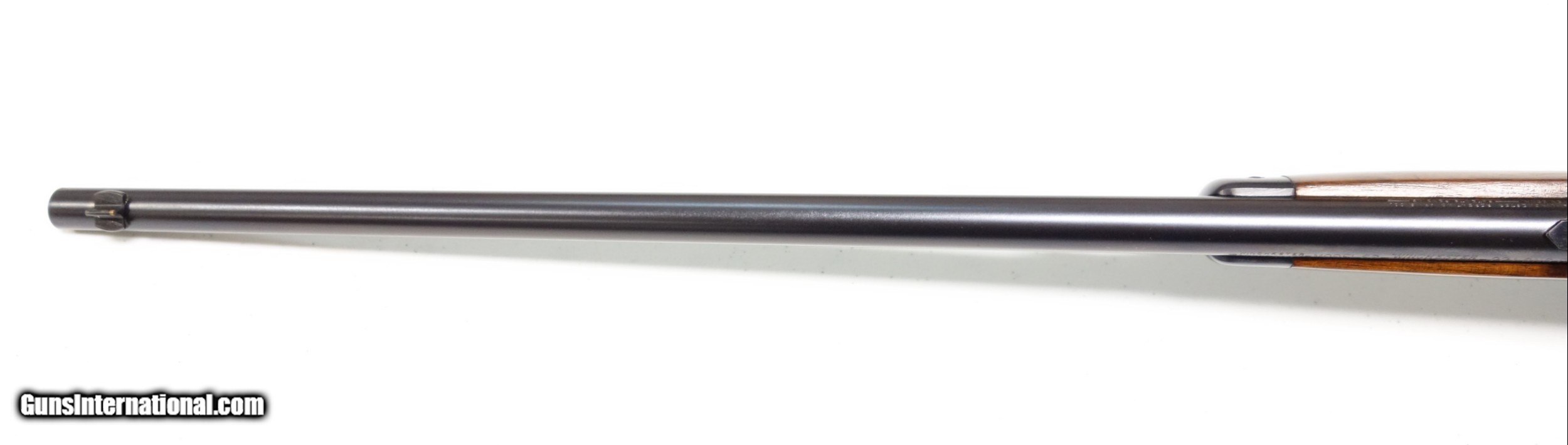 Description: On consignment I have an outstanding Pre War Winchester Model 63 semi auto rifle chambered in .22 Long R. Super Speed & Super-X. The S/N is 33***A indicating a munufacture date of 1938. It wears a 23" Barrel with excellent bore. Mechanics are all smooth and in proper working order. Overall condition is superb showing at least 98% Blue with a couple of very small, isolated areas of light oxidation as shown in close up pics. Varnish is 99% with only the slightest of marks or finish breaks, but nothing that penetrates into underlying wood. An exceptionally high condition piece that is becoming more and more difficult to find in any of this model, and especially so with these early Pre War guns. SOLD Curio/Relic: Yes |