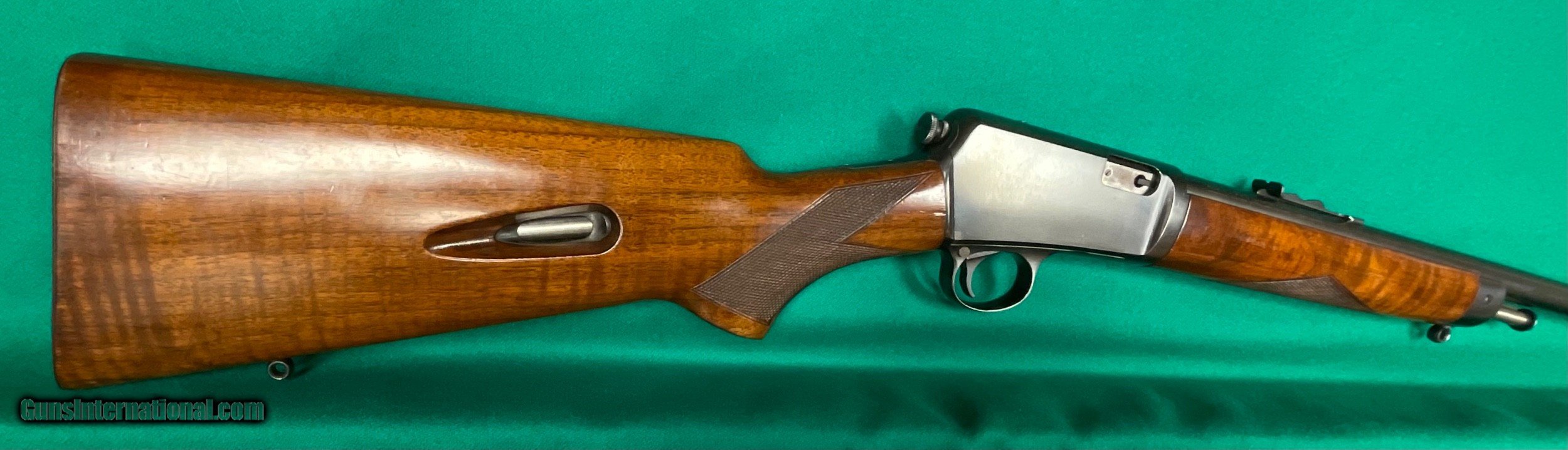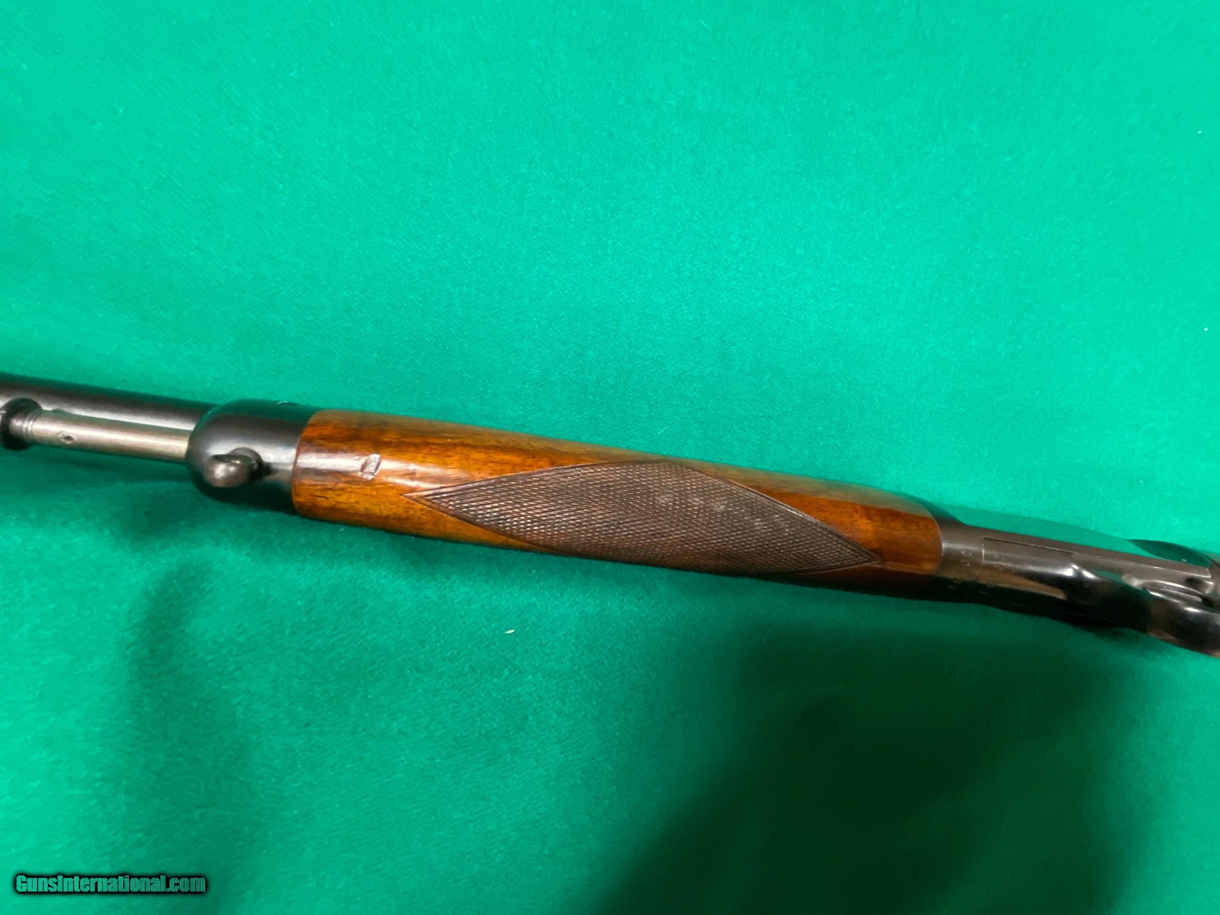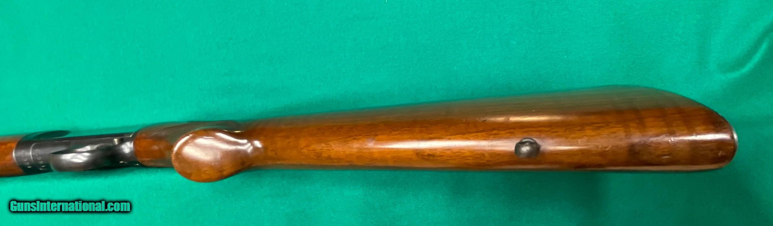 Description: Only model 63 Deluxe I've seen. This one in excellent condition except for the scope mount holes on top. manufactured in 1936 and in 22 Long rifle. Pictures tell it all. Very interesting front sight. $1298 plus $58 insured shipping. 5 month layaway ok. C&R ok too. SOLD Curio/Relic: Yes |