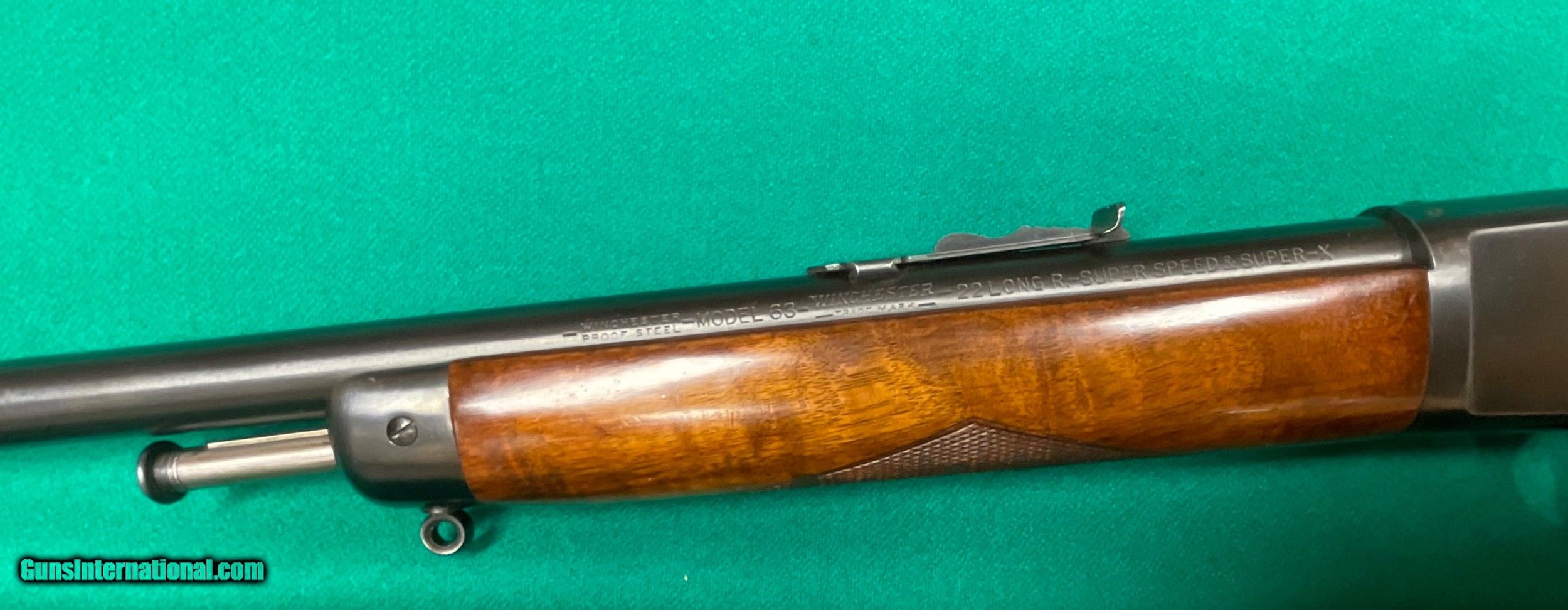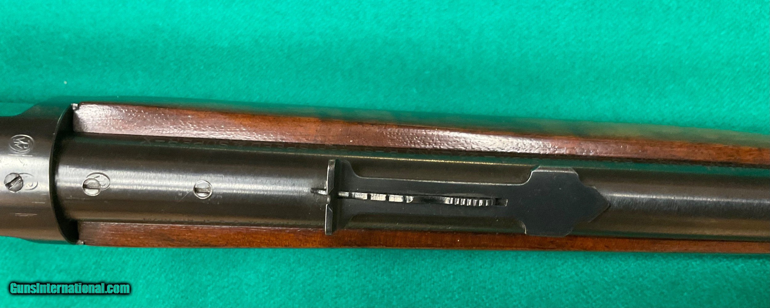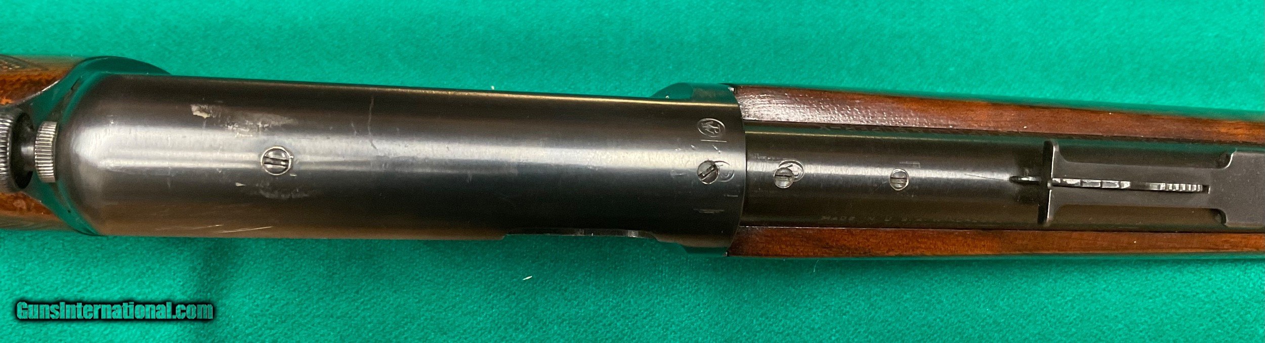 Description: Only model 63 Deluxe I've seen. This one in excellent condition except for the scope mount holes on top. manufactured in 1936 and in 22 Long rifle. Pictures tell it all. Very interesting front sight. $1298 plus $58 insured shipping. 5 month layaway ok. C&R ok too. SOLD Curio/Relic: Yes |