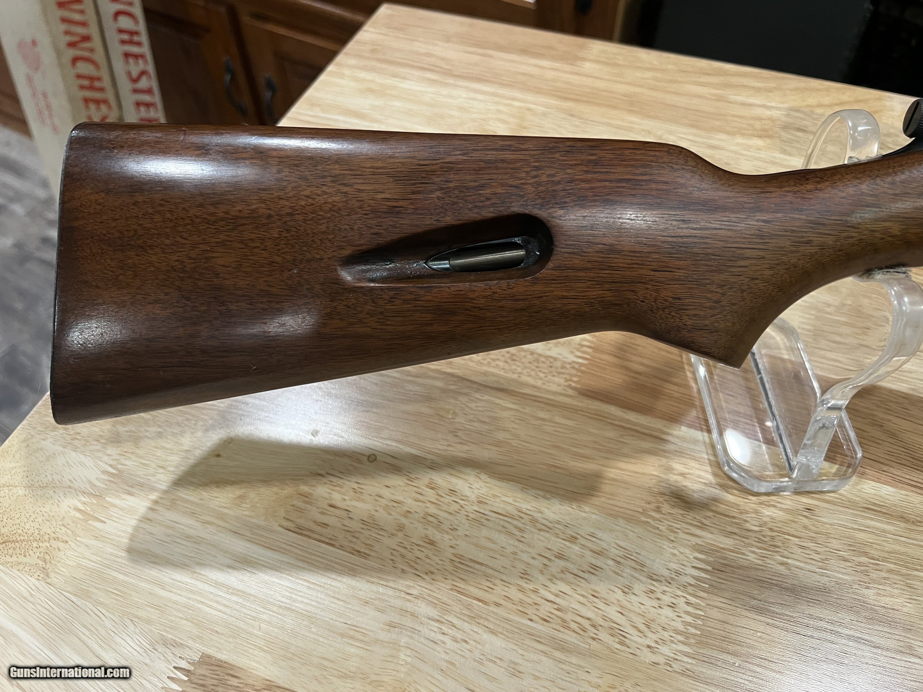 Description: Here's a really nice Winchester 63 semi auto 22 lr, exc bore, 23" barrel with open sights, this is a smooth top receiver made in 1957, nice wood. 75.00 UPS shipping 2.99% credit card fee PA residents add 6% sales tax. Rifle Caliber: .22 Long Rifle Price: $1,695.00 Contact Seller |
