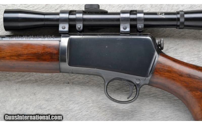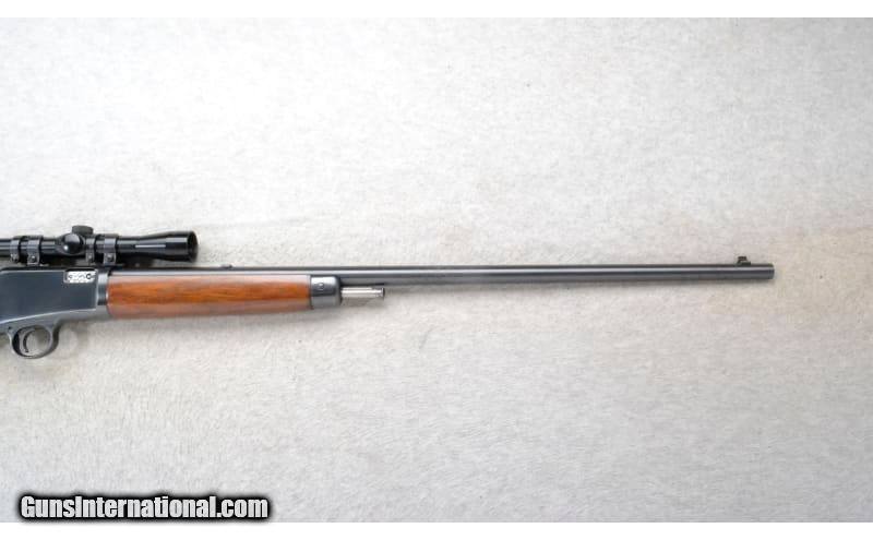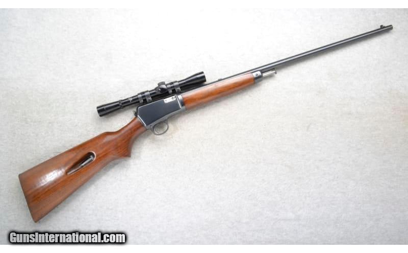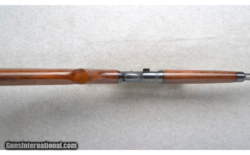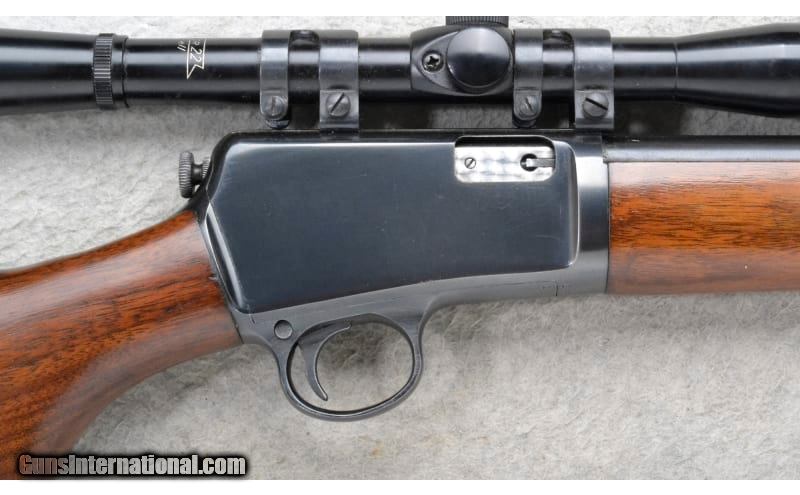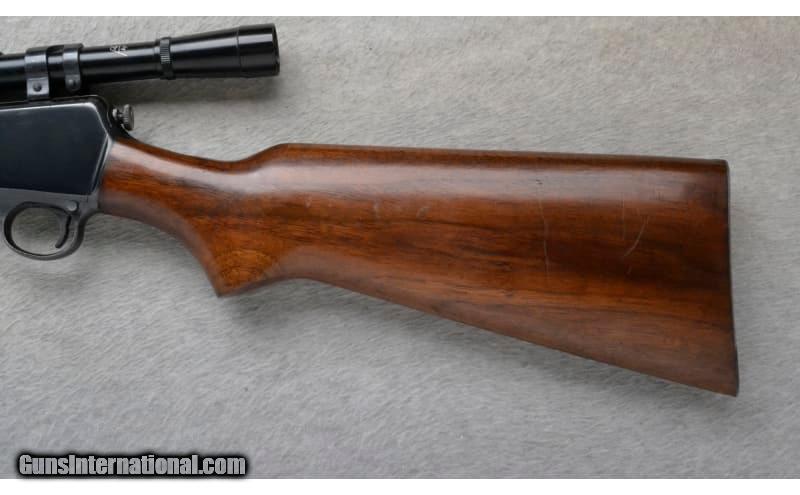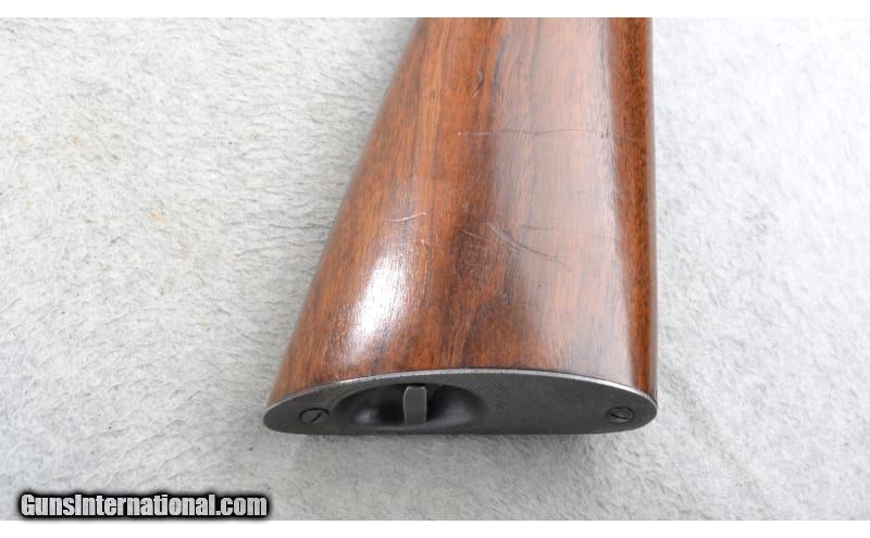 Description: This Winchester Model 63 is a right hand semi-auto rifle in .22 LR Cal. It has a 23 inch barrel. A blade front sight and is outfitted with a Bushnell Banner 22 Scope. The butt stock is a smooth grip hardwood pistol grip with loading ports on the right side and butt plate. The forearm is a smooth grip hardwood with a steel cap. .22 Long Rifle SOLD Chambers: Internal tube magazine. Metal Condition: Good. Some minor freckling. Wood Condition: Good. Light handling marks. Bore Condition: Excellent. Barrels: 23 inch. Stock Dimensions: LOP 13 1/4 inches. Fore End: Smooth grip walnut with a steel cap. Butt Pad: Checkered steel plate with a loading port. Weight: 6 lb. 8 oz. Sights: Blade front. Bushnell Banner 4X Scope. Item Location: Richfield, WI |