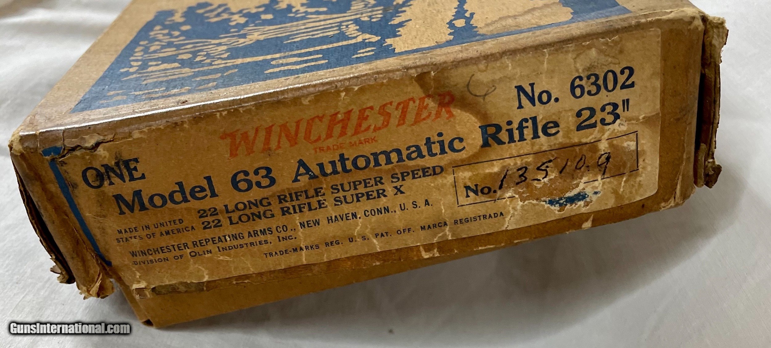 Description: For sale I have a rare Winchester model 63 that is brand new in its original box! This little rifle is absolutely mint, made in 1955 and shows no signs of ever being assembled. Included is the original hang tag, manual, warranty card and a Winchester information sheet. There was something spilt on the corner of the box at one point. Any smears, smudges, or shadows you may see on the bluing is just my camera, this rifle is absolutely mint. As always I guarantee this gun to be 100% original and you have a 3 day non firing inspection period also. Please don't hesitate to ask any questions or request more photos. SOLD Curio/Relic: Yes Rifle Caliber: .22 Long Rifle Manufacturer: Winchester Model: 63 Condition: New Old Stock |