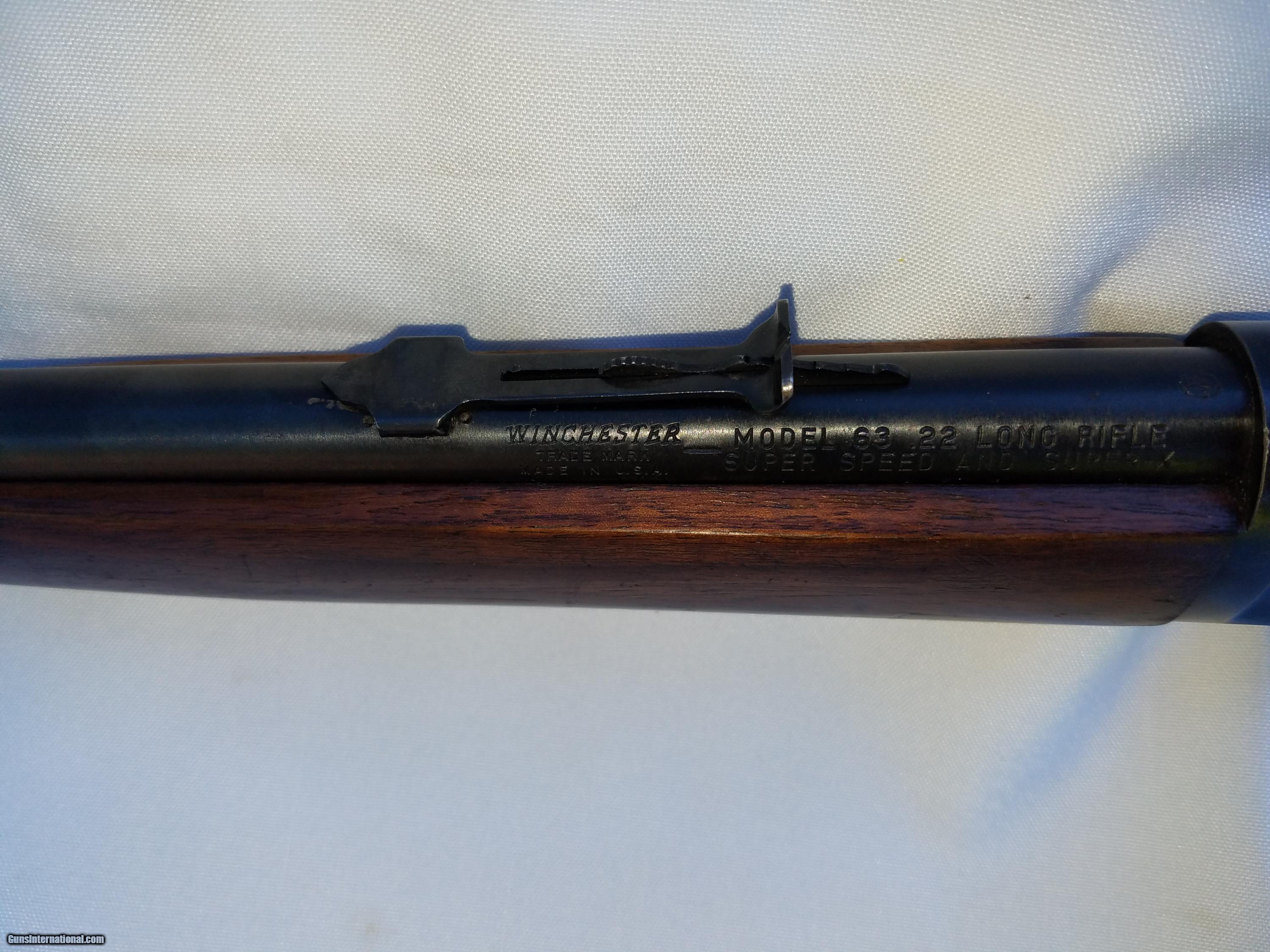 Description: Mfg 1953, 95% condition, semi automatic, 23" barrel SOLD Curio/Relic: Yes Manufacturer: Winchester Model: 63 Serial Number: 119101A Caliber Info: 22 |