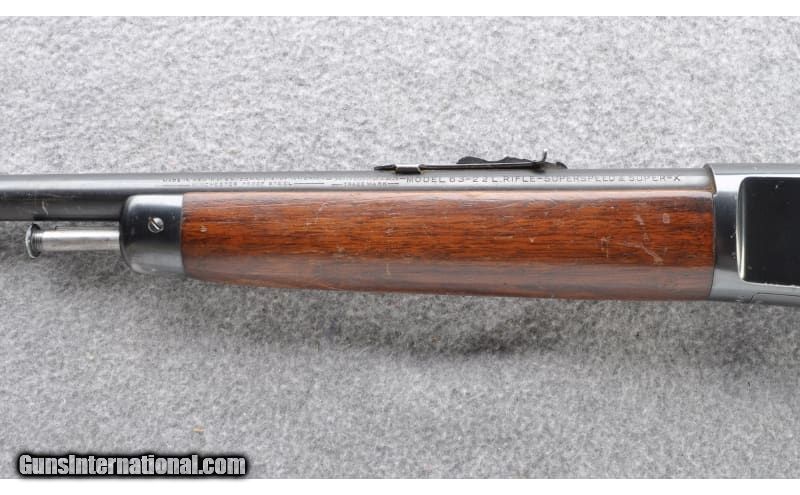 Description: Made in 1946, this Model 63 is in very good condition showing relatively good care. .22 Long Rifle SOLD Chambers: .22 Long Rifle in a ten round tubular magazine Metal Condition: "Very good, showing light blue wear at the sharp edges and carry areas. Wood Condition: "Very good, with few scratches, dents and dings Bore Condition: Bright & sharp Barrels: 23 Stock Dimensions: 13 1/4" LOP Fore End: Plain walnut with metal tip and charging rod Butt Pad: Metal with tubular magazine access Weight: 6 lbs. Sights: "Dovetailed blade front, Sporting leaf rear Item Location: Grand Junction, CO |