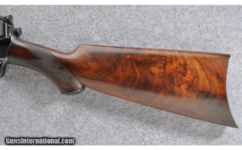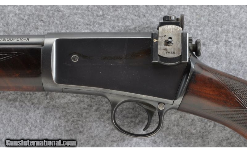 Description: SOLD Manufacturer: 1935 Caliber Info: .22 Long Rifle - Super Speed & Super - X Chambers: 10 shot magazine in butt stock Metal Condition: Fine pitting scattered along the barrel and a blemish on the left side of the receiver from a previous installed rear sight Wood Condition: Stock appears to have been refinished at one time and is in good condition. Showing some wear on the checkered fields Bore Condition: Bright and crisp Barrels: 23 Stock: Checkered Deluxe wood pistol grip with cap Stock Dimensions: 13.25" LOP Fore End: Checkered Deluxe wood with metal tip Butt Pad: Metal Crescent Weight: 6 lbs 8 oz Sights: Marbles No.5 front, Lyman adjustable receiver rear sight Item Location: Grand Junction, CO |