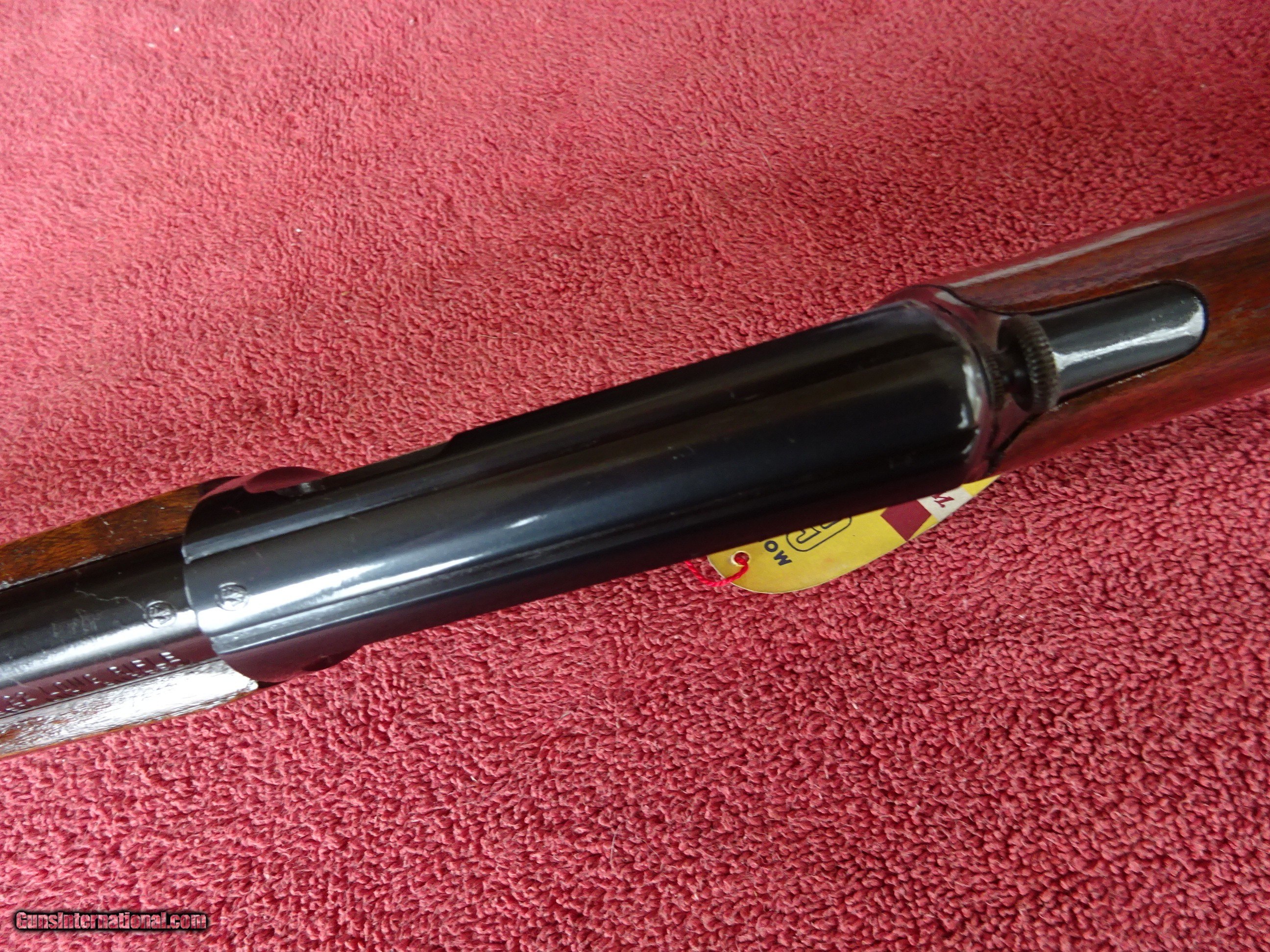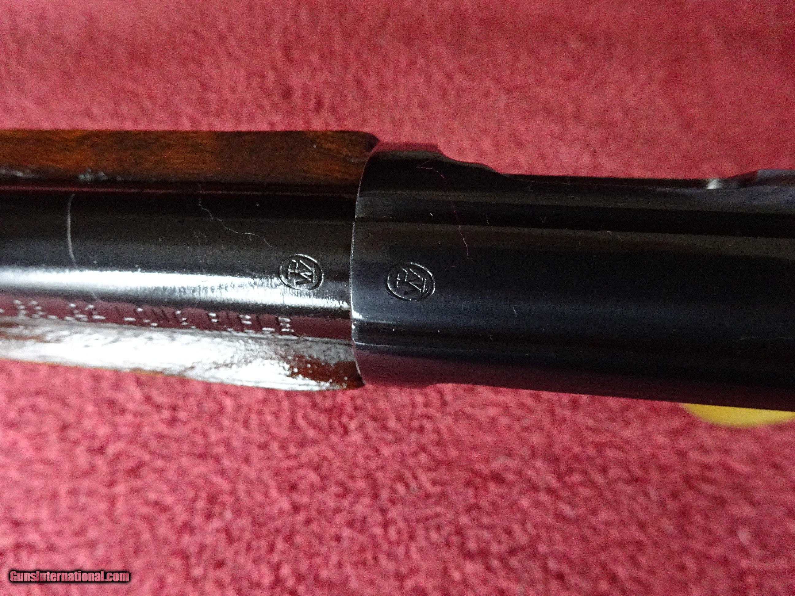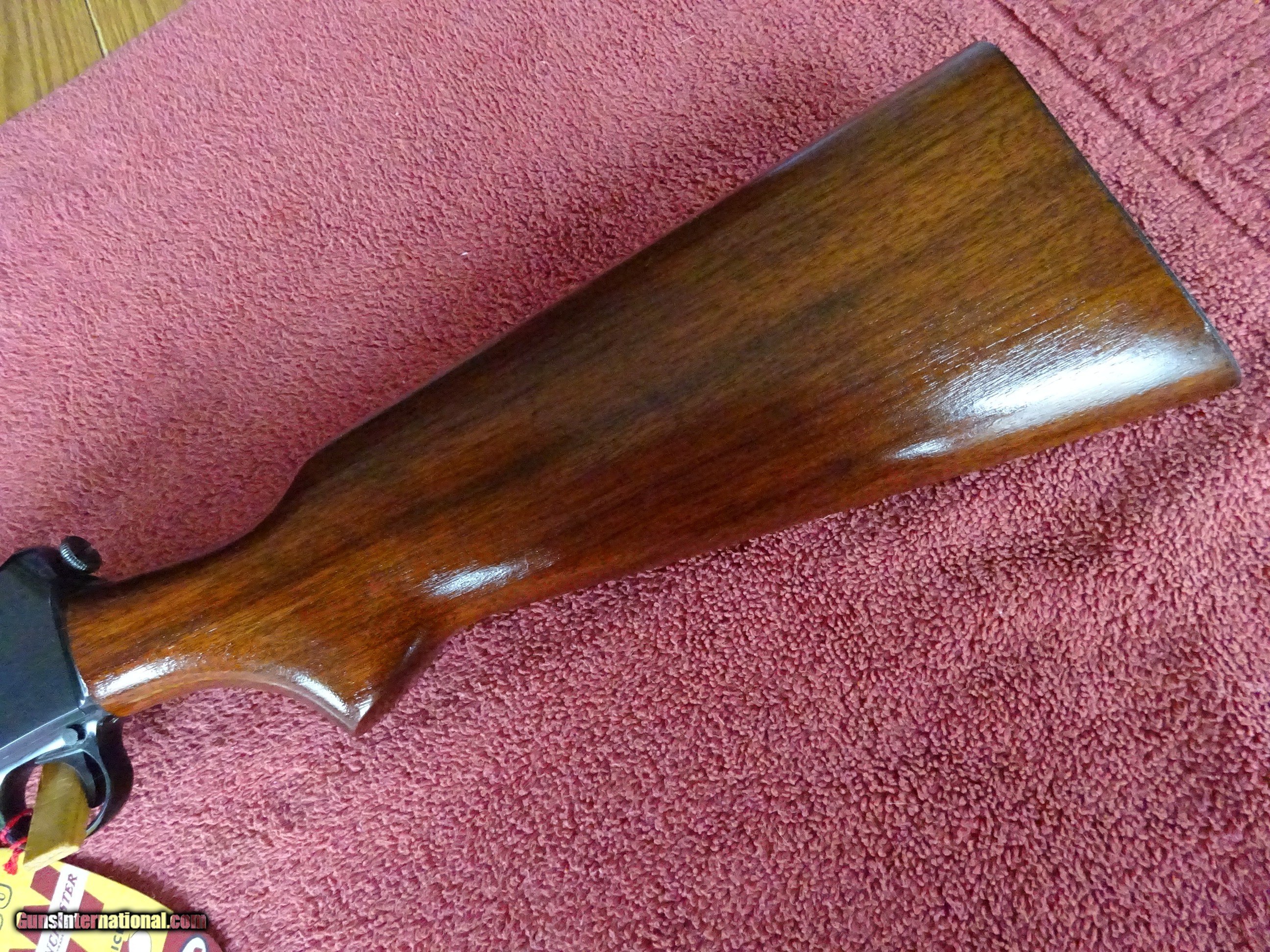 Description: WINCHESTER MODEL 63 GROOVED RECEIVER, SEMI-AUTO 22 LONG RIFLE. 23" BARREL, FIXED FRONT SIGHT, STEP ADJUSTABLE REAR SIGHT, 100% BRIGHT ORIGINAL BLUE, MIRROR PERFECT BORE. PISTOL GRIP AMERICAN WALNUT STOCK, SMOOTH FOREARM, NEAR PERFECT WOOD FINISH, CHECKERED STEEL BUTTPLATE. 100% ORIGINAL CONDITION. INCLUDES HANG TAG BUT NO BOX. MADE IN 1958, THE LAST YEAR OF PRODUCTION. DIFFICULT TO FIND A NICER ORIGINAL EXAMPLE. $1575.00 + $70.00 Insured shipping to an FFL address. Layaway is available. See all Pats gun listings on this site! We also have hundreds of ORIGINAL gun company advertising & memorabilia pieces available for sale on our site SPORTINGCOLLECTIBLES. We have no reprints or reproductions. Email for more information. If you need to call, morning or evening is best, and please note the Seller's Inventory number. SOLD Curio/Relic: Yes |