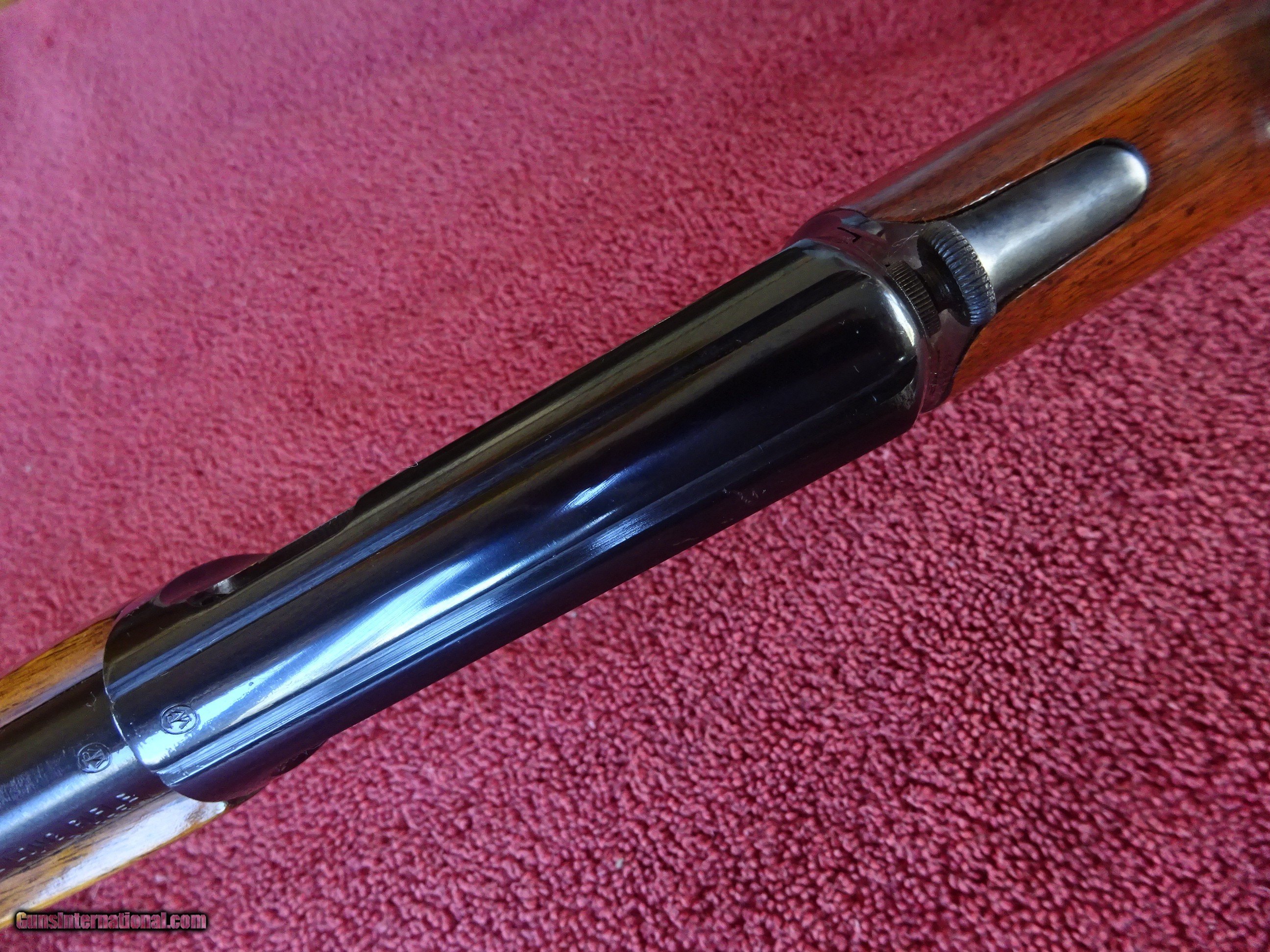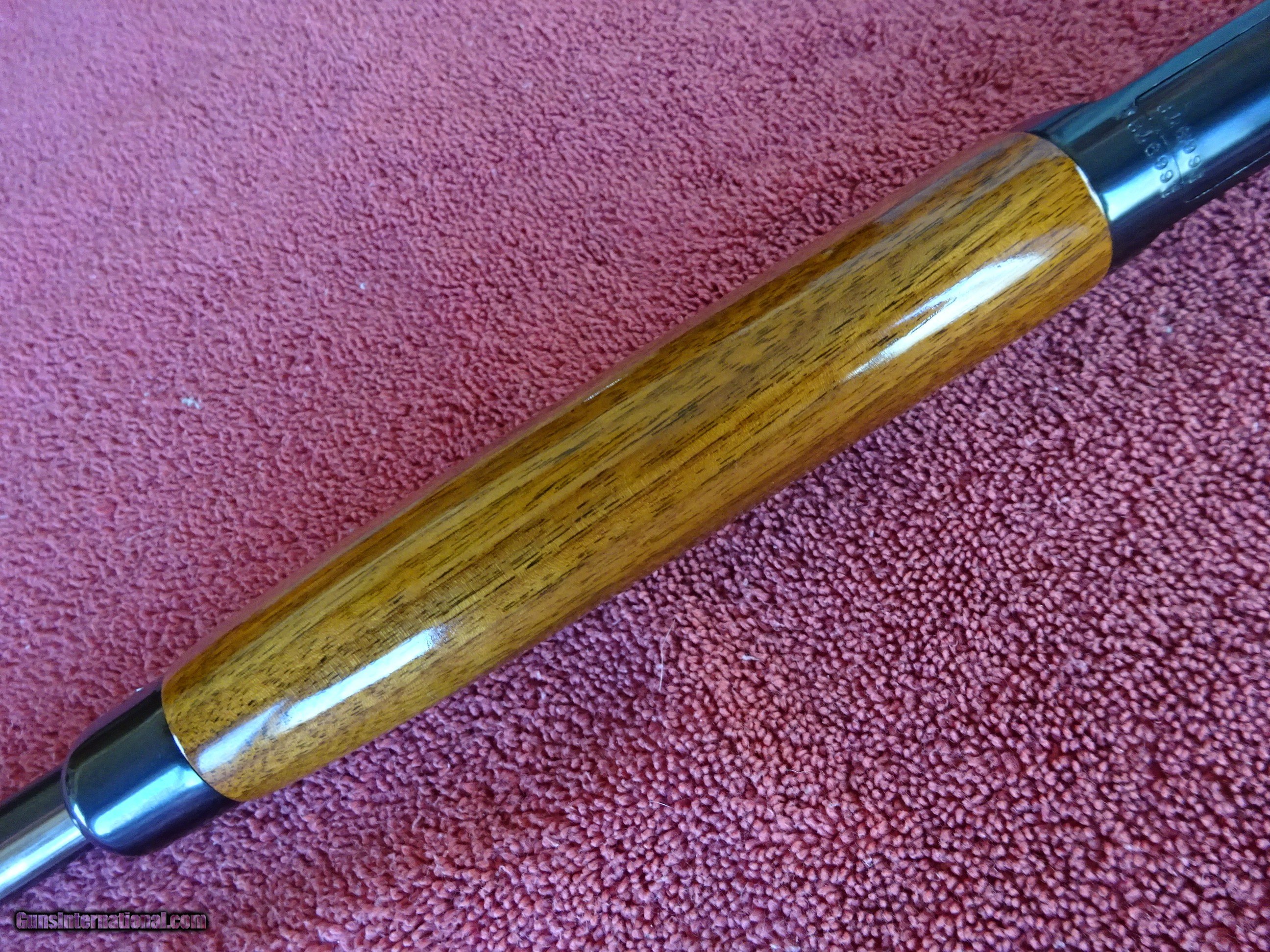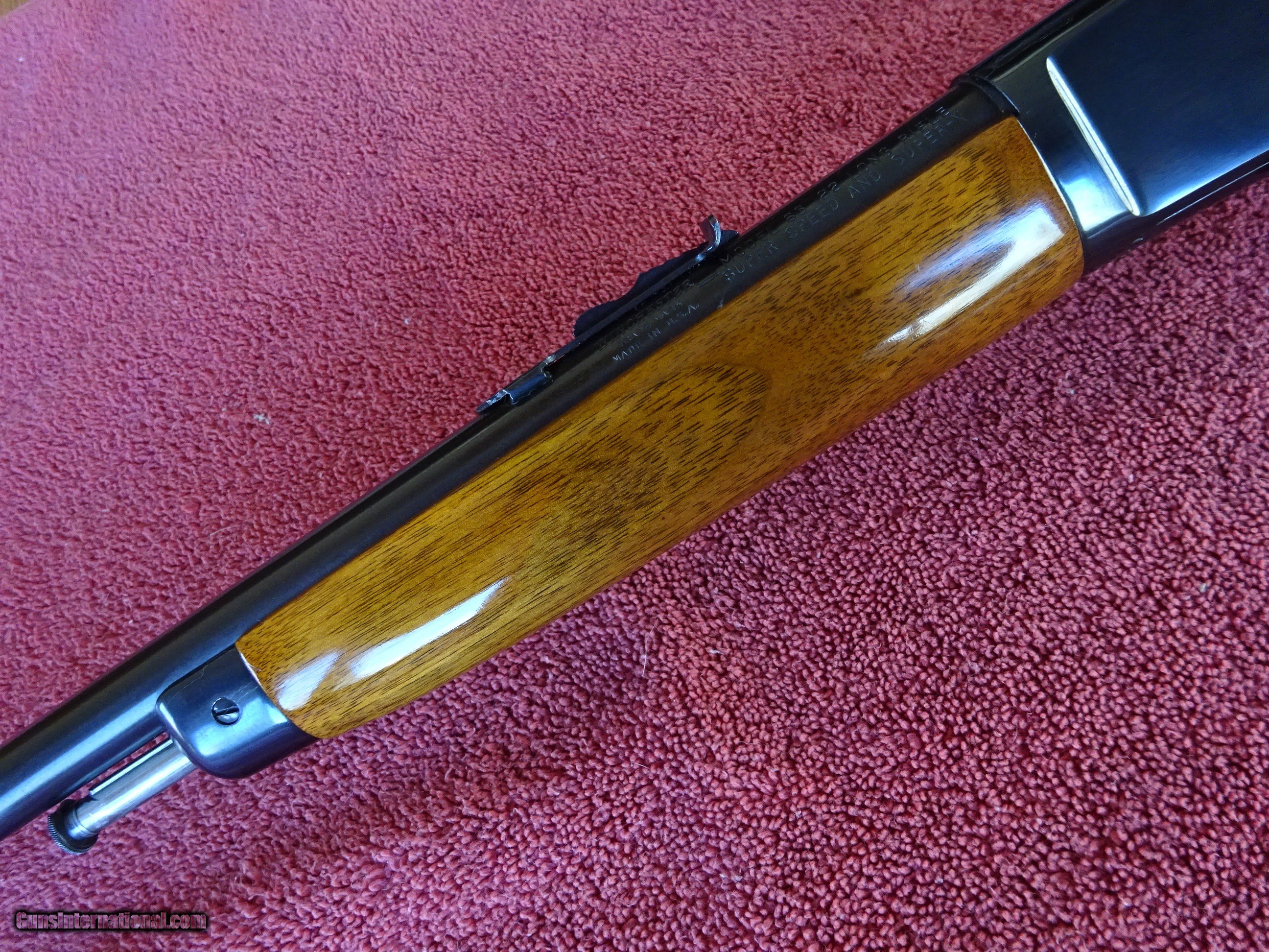 Description: WINCHESTER MODEL 63, 22 LONG RIFLE SUPER SPEED AND SUPER-X. 23" BARREL, FIXED FRONT SIGHT, STEP ADJUSTABLE REAR SIGHT, 100% BRIGHT BLUE, MIRROR PERFECT BORE. FRAME, TRIGGERGUARD AND FOREND CAP ALSO HAVE ALL THE BRIGHT BLUE. SMOOTH PISTOL GRIP STOCK AND FOREARM, EXCELLENT WOOD WITH NEAR-PERFECT FINISH AND CHECKERED STEEL BUTTPLATE. LATE GUN WITH GROOVED RECEIVER FOR SCOPE MOUNTING. MADE IN 1958, THE LAST YEAR OF PRODUCTION. 100% ORIGINAL CONDITION. HARD TO FIND A NICER EXAMPLE. $1575.00 + $70.00 Insured shipping to an FFL address. Layaway is available. See all Pats gun listings on this site! We also have hundreds of ORIGINAL gun company advertising & memorabilia pieces available for sale on our site SPORTINGCOLLECTIBLES. We have no reprints or reproductions. Email for more information. If you need to call, morning or evening is best, and please note the Seller's Inventory number. SOLD Curio/Relic: Yes |